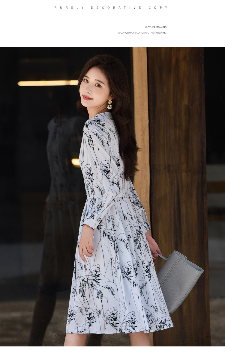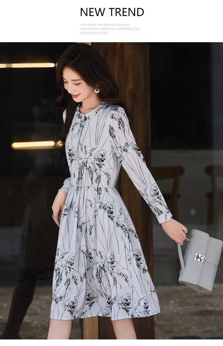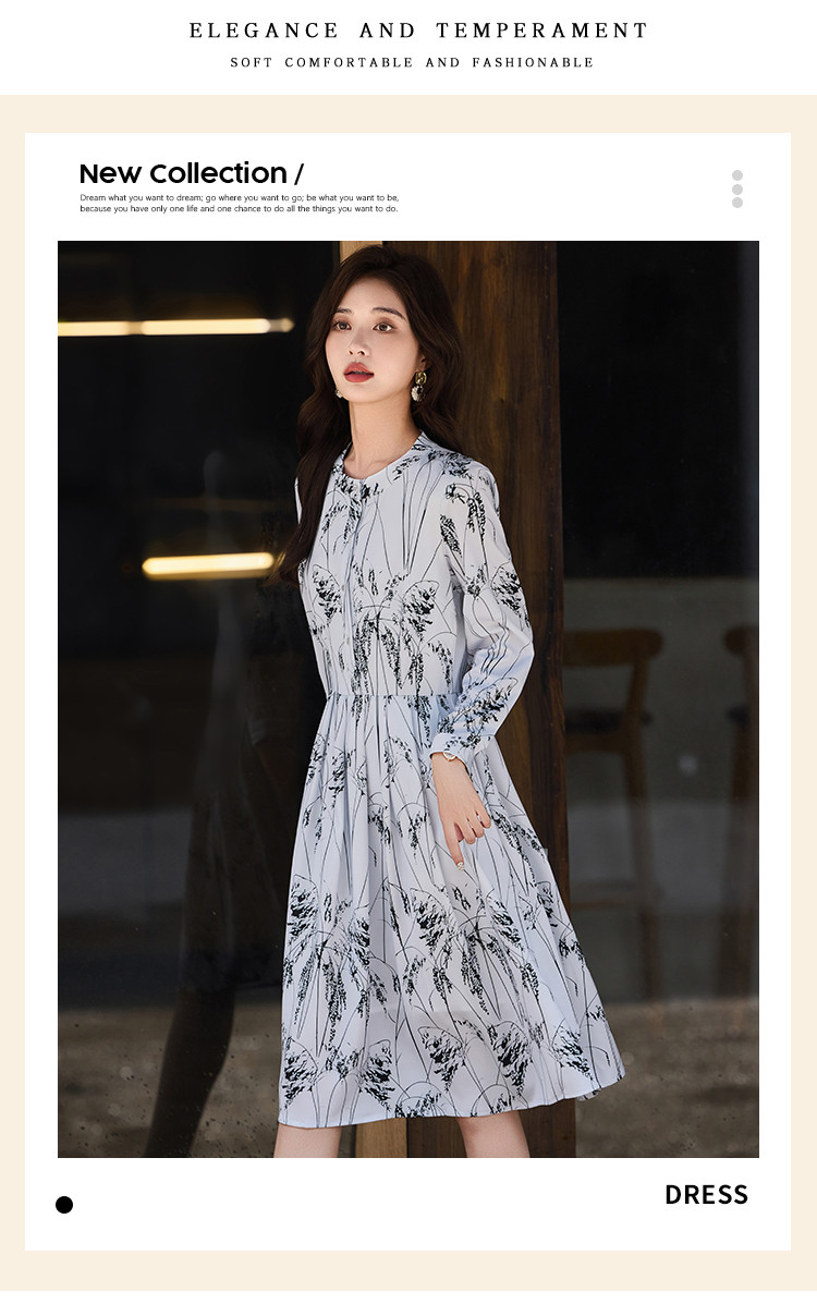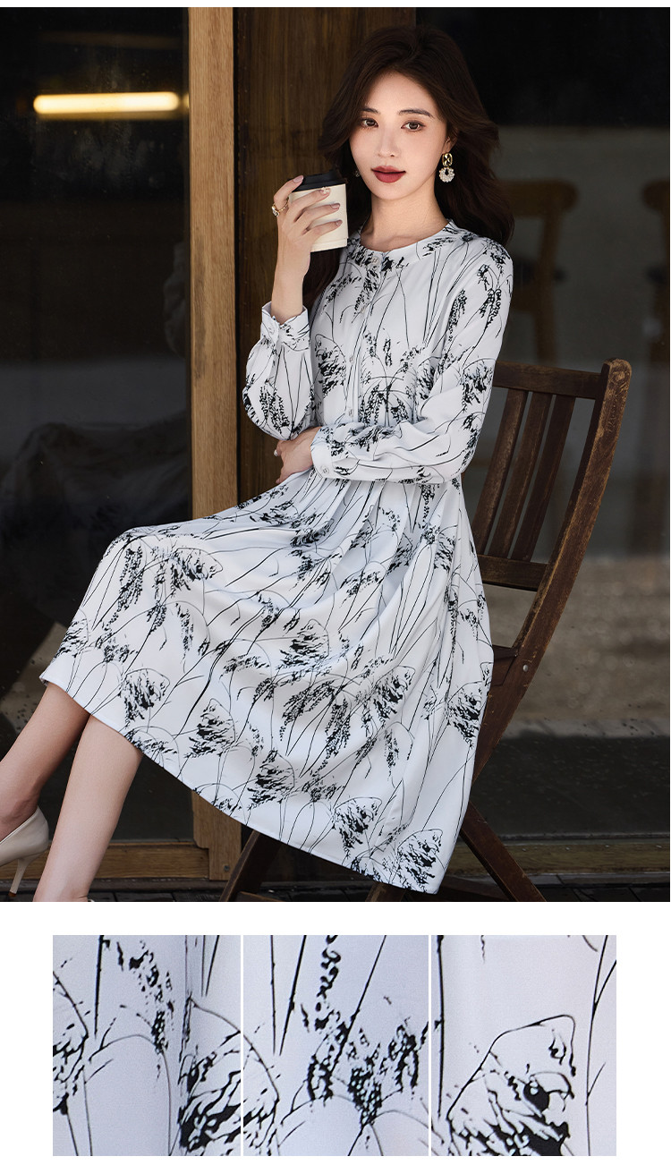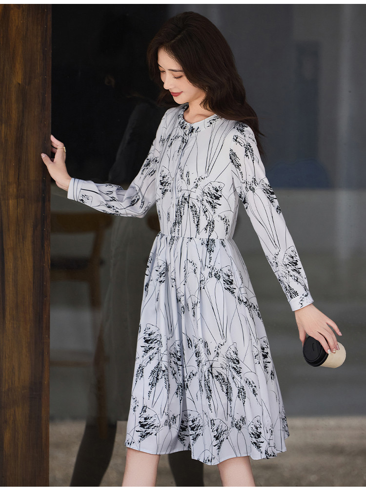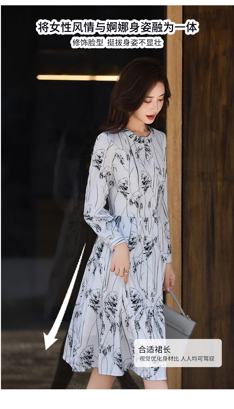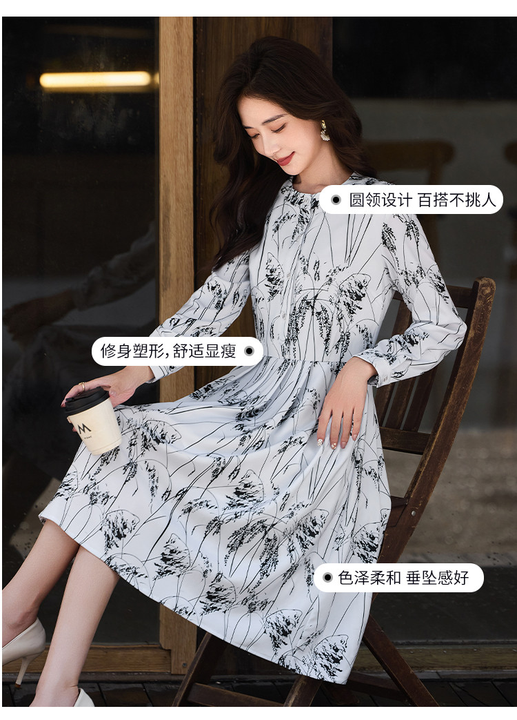 商品名称:优雅时尚女装知性淑女气质休闲长袖遮肚显瘦轻奢浪漫圆领连衣裙 215832