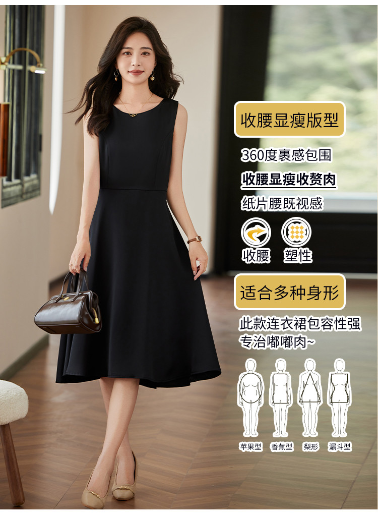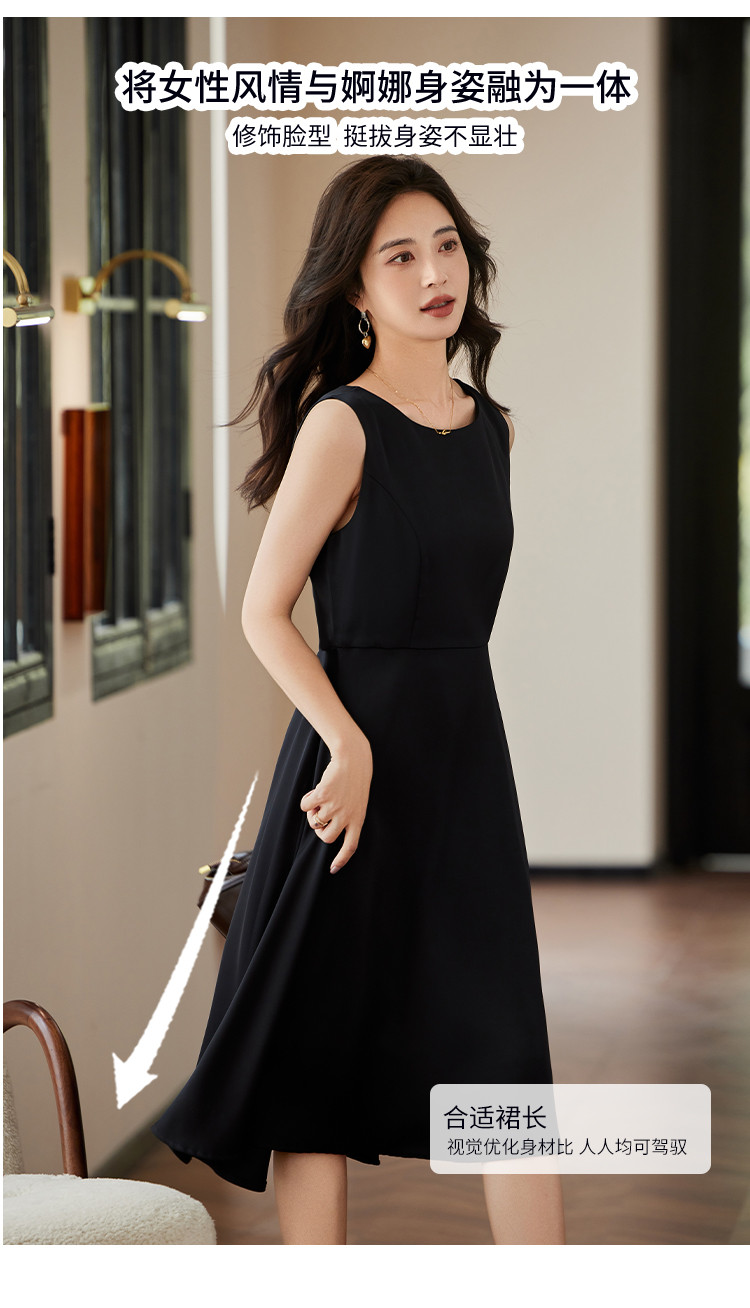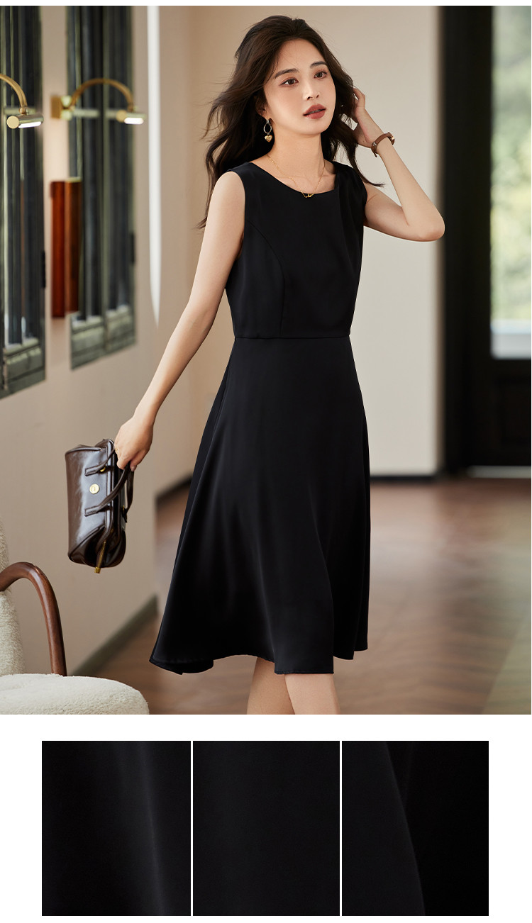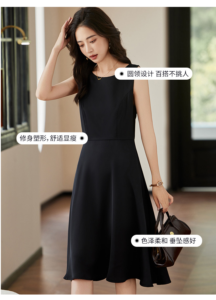 商品名称:时尚淑女2025春夏新款女装气质圆领纯色百轻奢搭连衣裙 244504