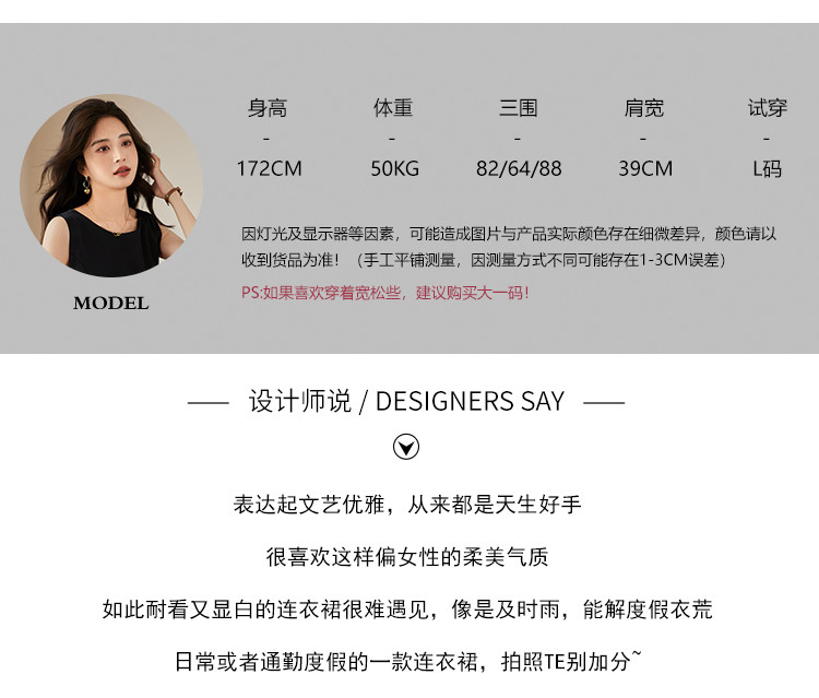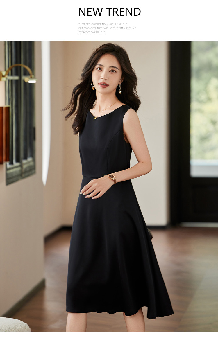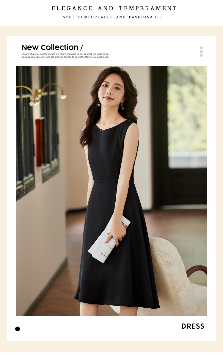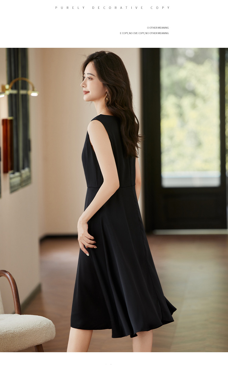 商品名称:时尚淑女2025春夏新款女装气质圆领纯色百轻奢搭连衣裙 244504