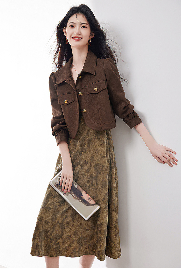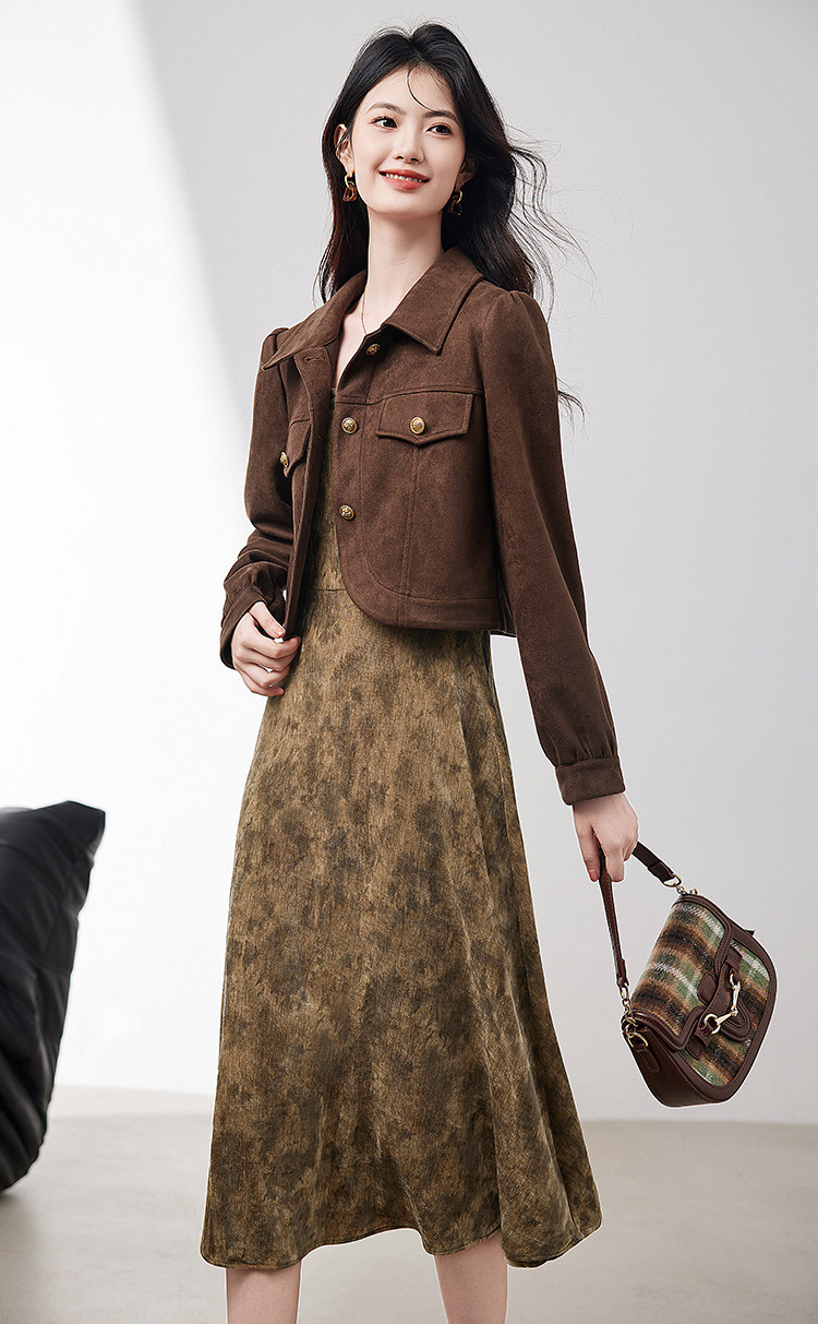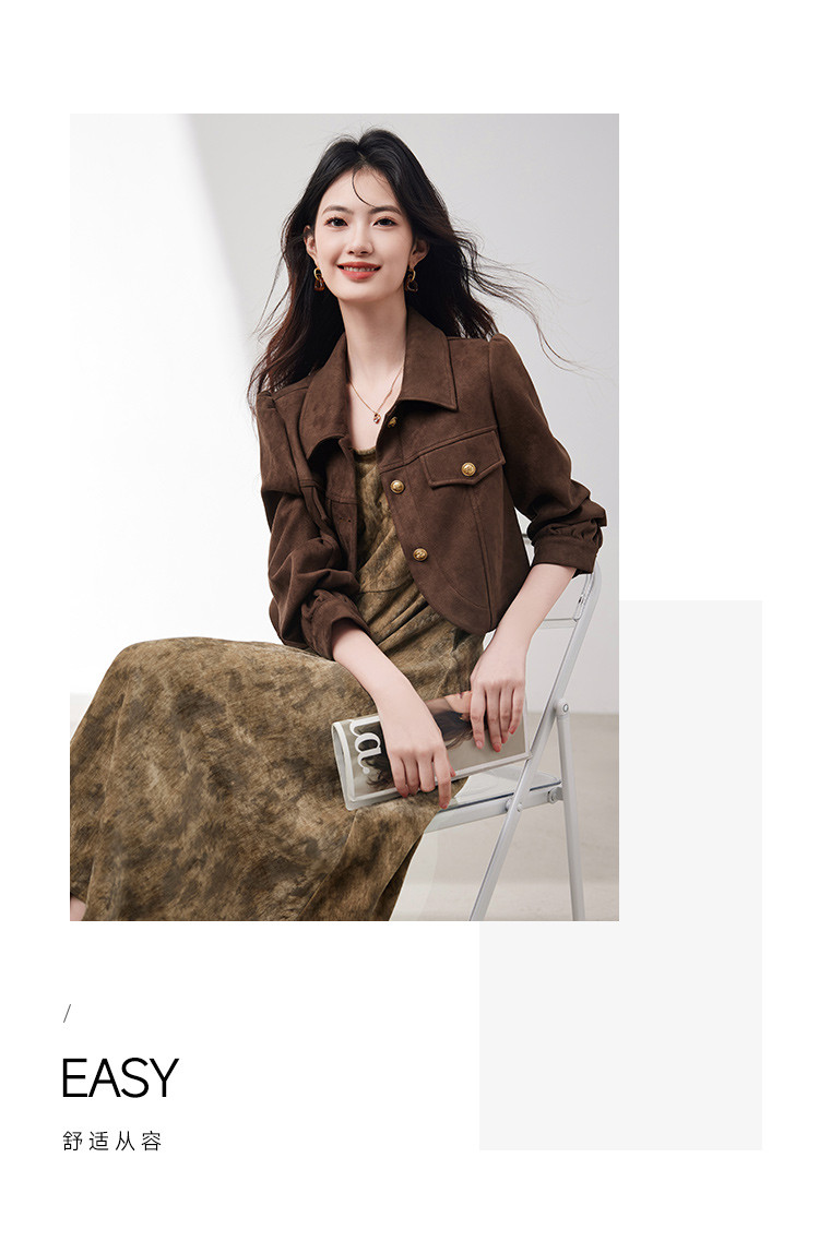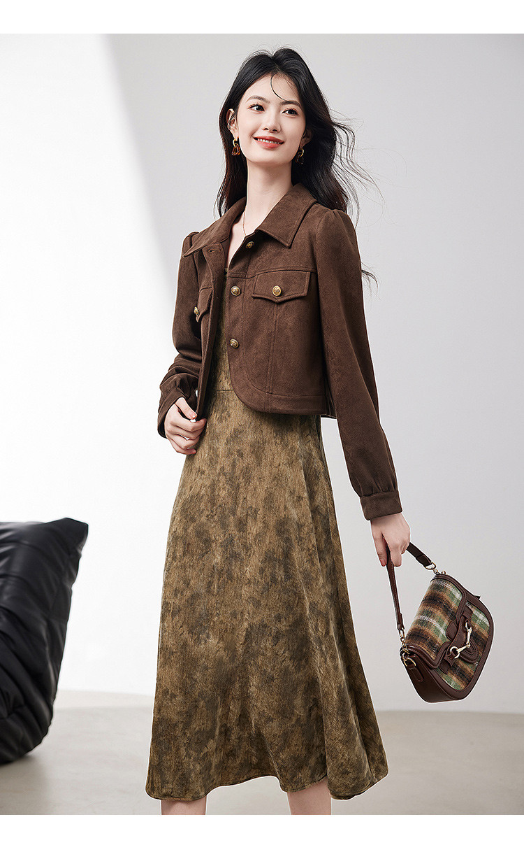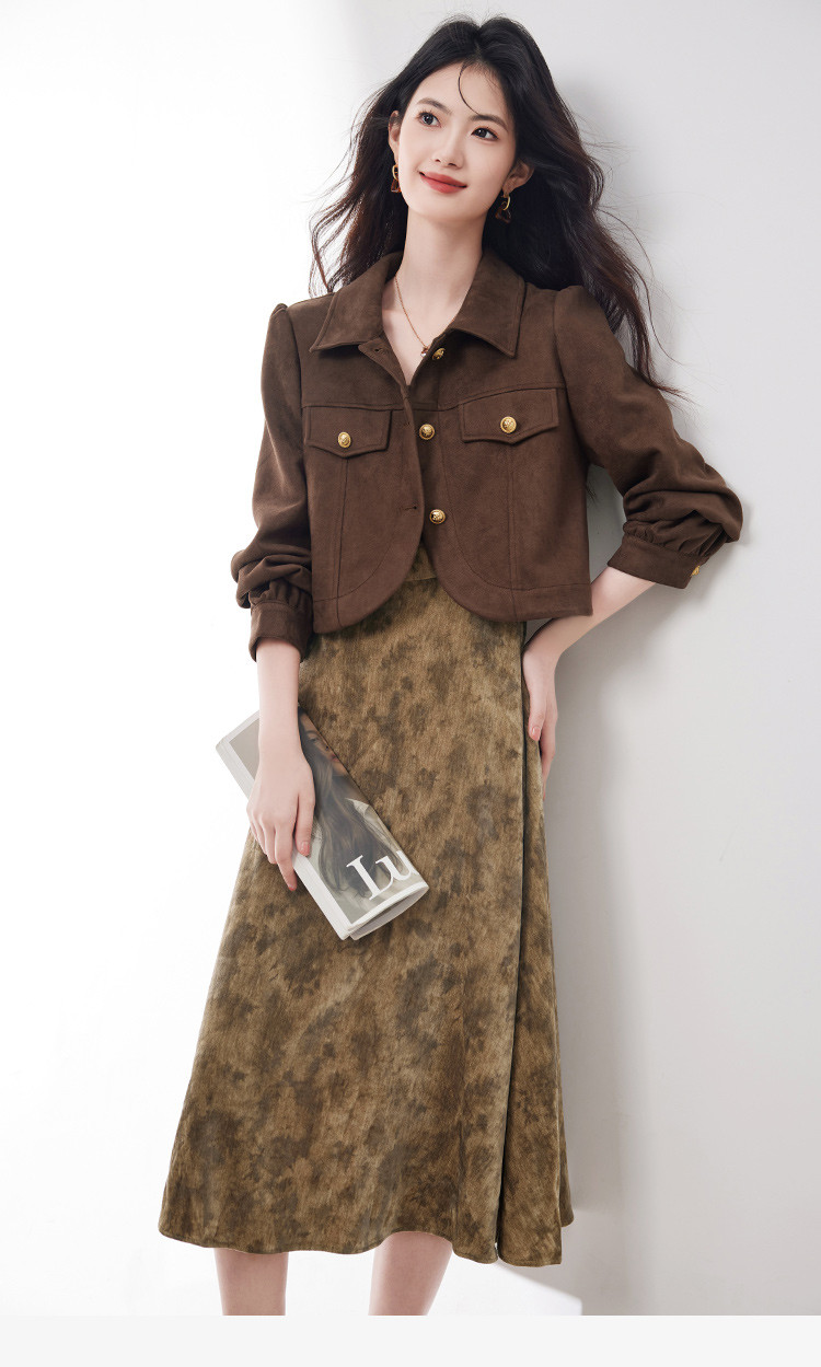 麂皮绒短外套背心裙两件套2025春季新款高级感气质时尚套装女 266392