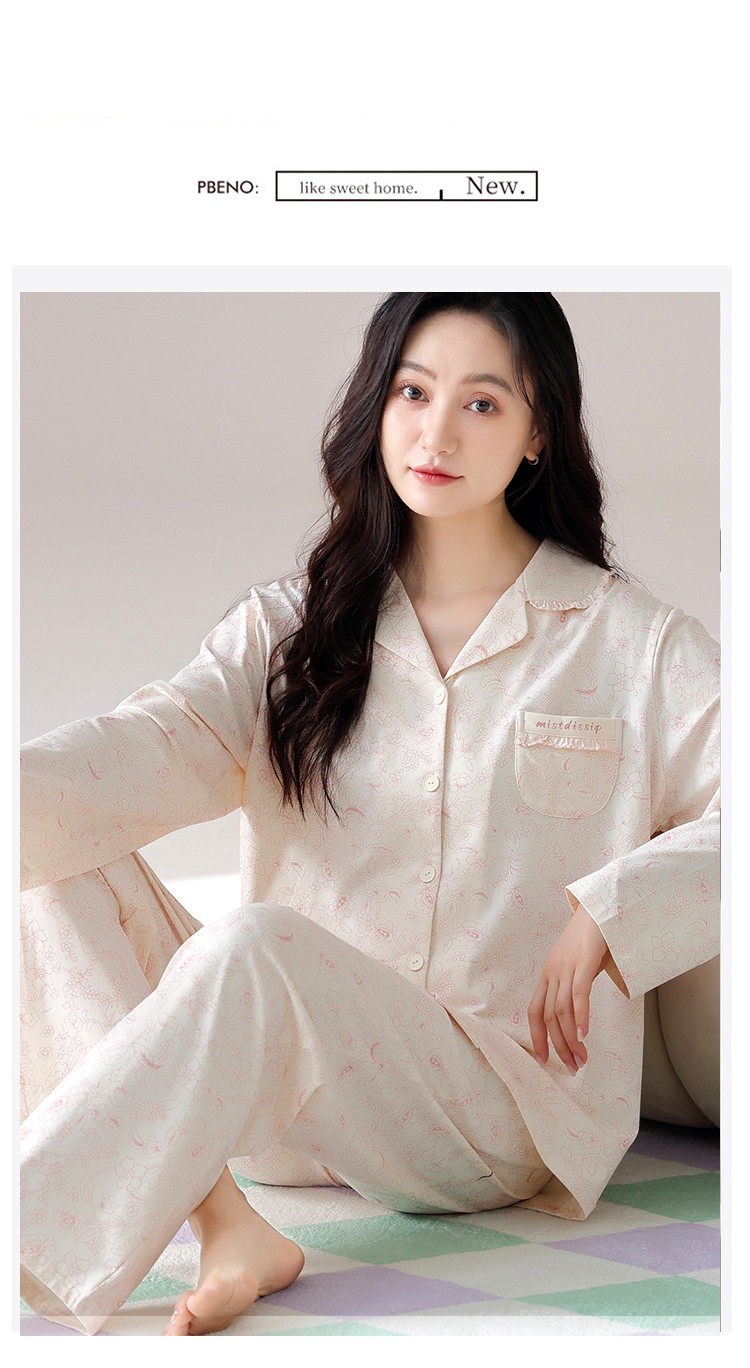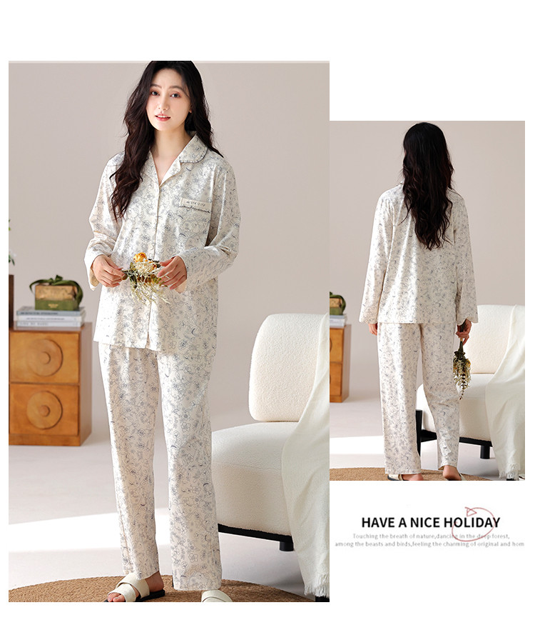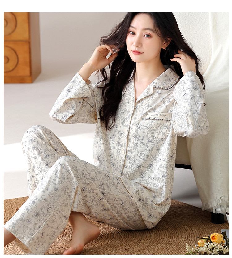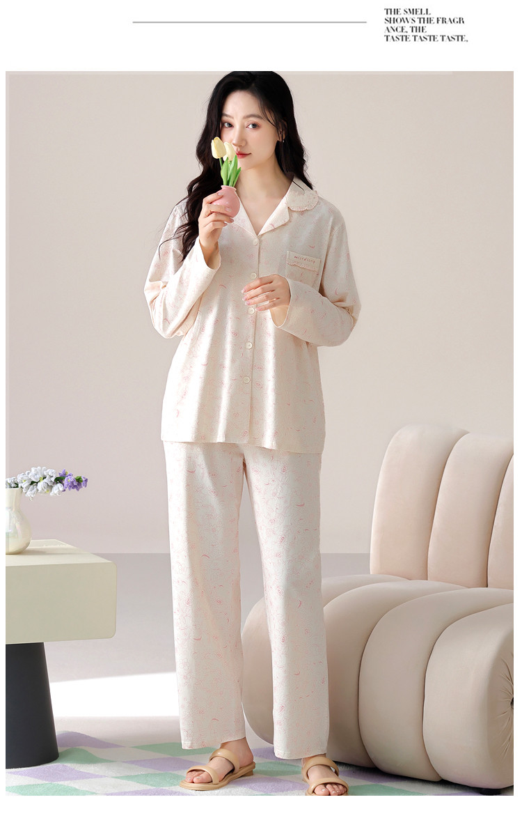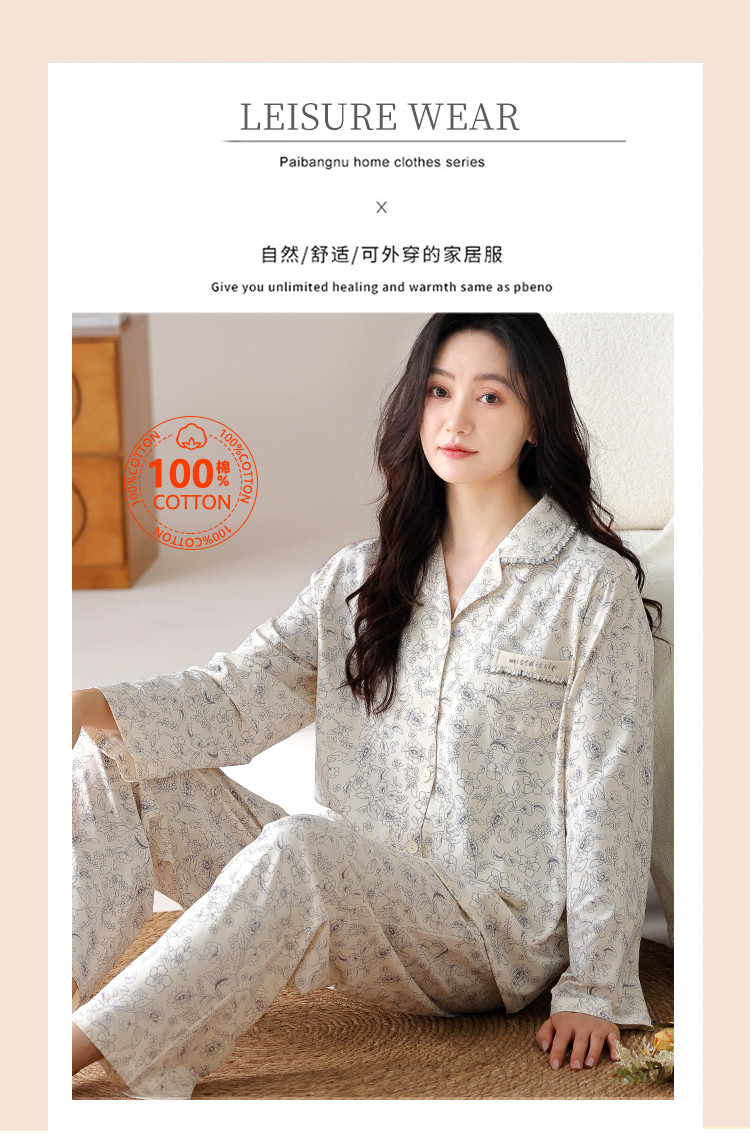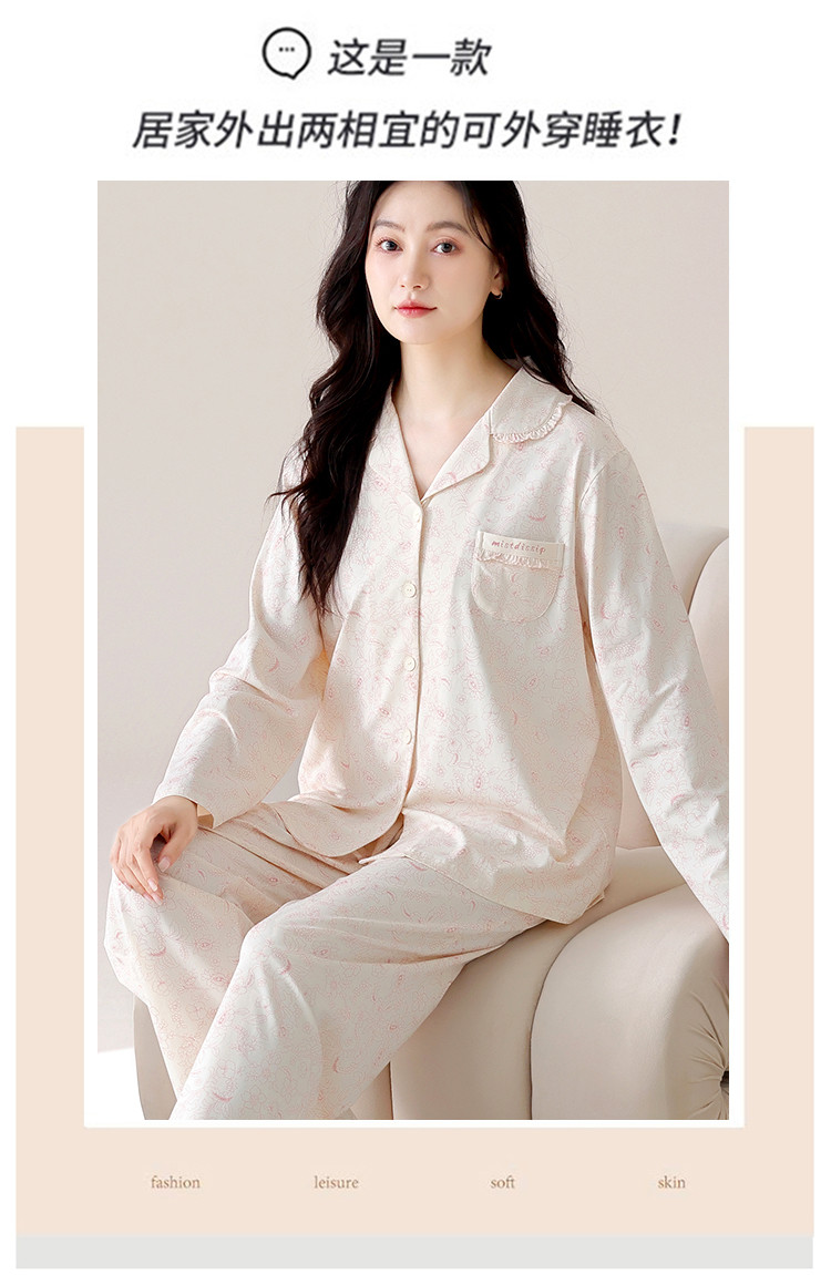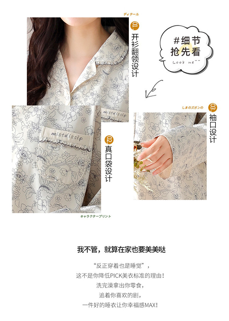 商品名称:【100%棉】春秋印花高级感舒适开衫睡衣睡裤女士家居服可外穿 394334