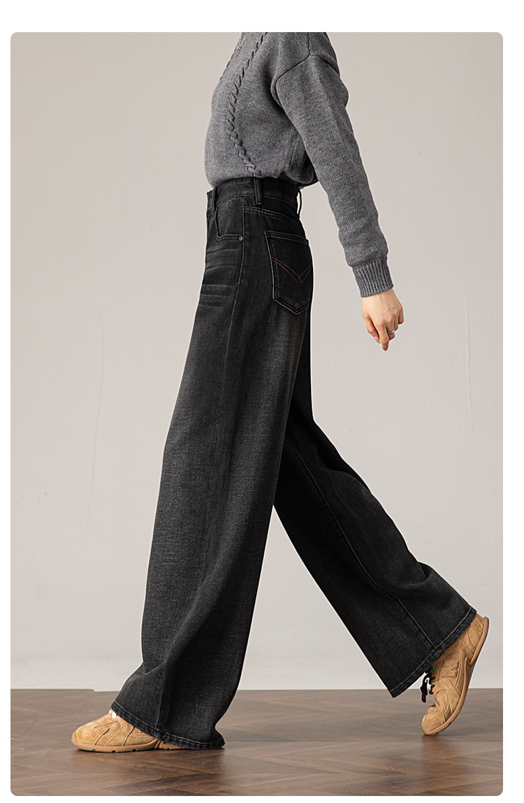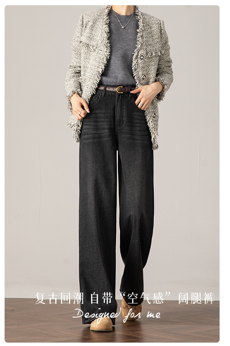 商品名称:【梦中牛仔裤】春秋季热销款擦白水洗街头休闲复古阔腿及地长裤女 318145