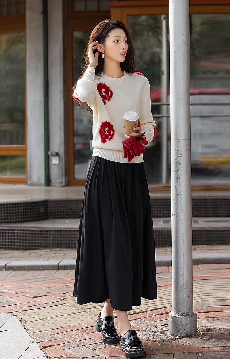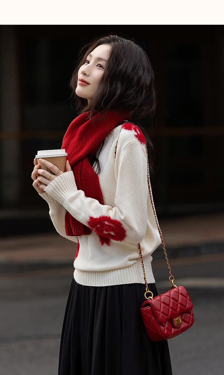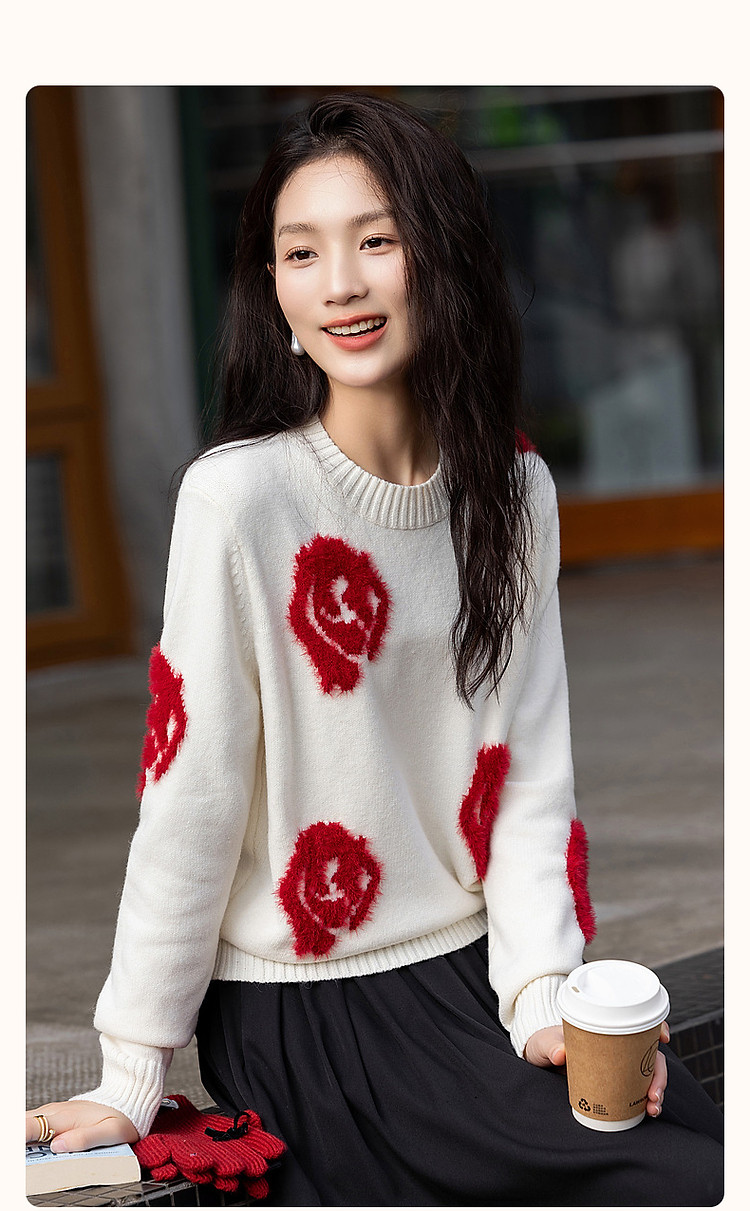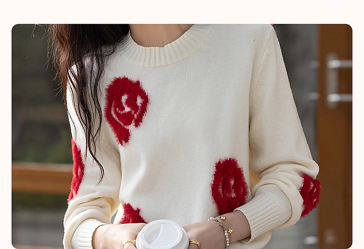 商品名称:【几朵浪漫】冬季ins慵懒风植物提花线衫藏肉好搭针织衫女上衣 792769