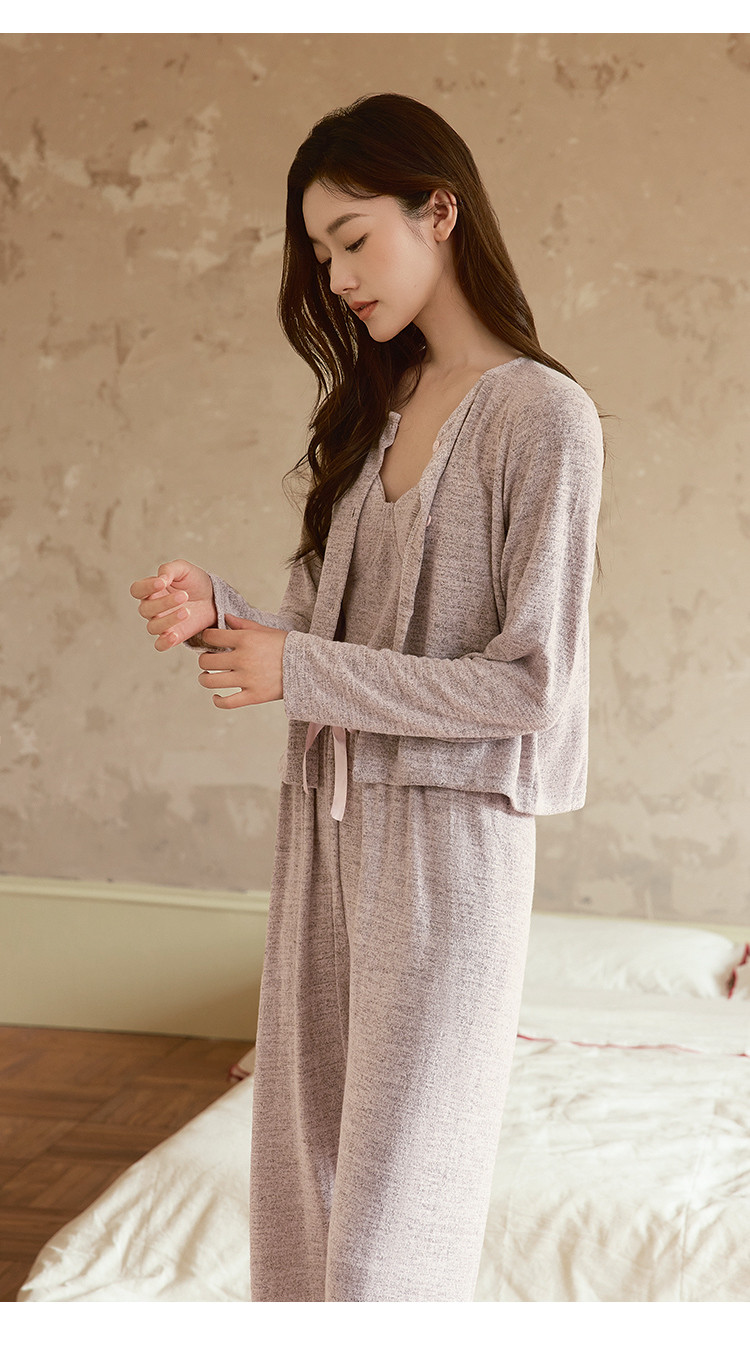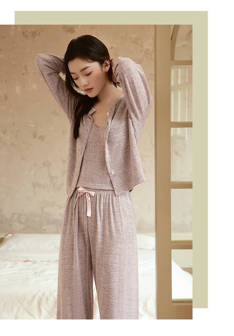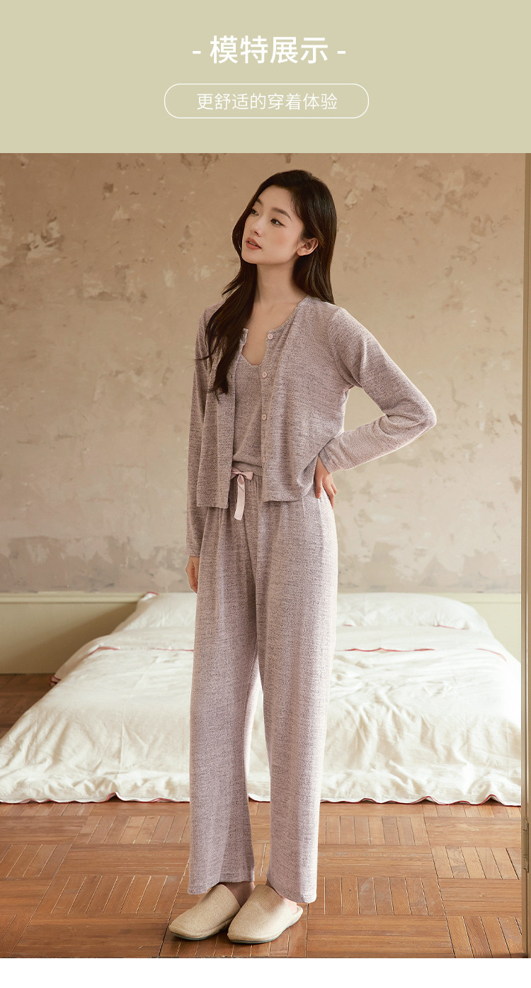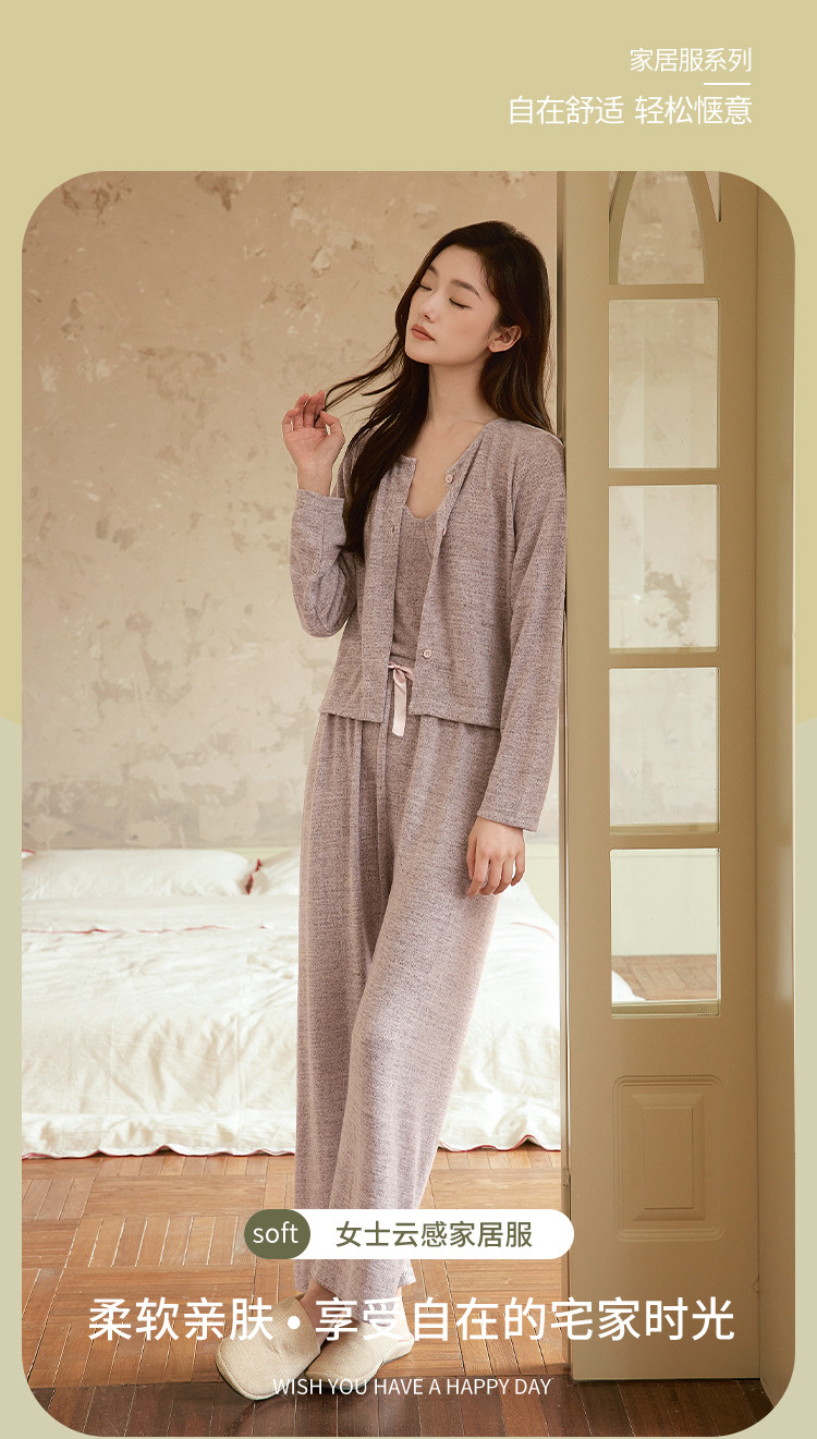 【经典优雅三件套】时尚高级感针织女士开衫家居服柔软舒适亲肤 027787