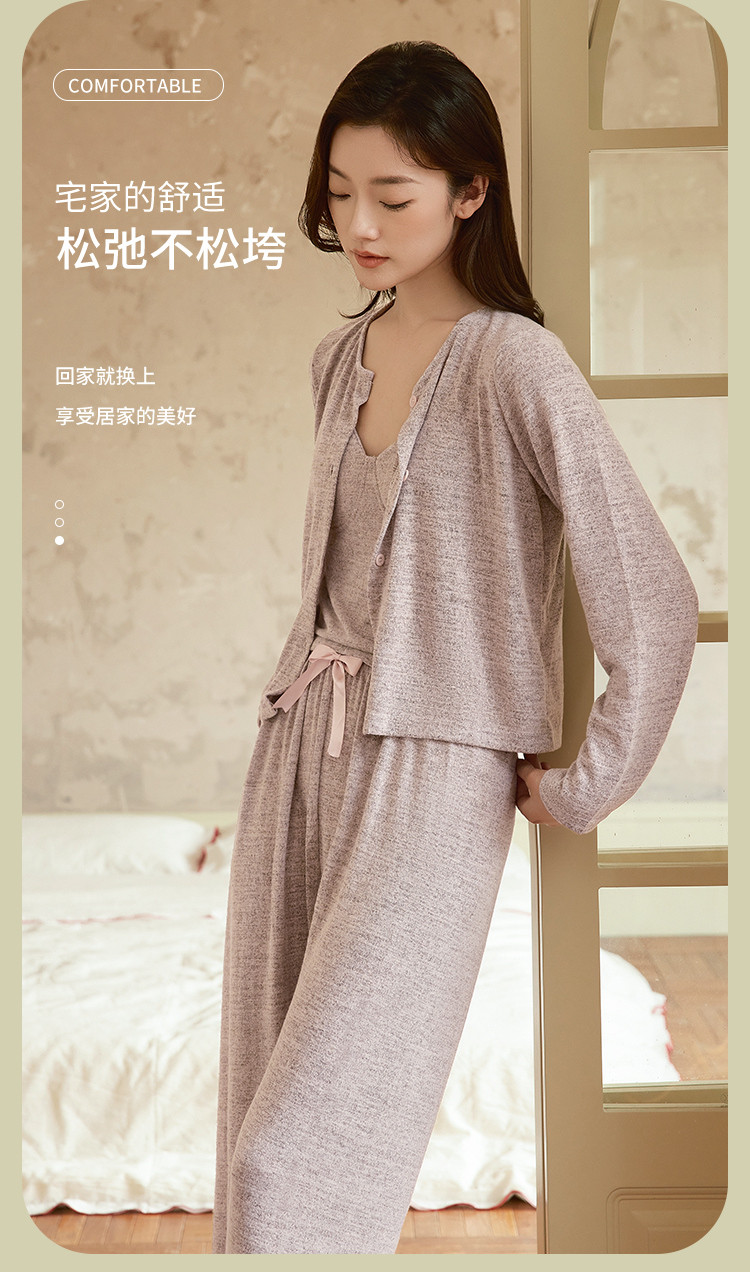 商品名称:【经典优雅三件套】时尚高级感针织女士开衫家居服柔软舒适亲肤 027787
