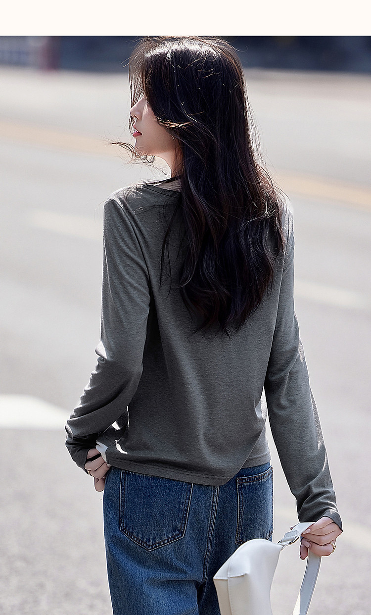 商品名称:【桑蚕丝醋酸混纺】春秋设计感假两件撞色长袖小个子气质女式t恤 802561
