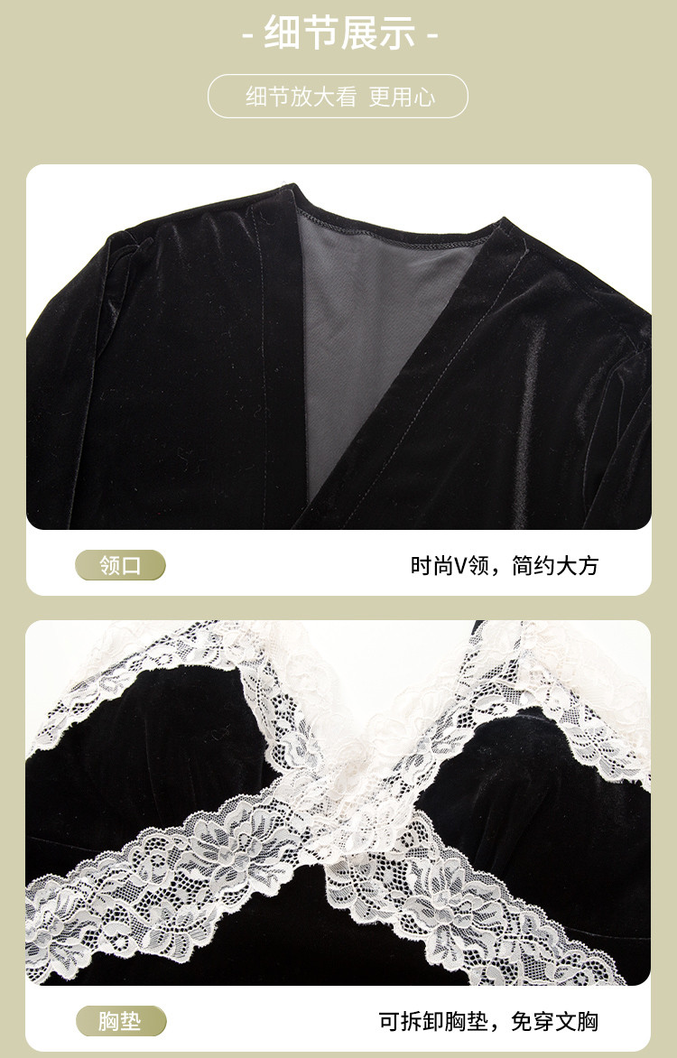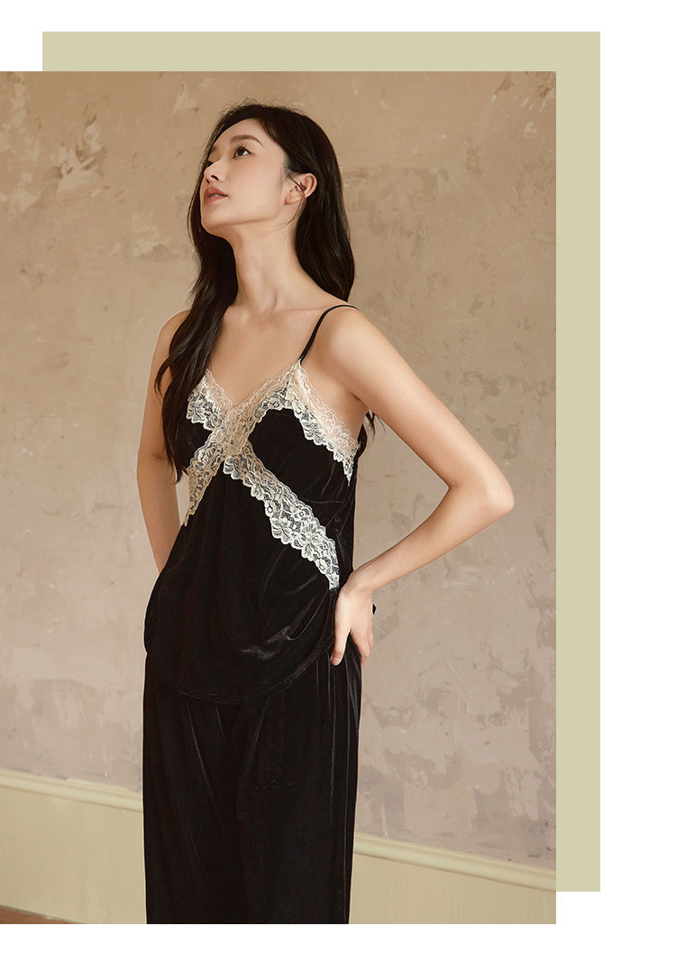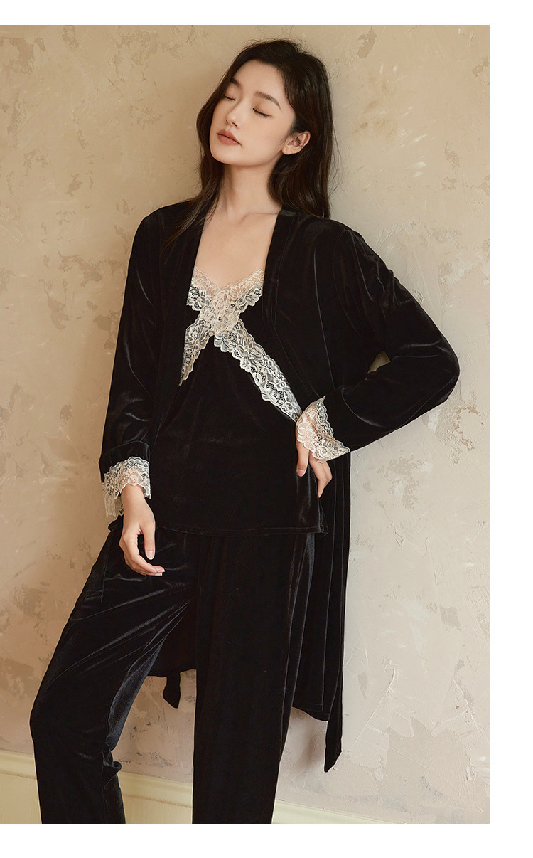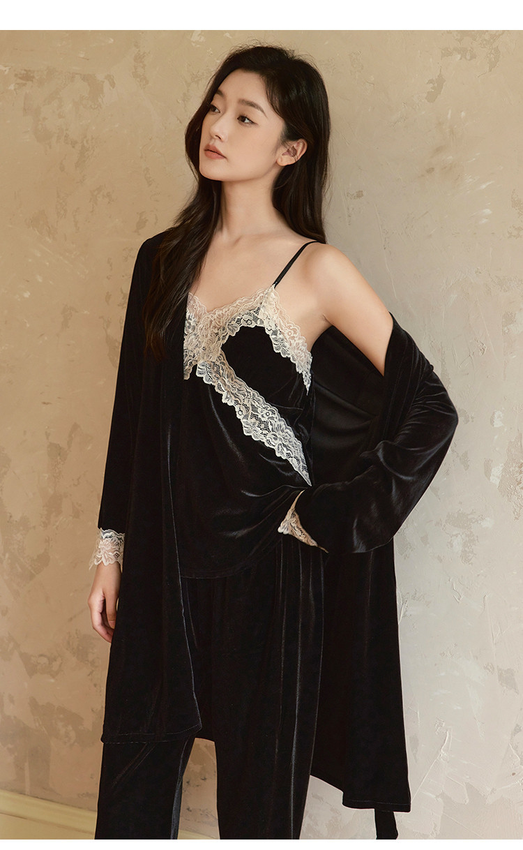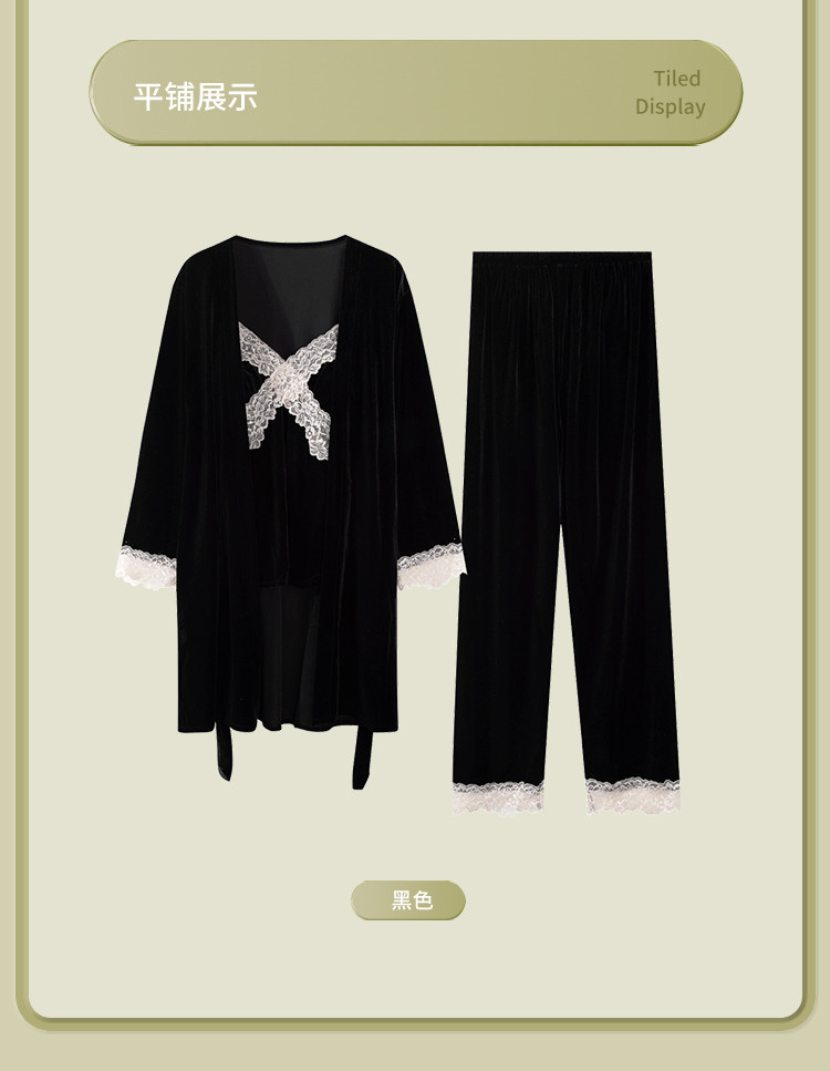 商品名称:韩系高级感性感蕾丝吊带睡衣三件套女士家居服柔软亲肤丝滑舒适 912587