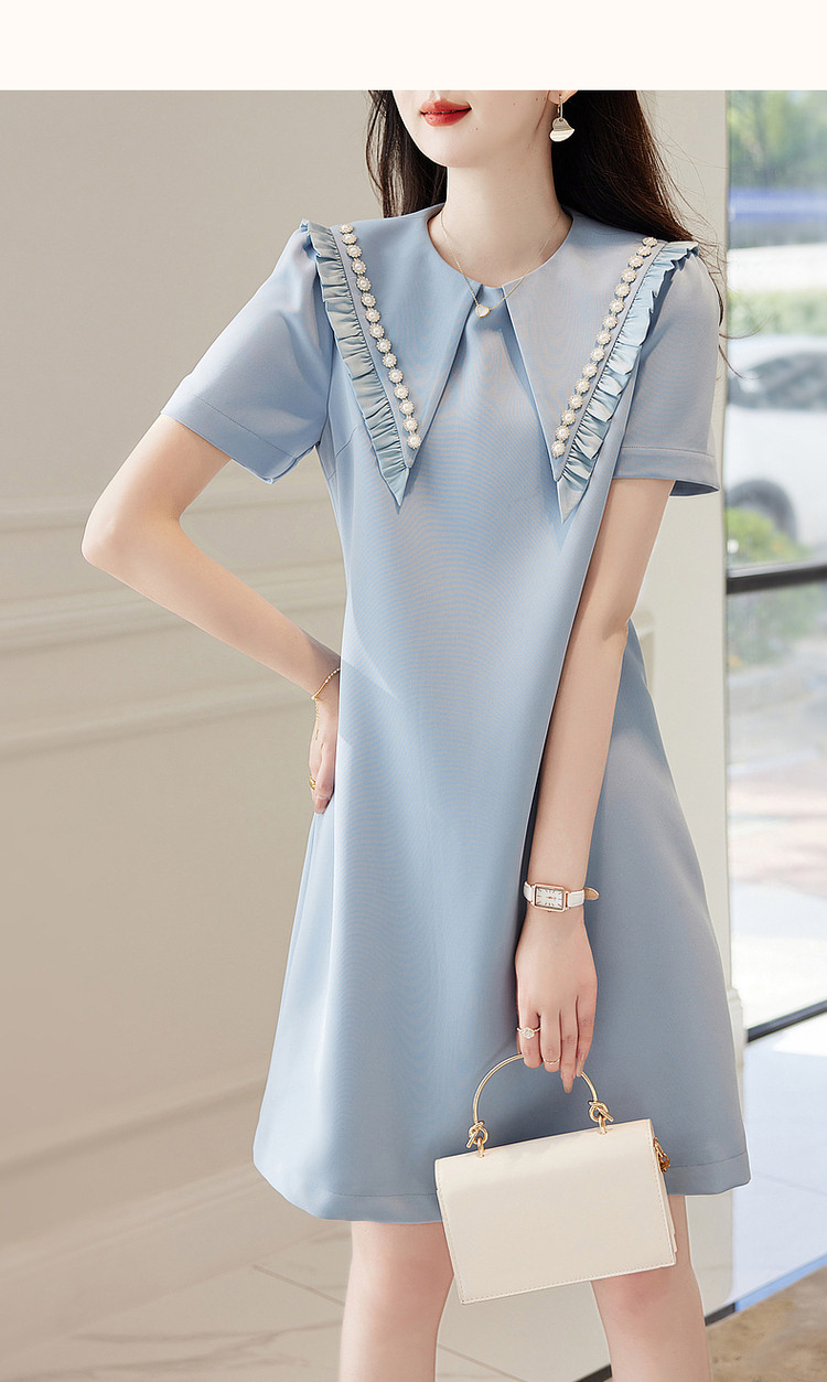 【俏皮大翻领荷叶边珠链a字裙】春秋直筒短袖连衣裙女 823617