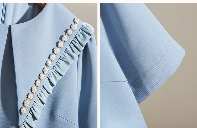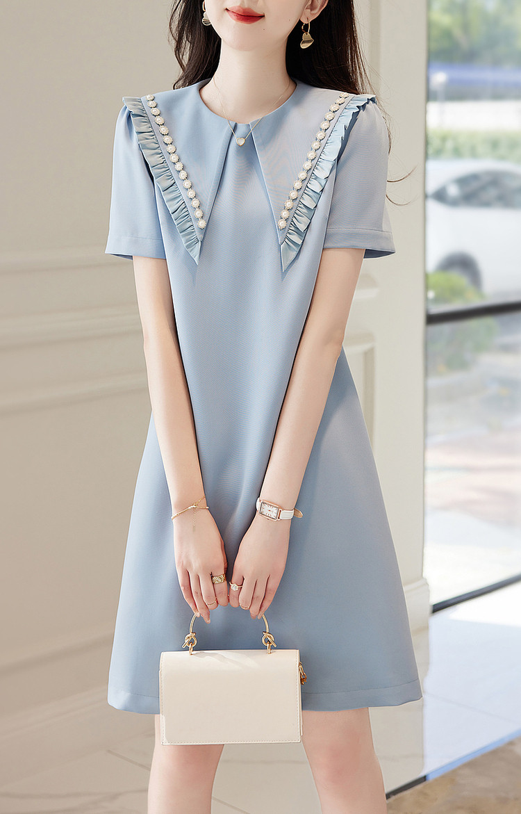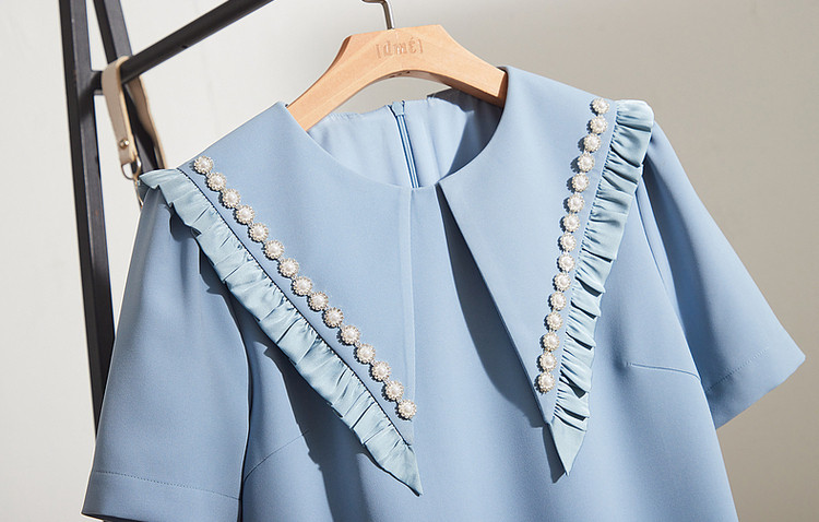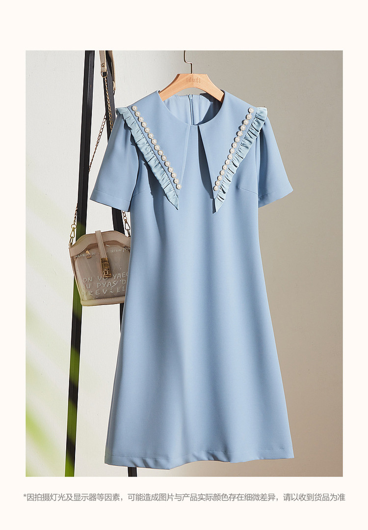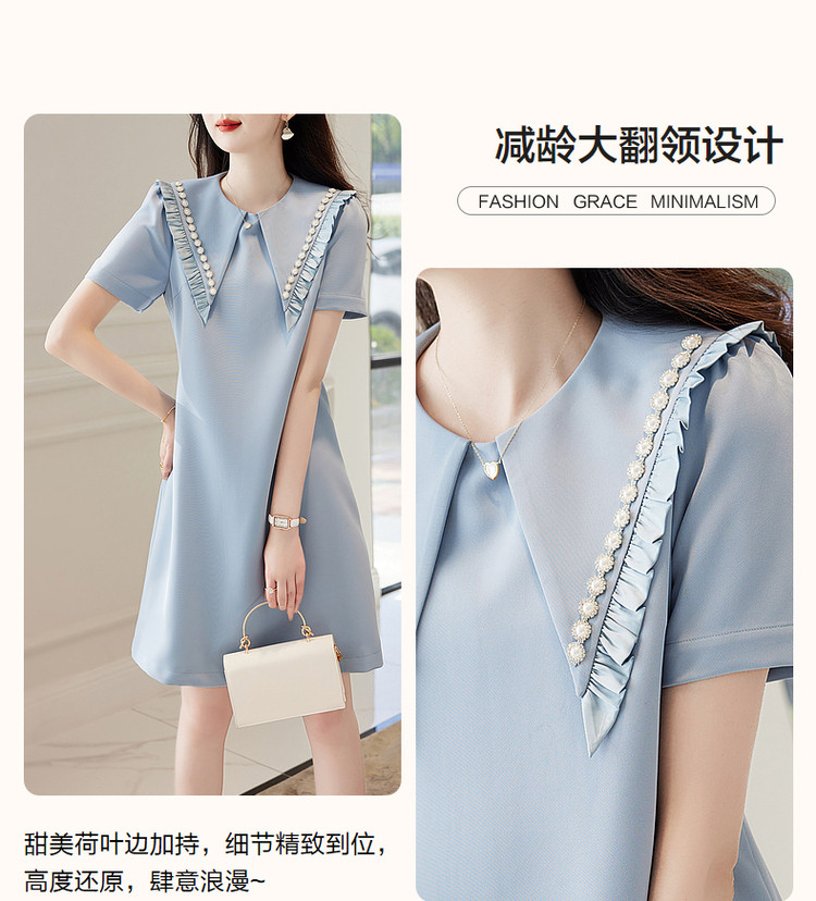 商品名称:【俏皮大翻领荷叶边珠链a字裙】春秋直筒短袖连衣裙女 823617