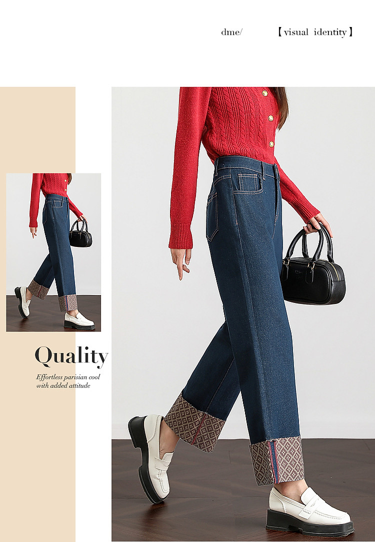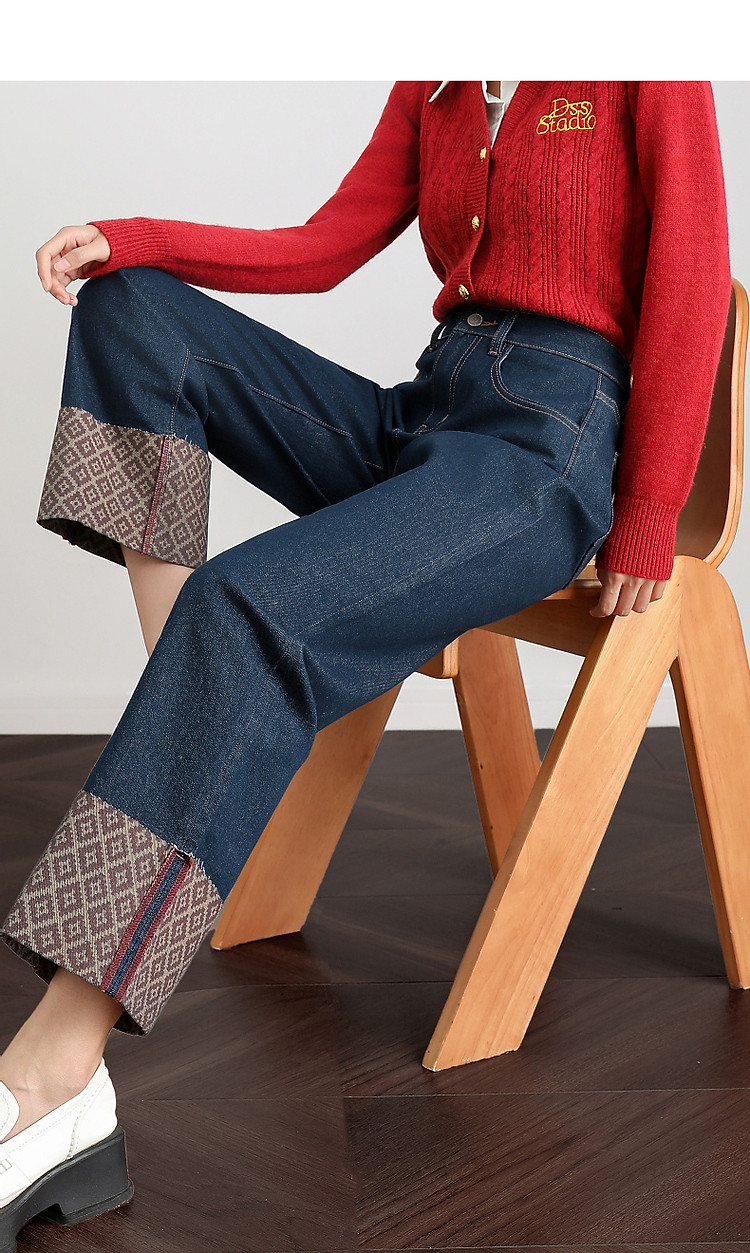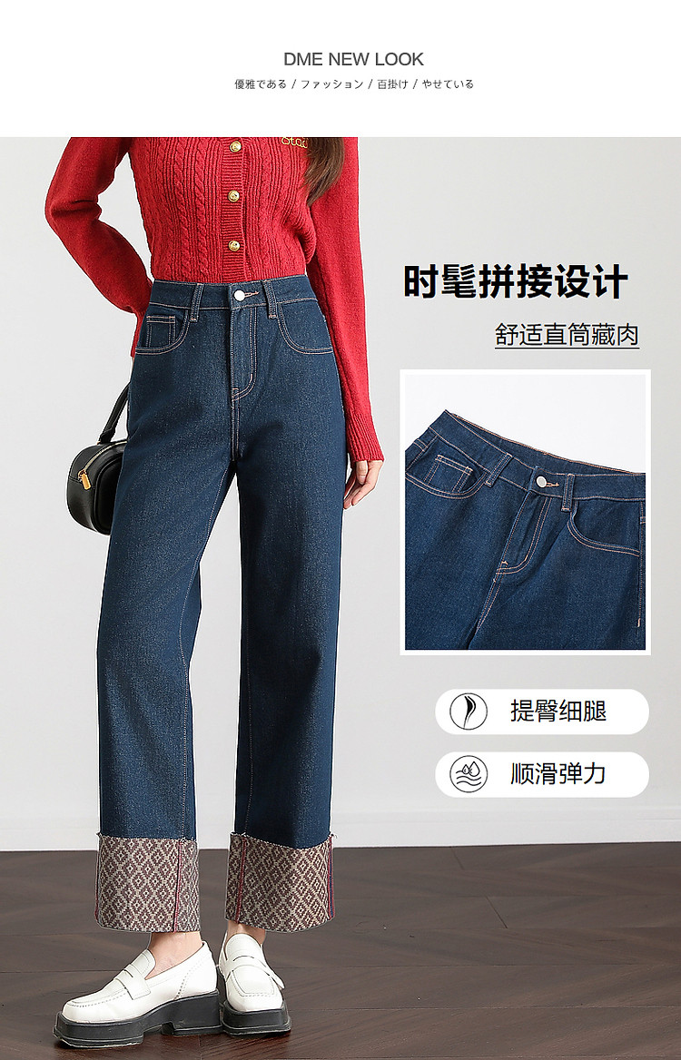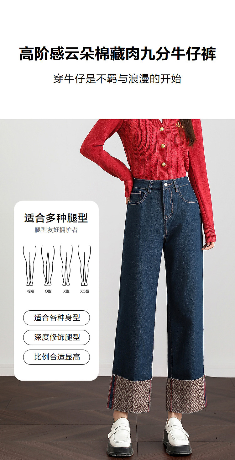 商品名称:【长期主义】秋高阶感云朵棉直筒藏肉九分裤设计感拼接女式牛仔裤 921345