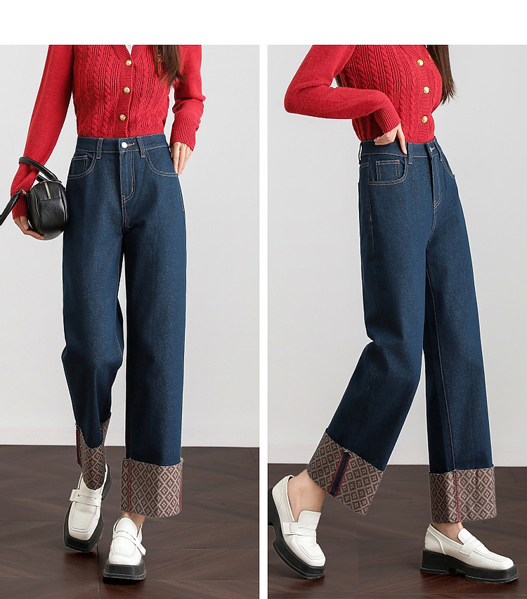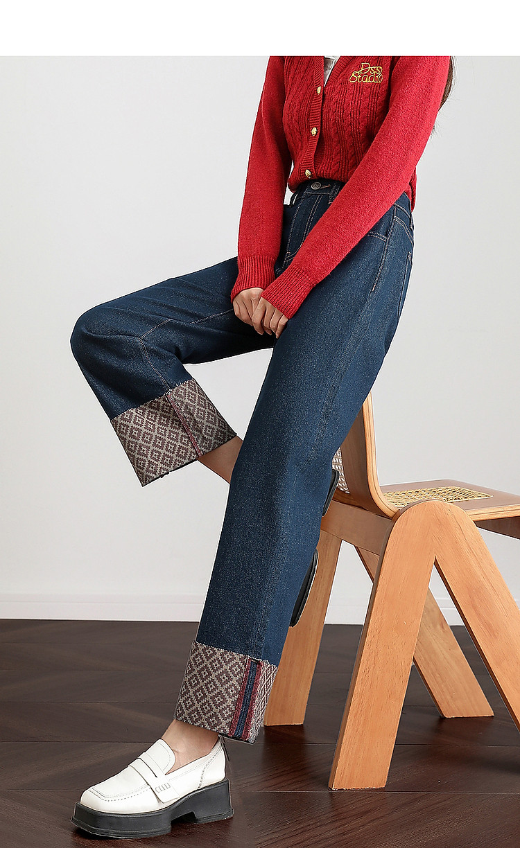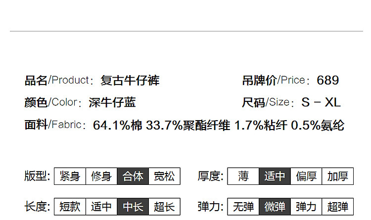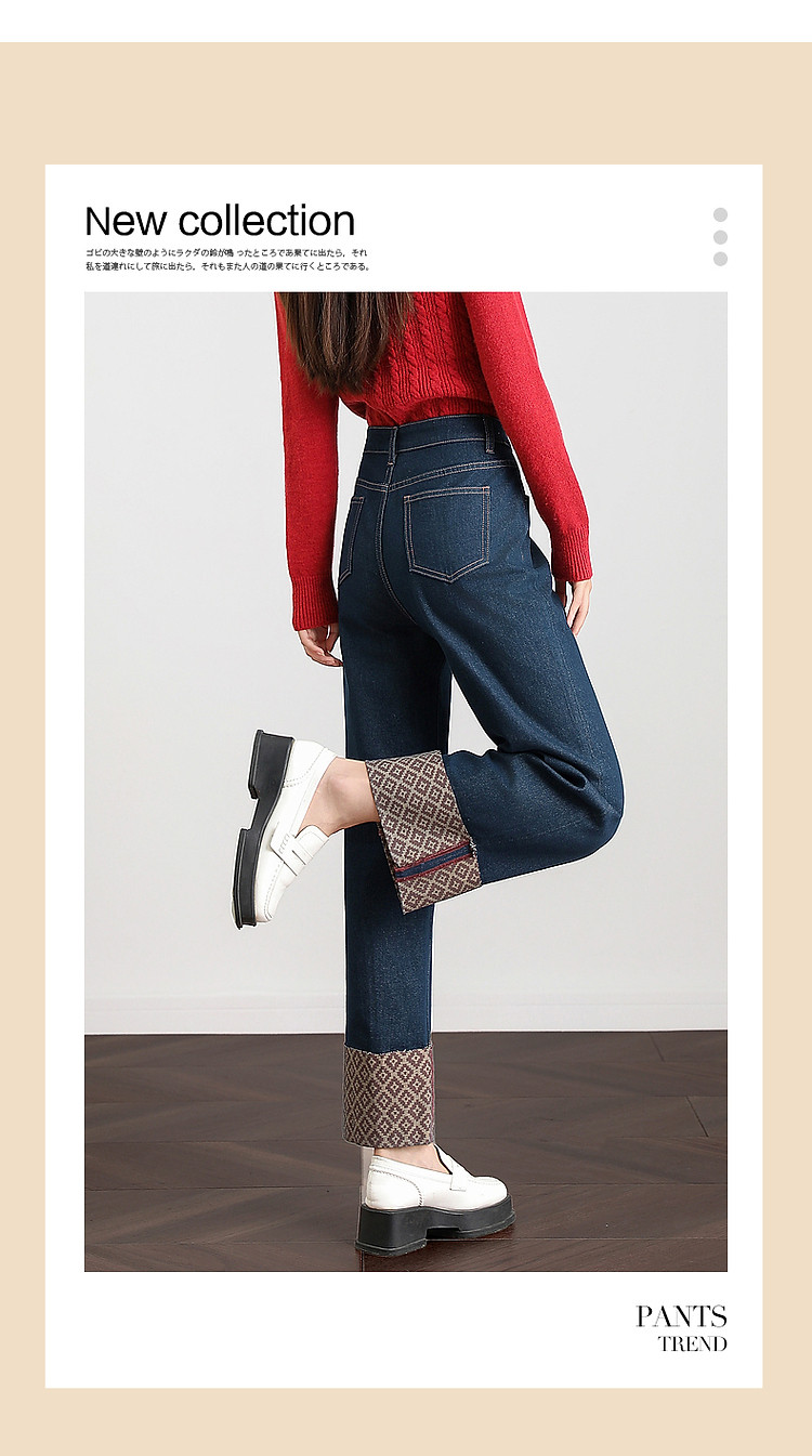 商品名称:【长期主义】秋高阶感云朵棉直筒藏肉九分裤设计感拼接女式牛仔裤 921345