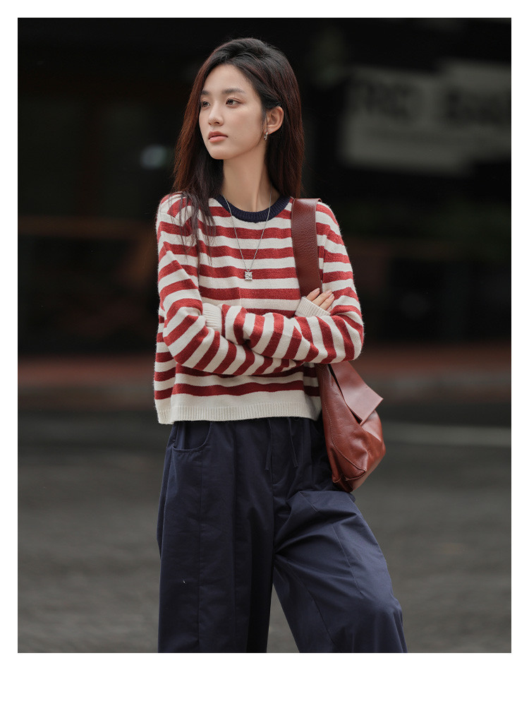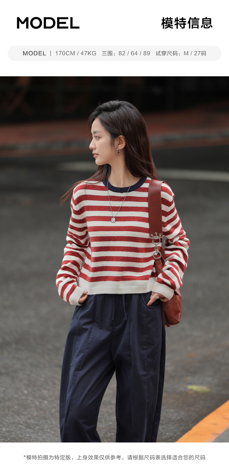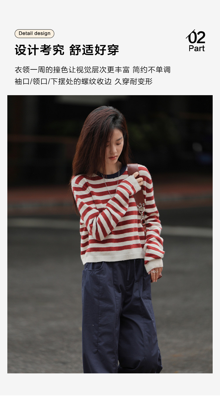 商品名称:【经典撞色条纹】春款圆领套头长袖针织衫女 962434