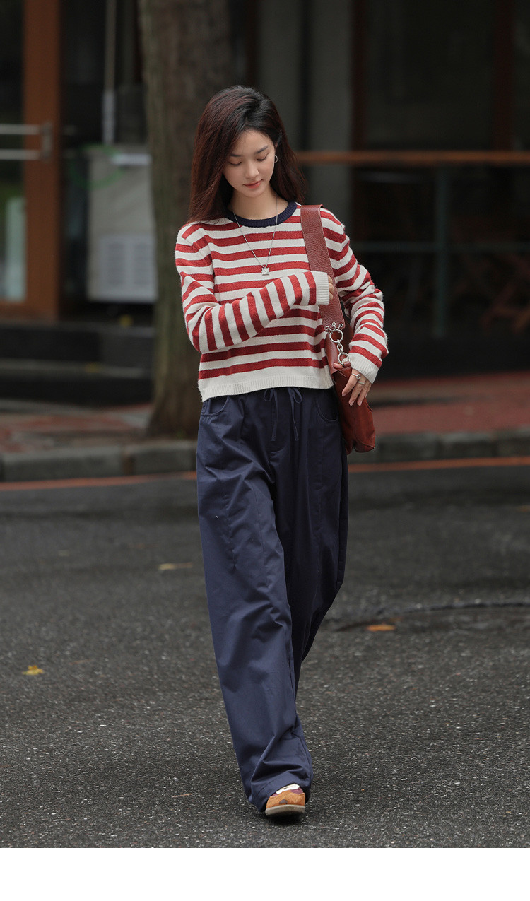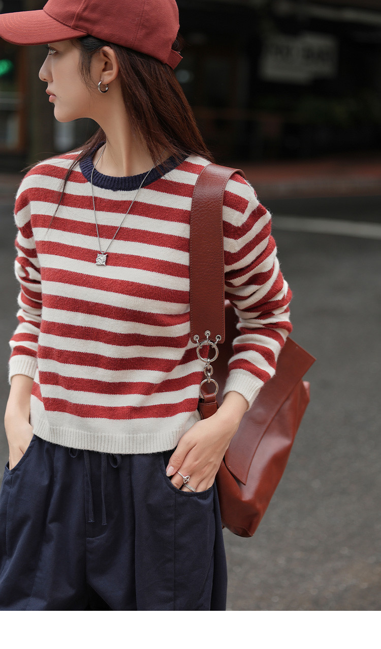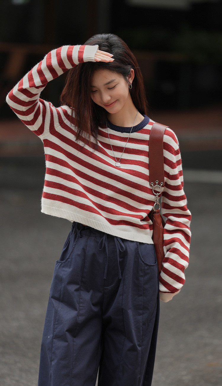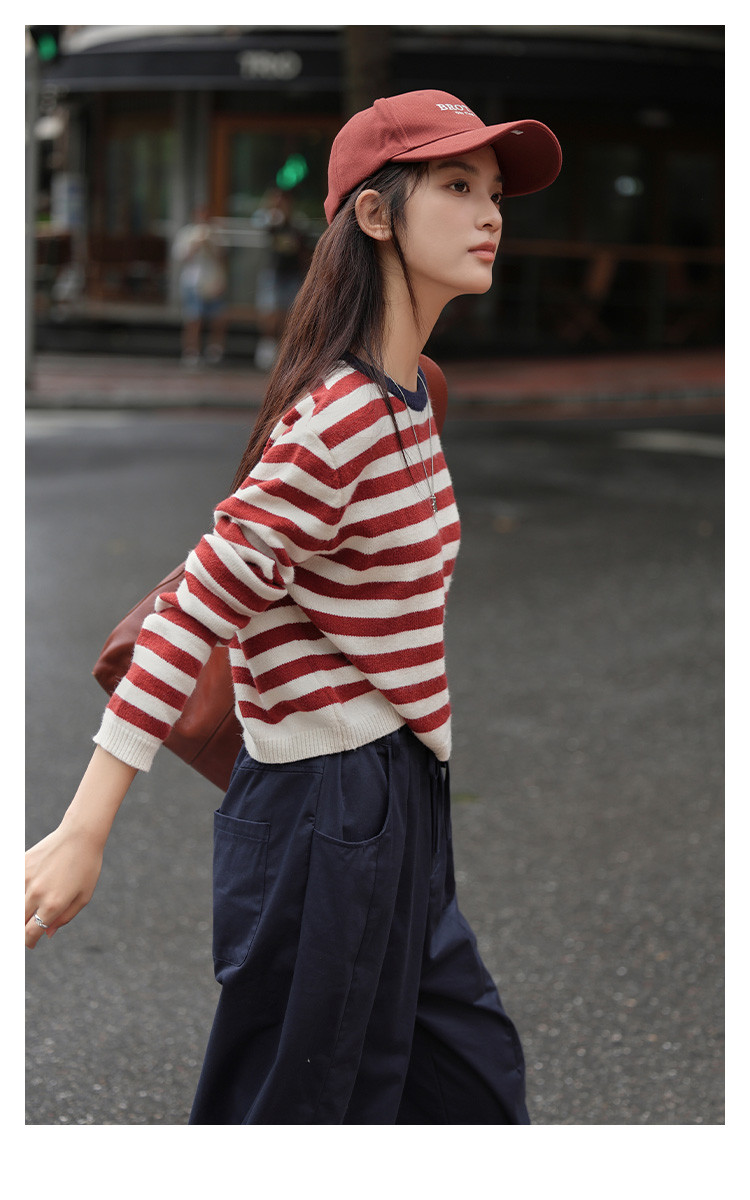商品名称:【经典撞色条纹】春款圆领套头长袖针织衫女 962434