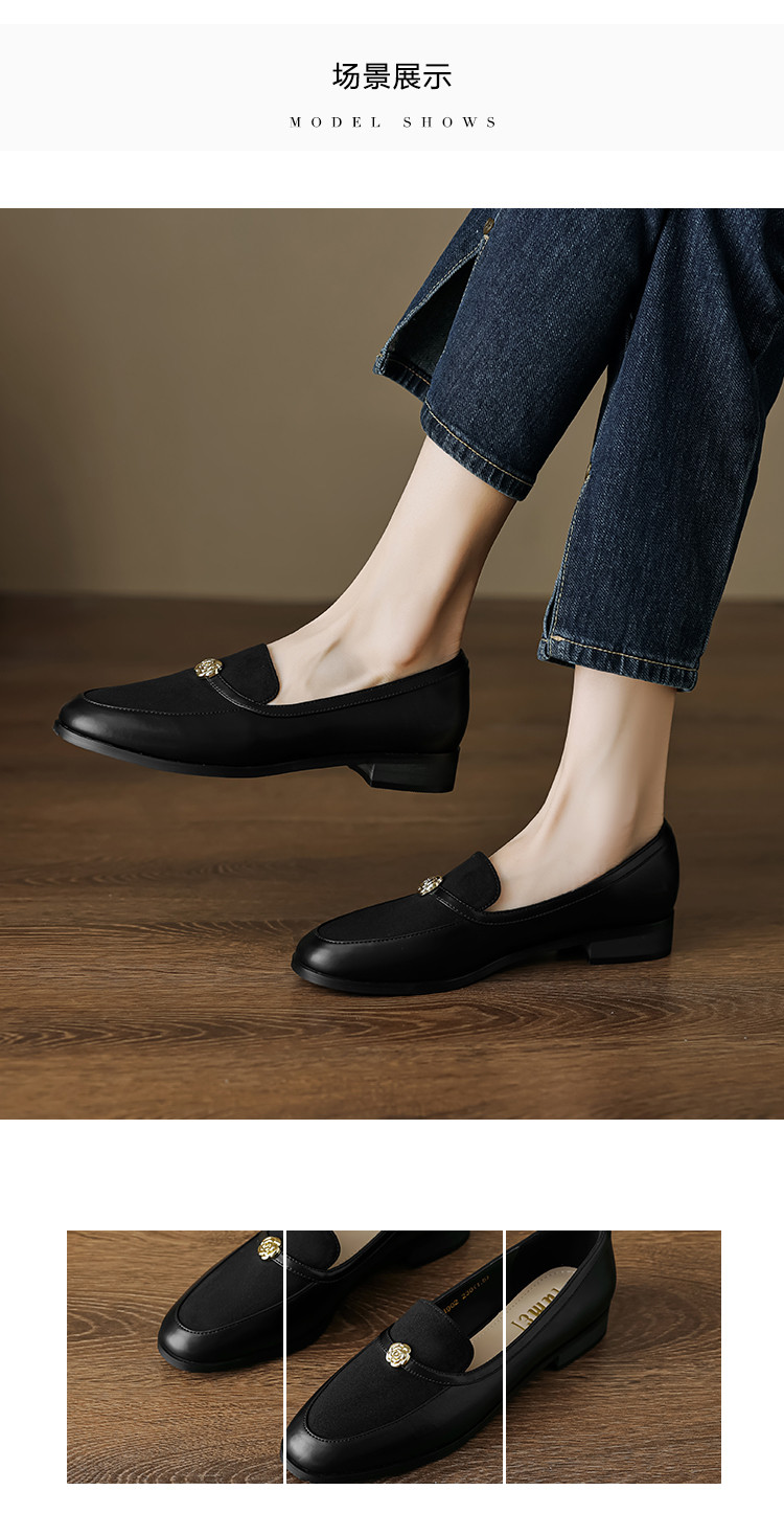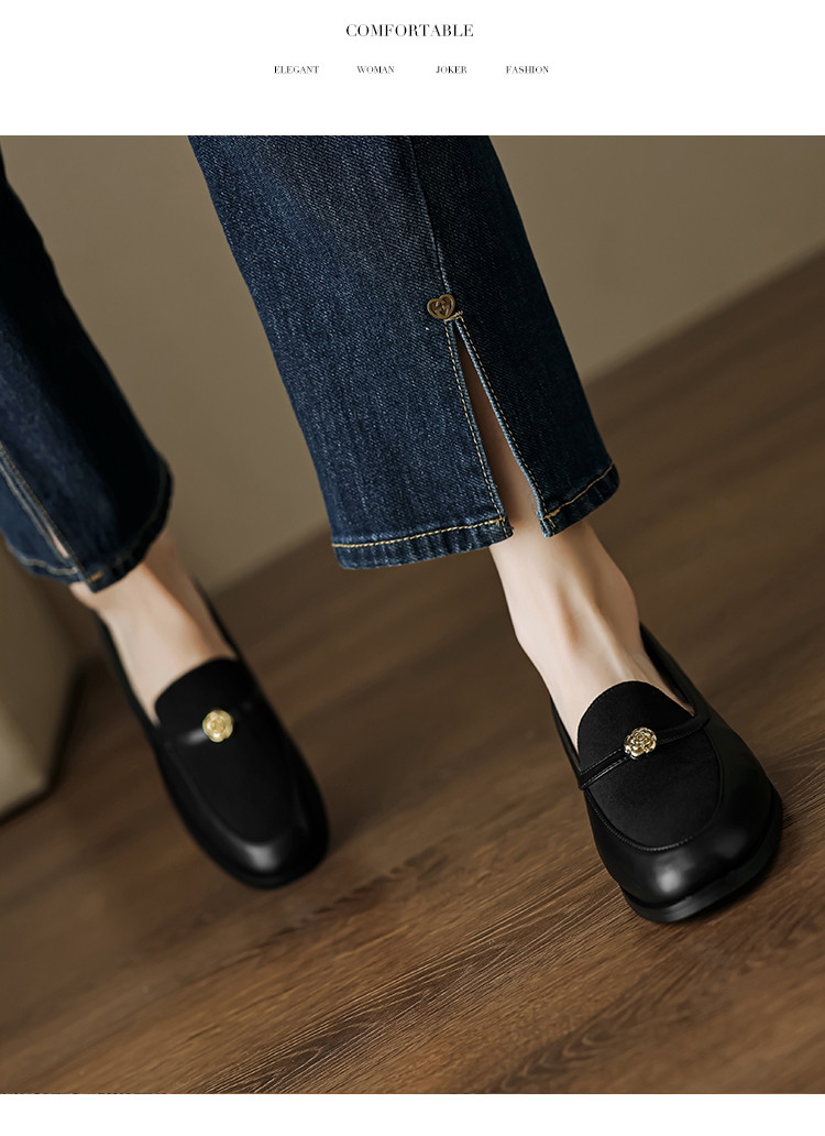 商品名称:时尚简约气质高级感复古拼接玫瑰花深口乐福鞋女单鞋 252737