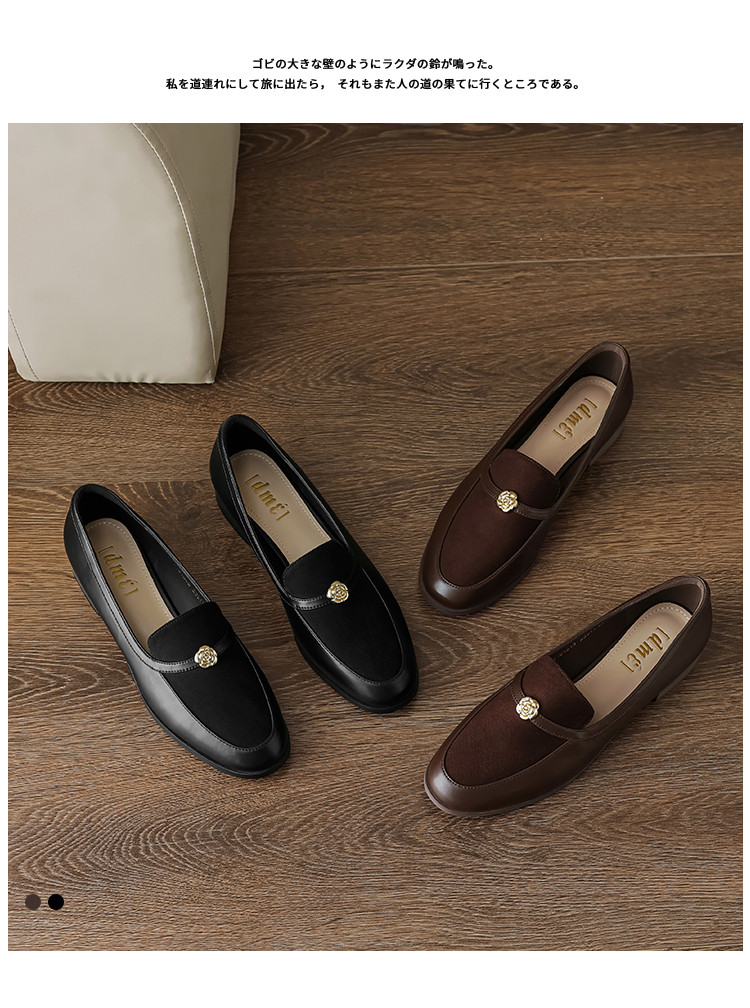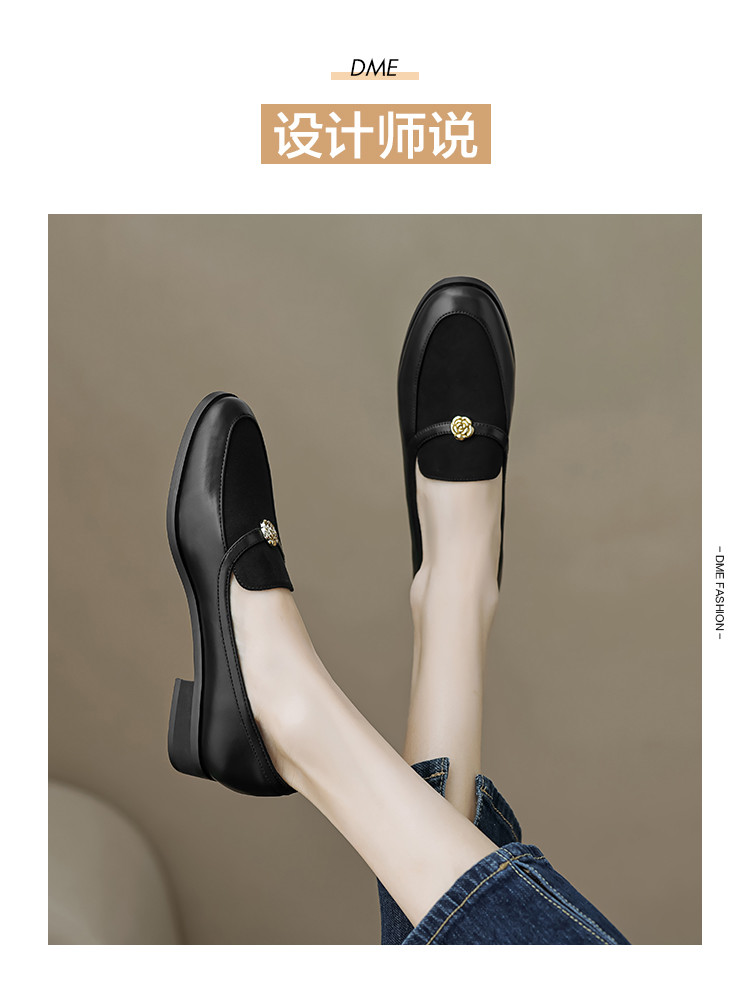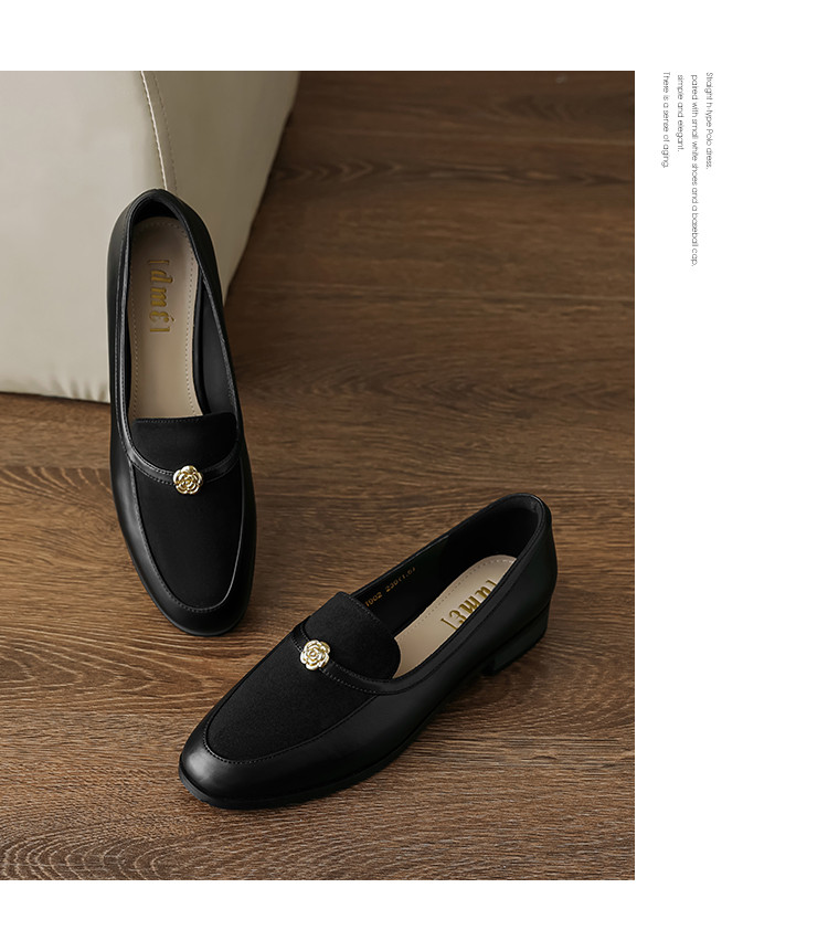 时尚简约气质高级感复古拼接玫瑰花深口乐福鞋女单鞋 252737