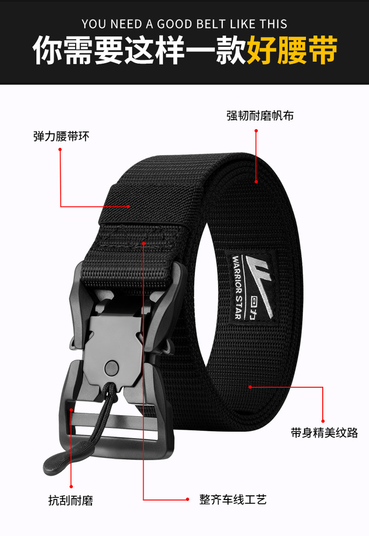商品名称:磁力扣机能腰带裤带战术快速工装ins潮尼龙皮带免打孔裤腰带 358601