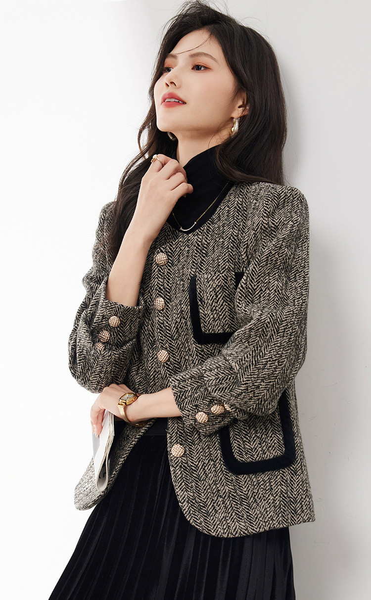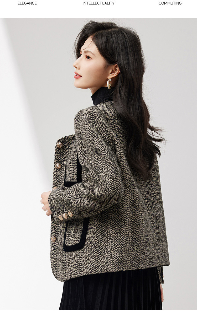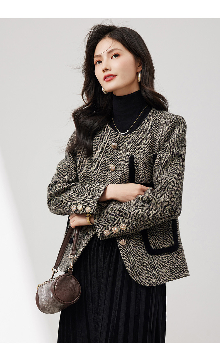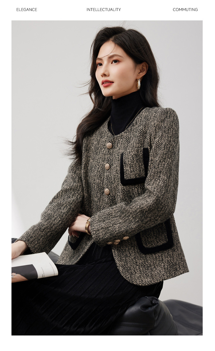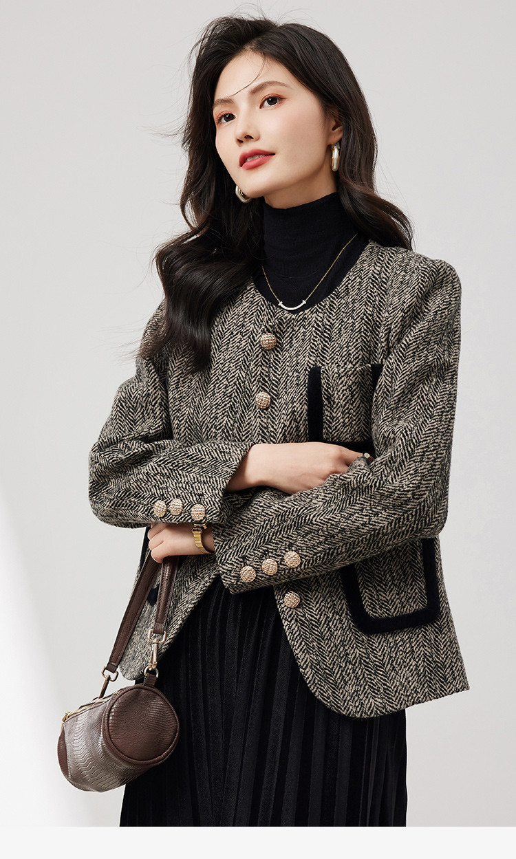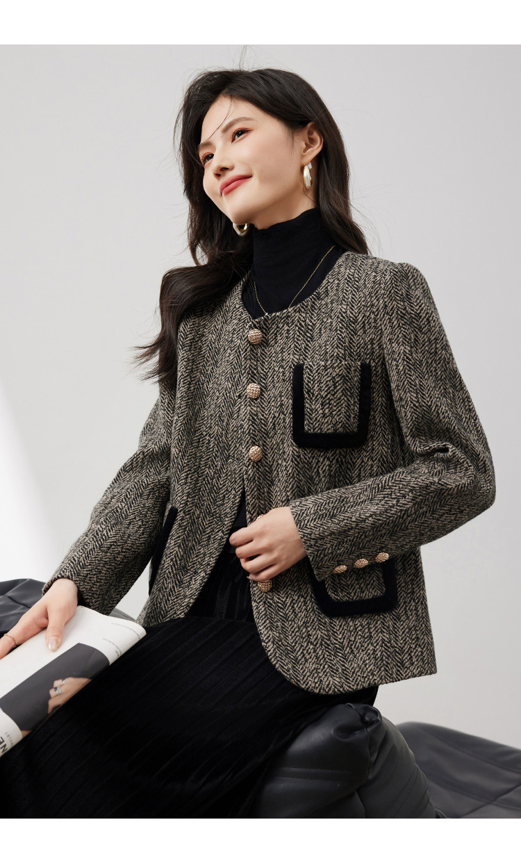 商品名称:老钱风短外套女2025春秋款高级感气质粗小香风花呢外套含羊毛 840536