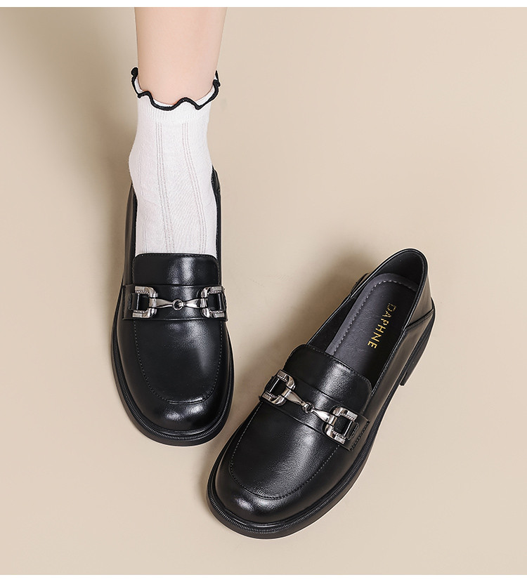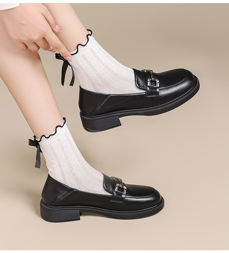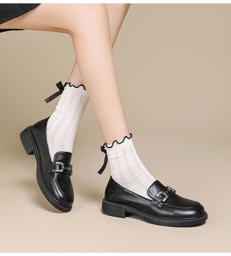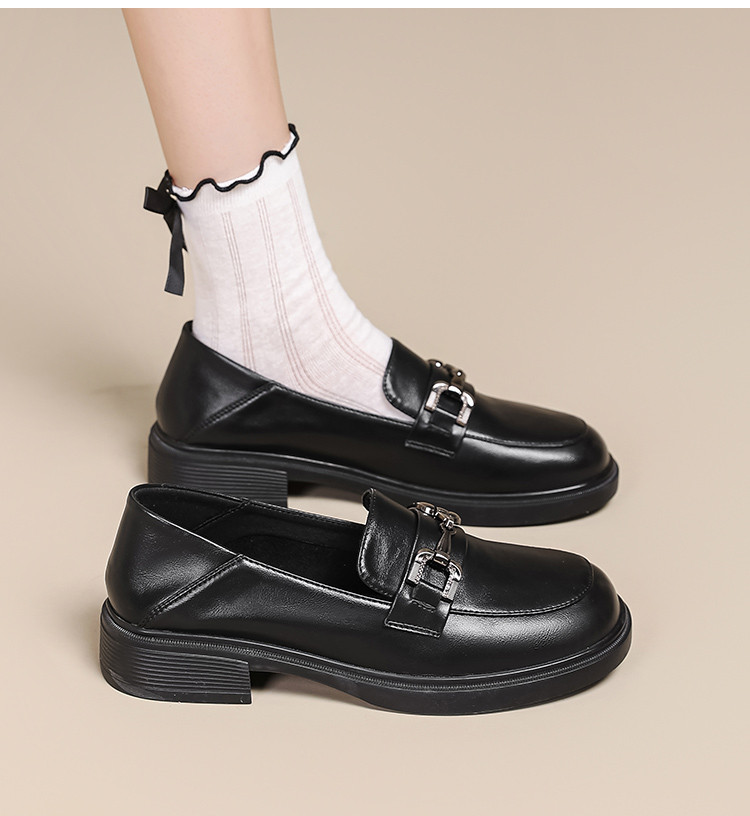 商品名称:春夏乐福鞋女粗跟浅口时尚单鞋通勤鞋英伦风百搭JK制服鞋厚底鞋 595415