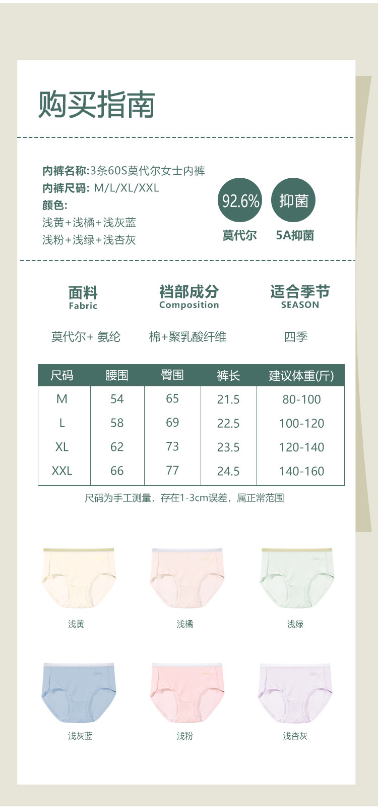 商品名称:【捡漏出清5A抑菌】3条60S莫代尔高弹无痕无缝女士内裤夏季 411998