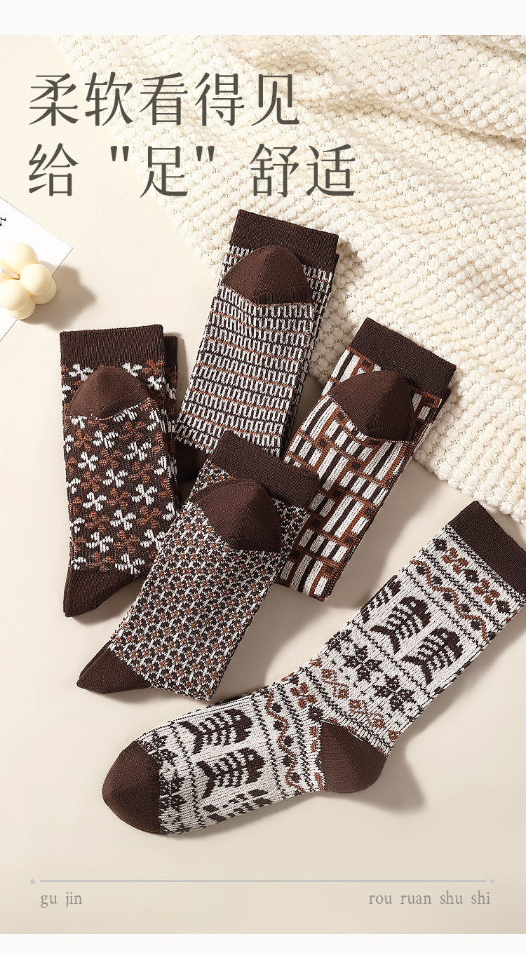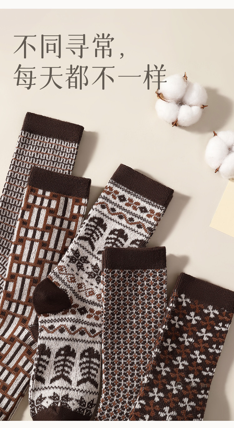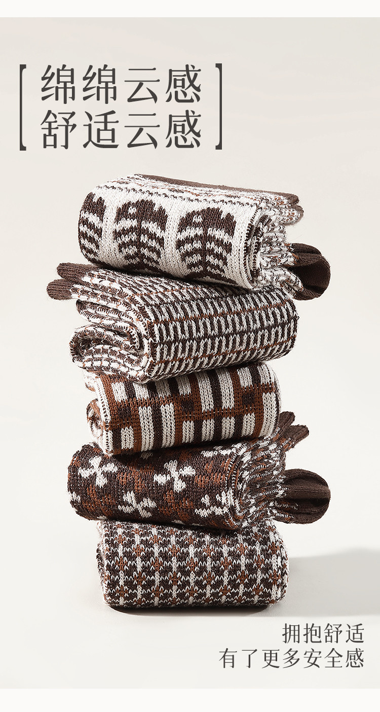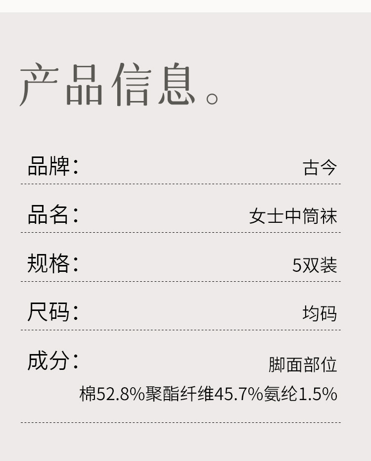 商品名称:【5双装】春秋款女士袜子女柔软舒适绵柔亲肤女袜棉质有氧中筒袜 466571