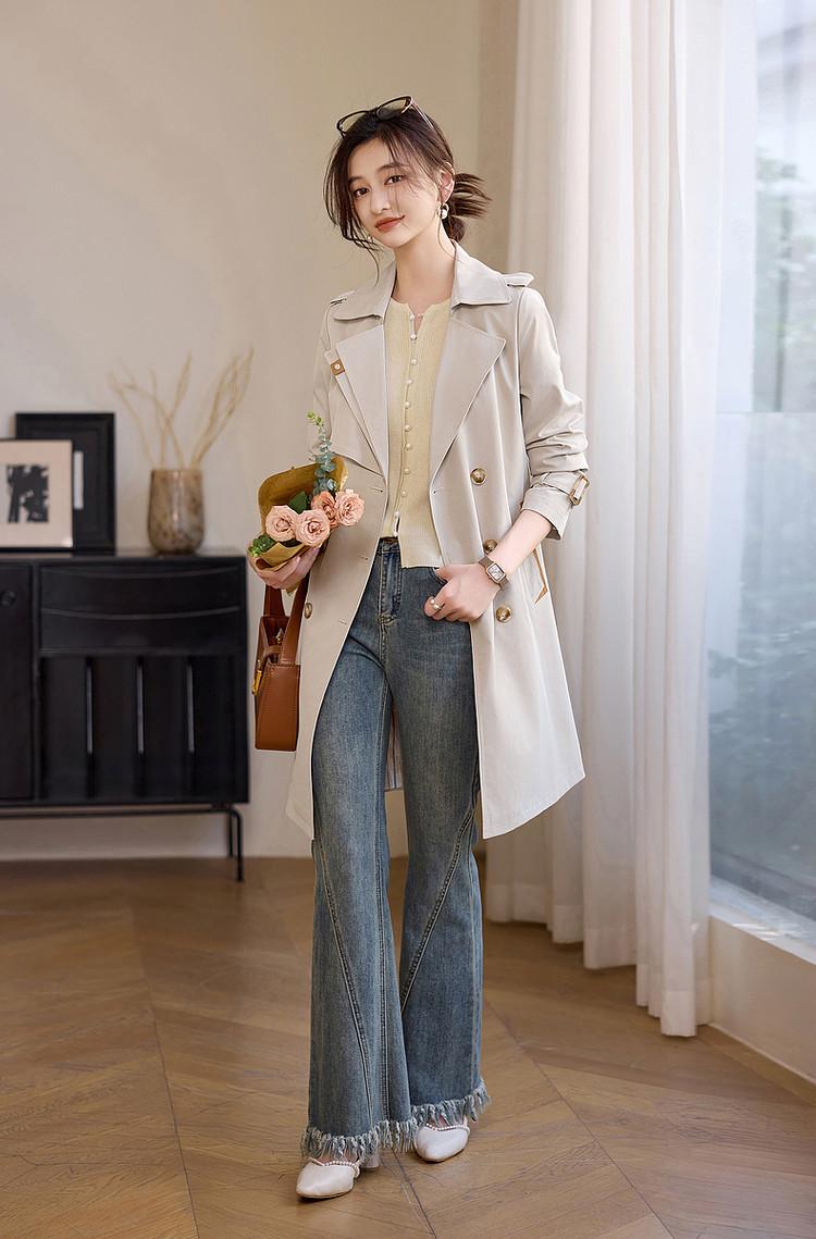 时尚休闲高级感小个子流行气质外套收腰风衣女 691672
