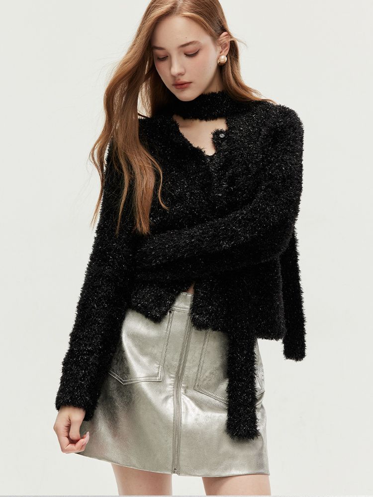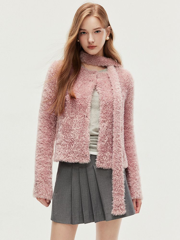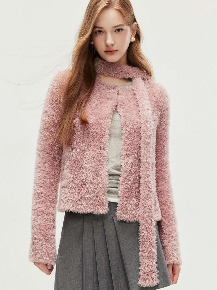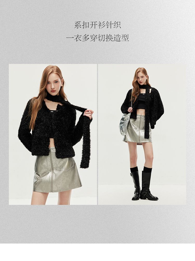 【闪葱亮丝】春季时尚百搭短款圆领开衫围巾针织衫女 278682