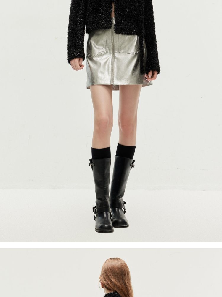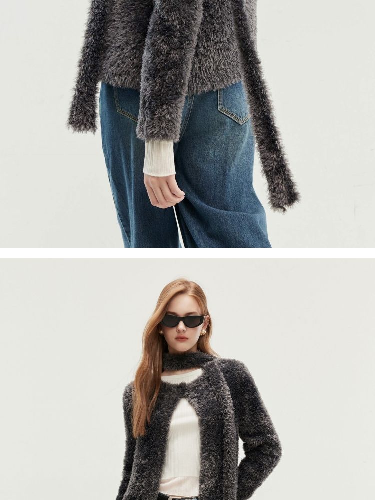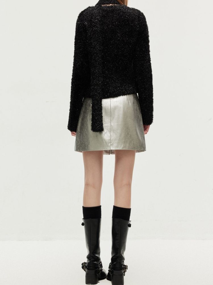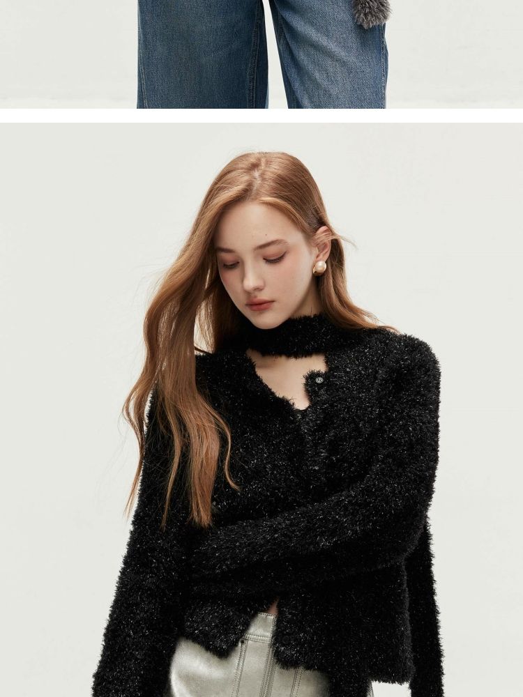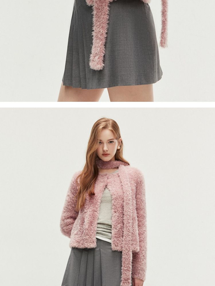 【闪葱亮丝】春季时尚百搭短款圆领开衫围巾针织衫女 278682