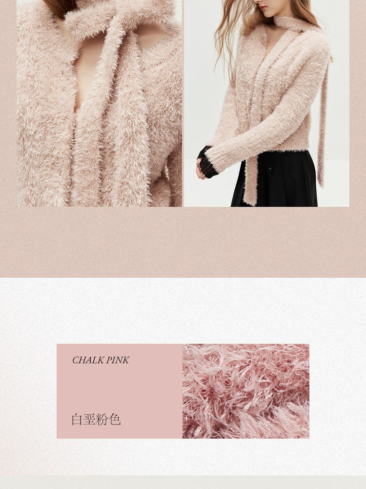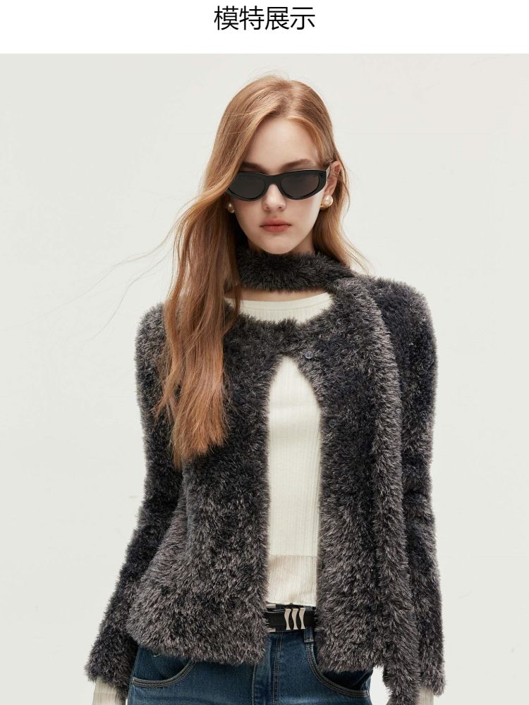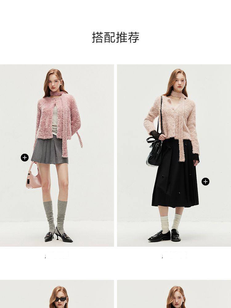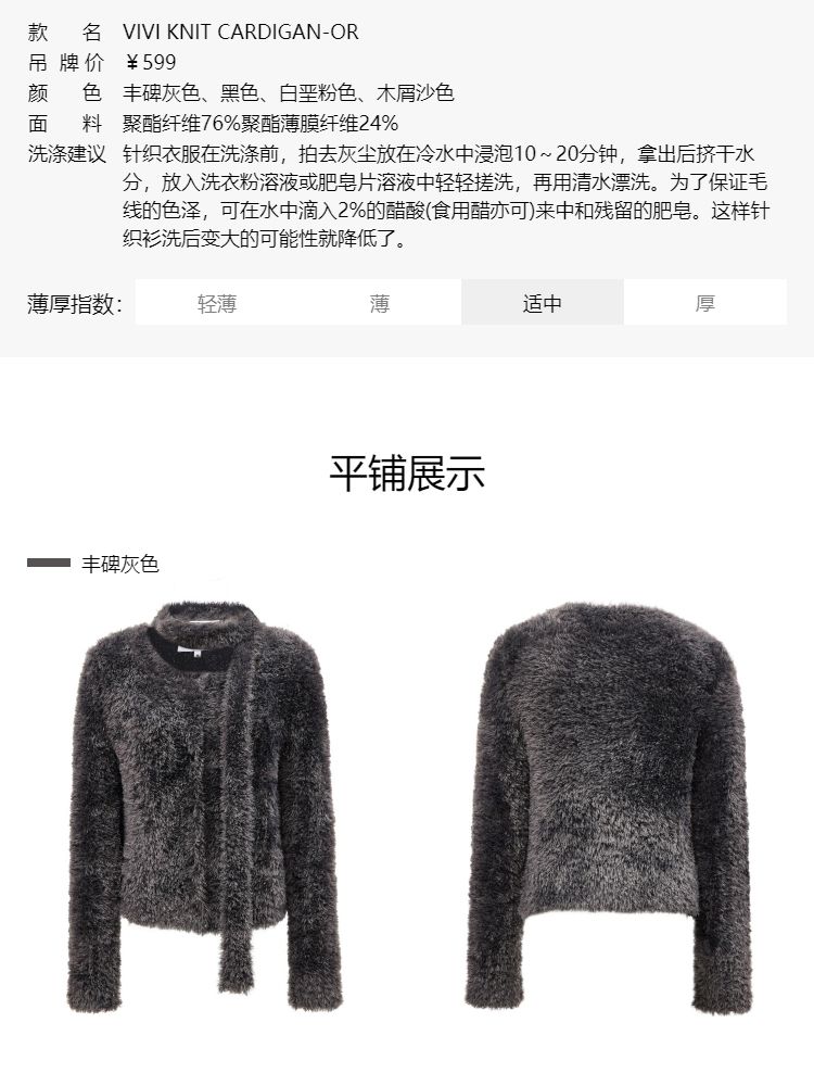 商品名称:【闪葱亮丝】春季时尚百搭短款圆领开衫围巾针织衫女 278682