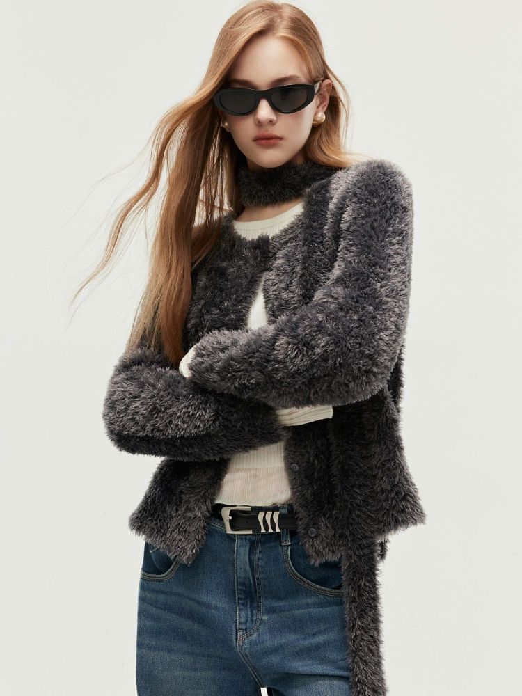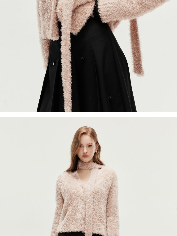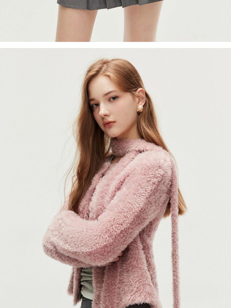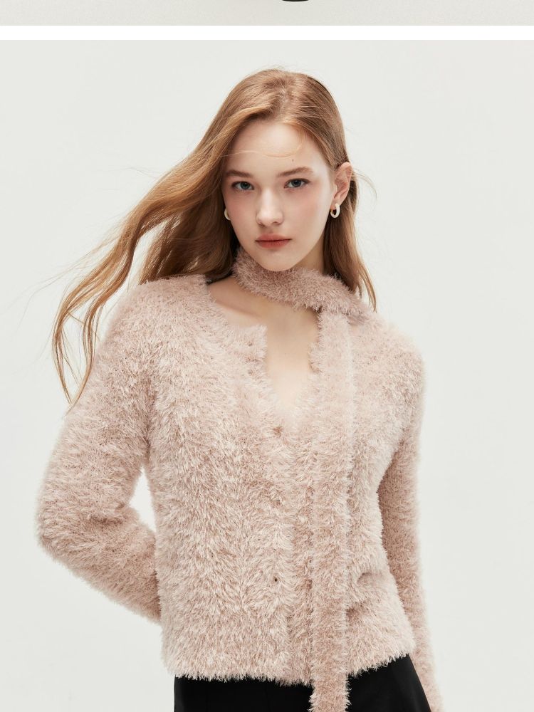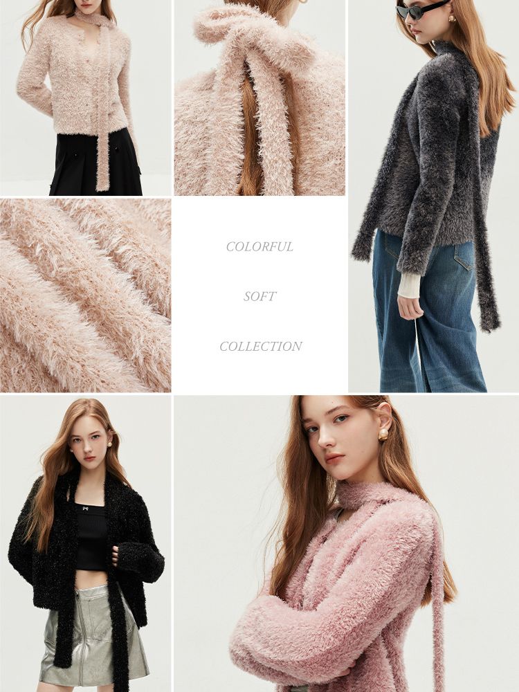 商品名称:【闪葱亮丝】春季时尚百搭短款圆领开衫围巾针织衫女 278682