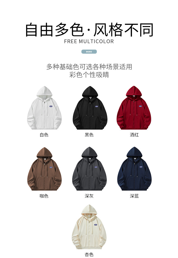 商品名称:秋装百搭印花青少年秋季男女同款休闲连帽开衫卫衣上衣情侣外套 154195