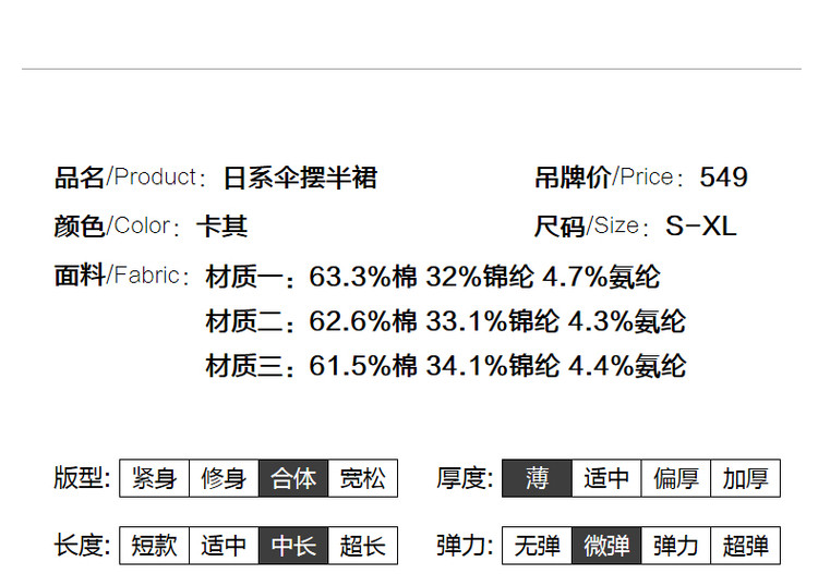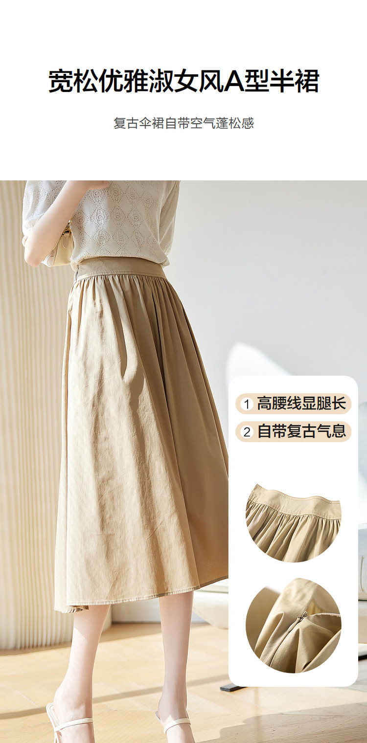 商品名称:【淑女日系伞裙】夏高腰显瘦半裙气质褶皱a字半身裙女中长看 201537