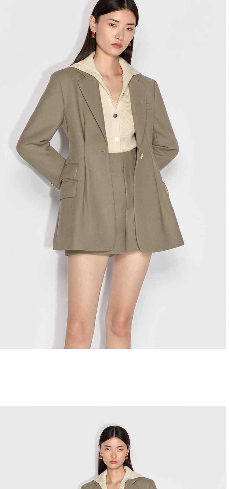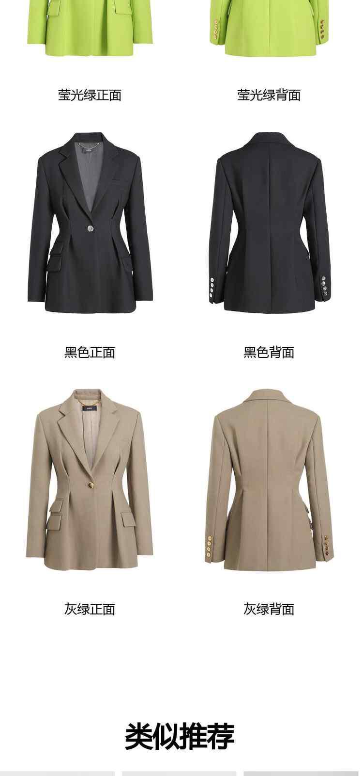 商品名称:黑标系列 早春粒扣驳领收腰西装外套女 577223
