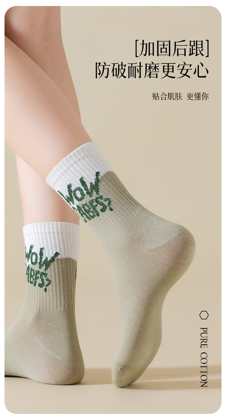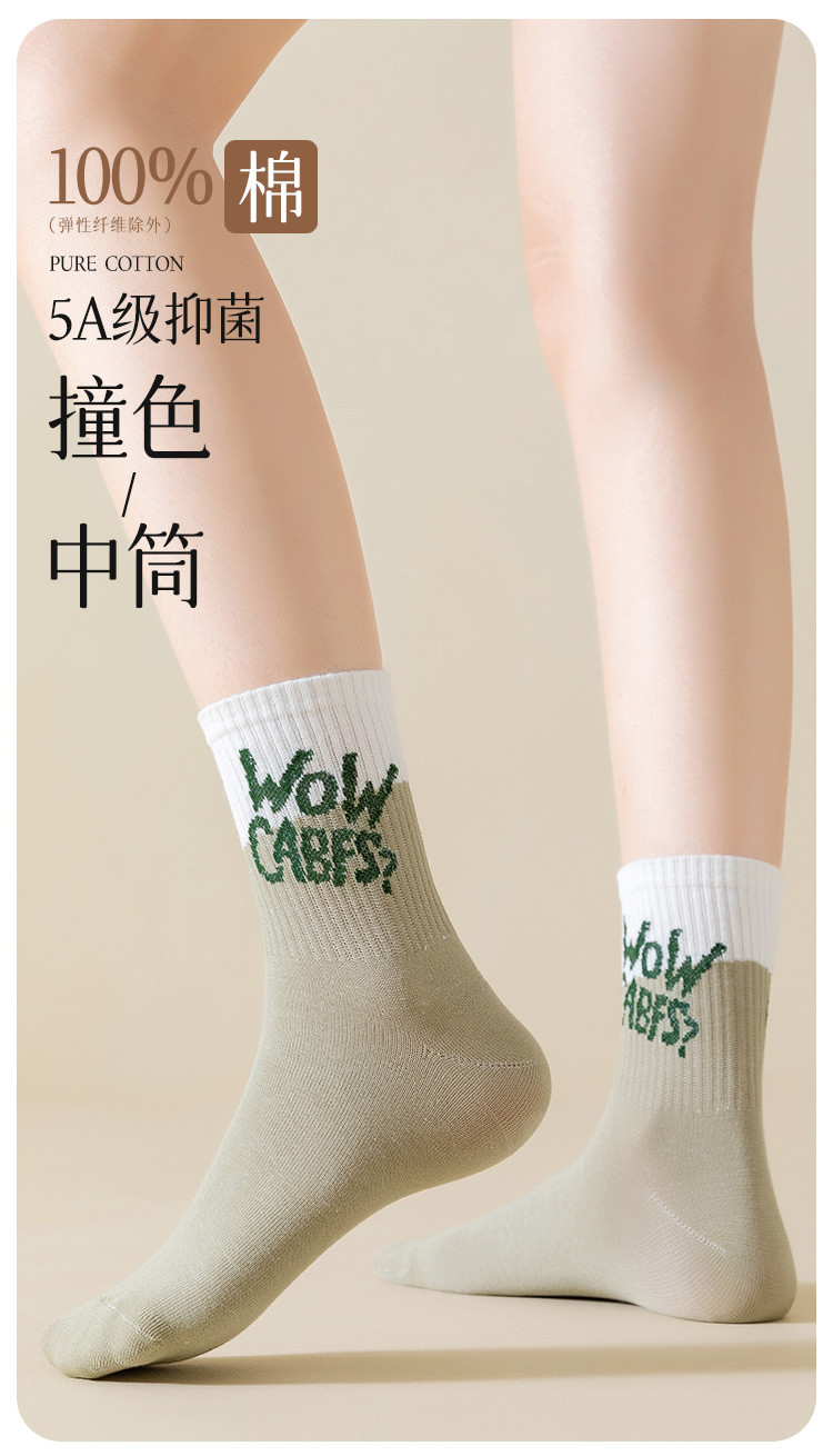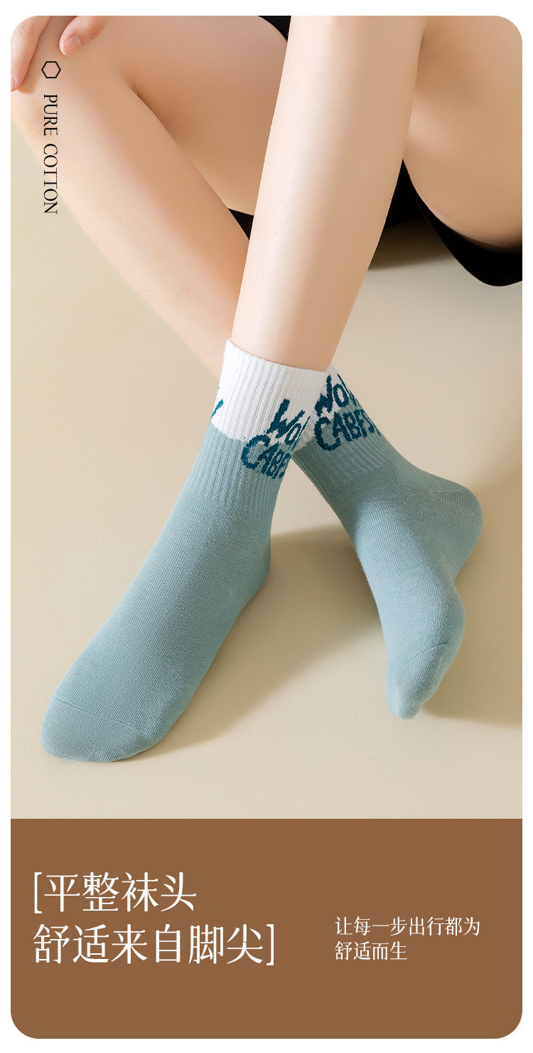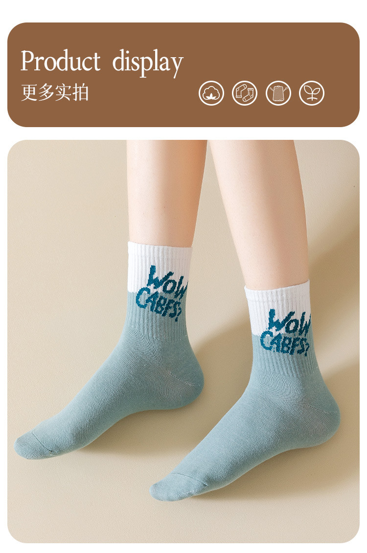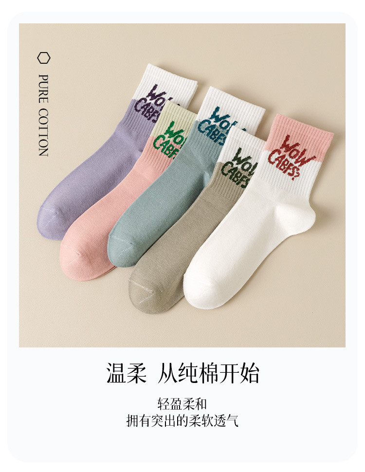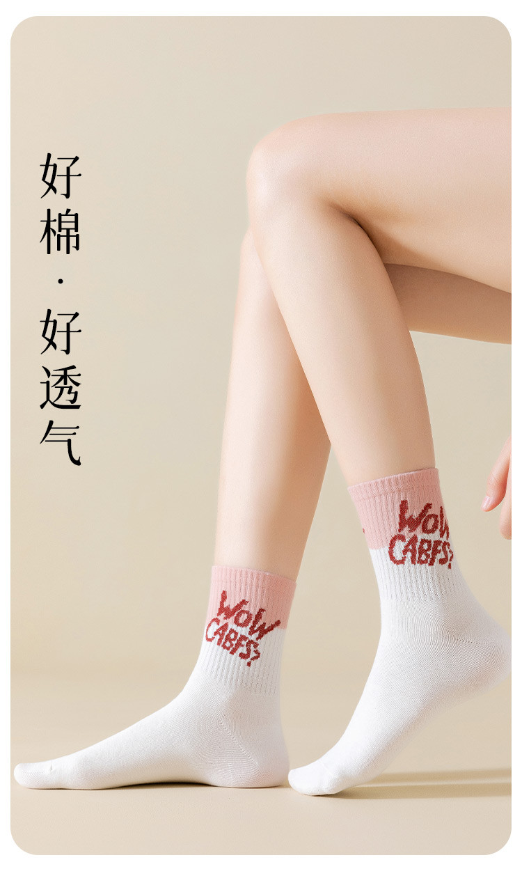 商品名称:【100%棉】5双装女士袜子女秋冬款时尚字母撞色女袜潮流棉袜 793995