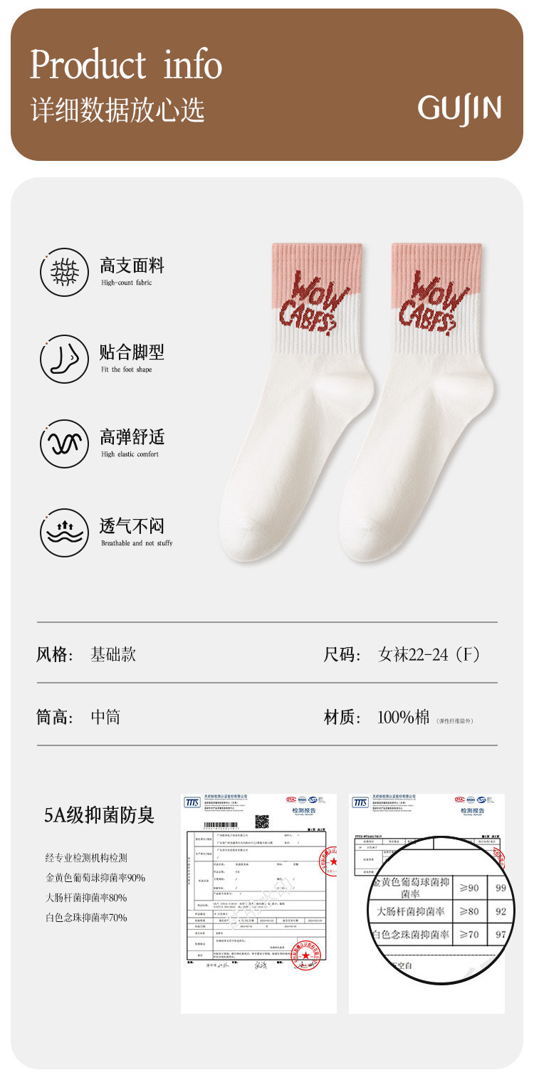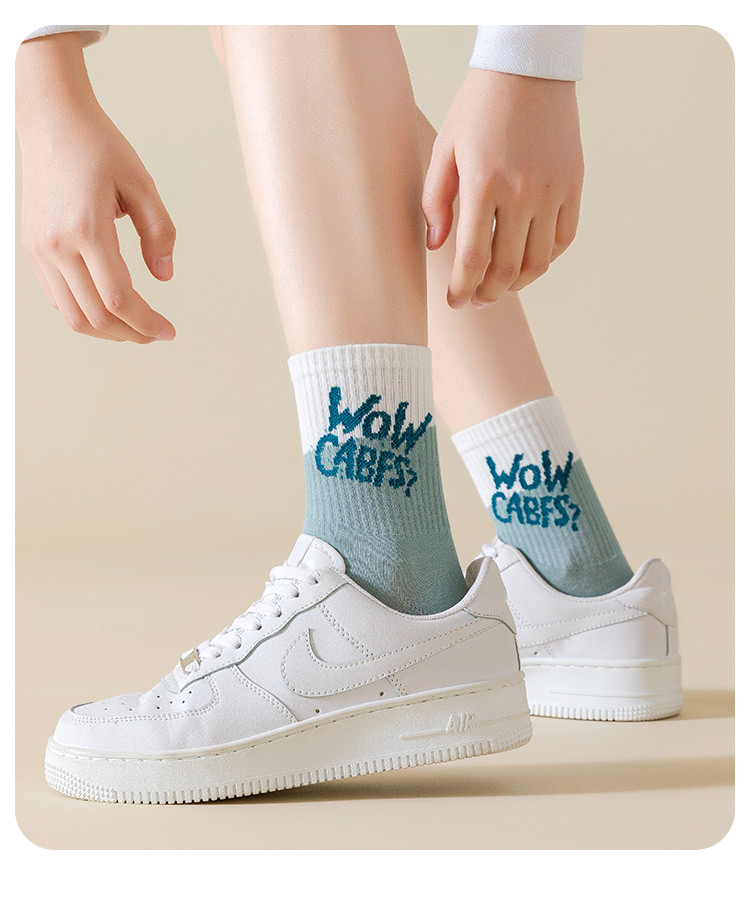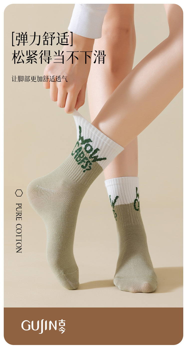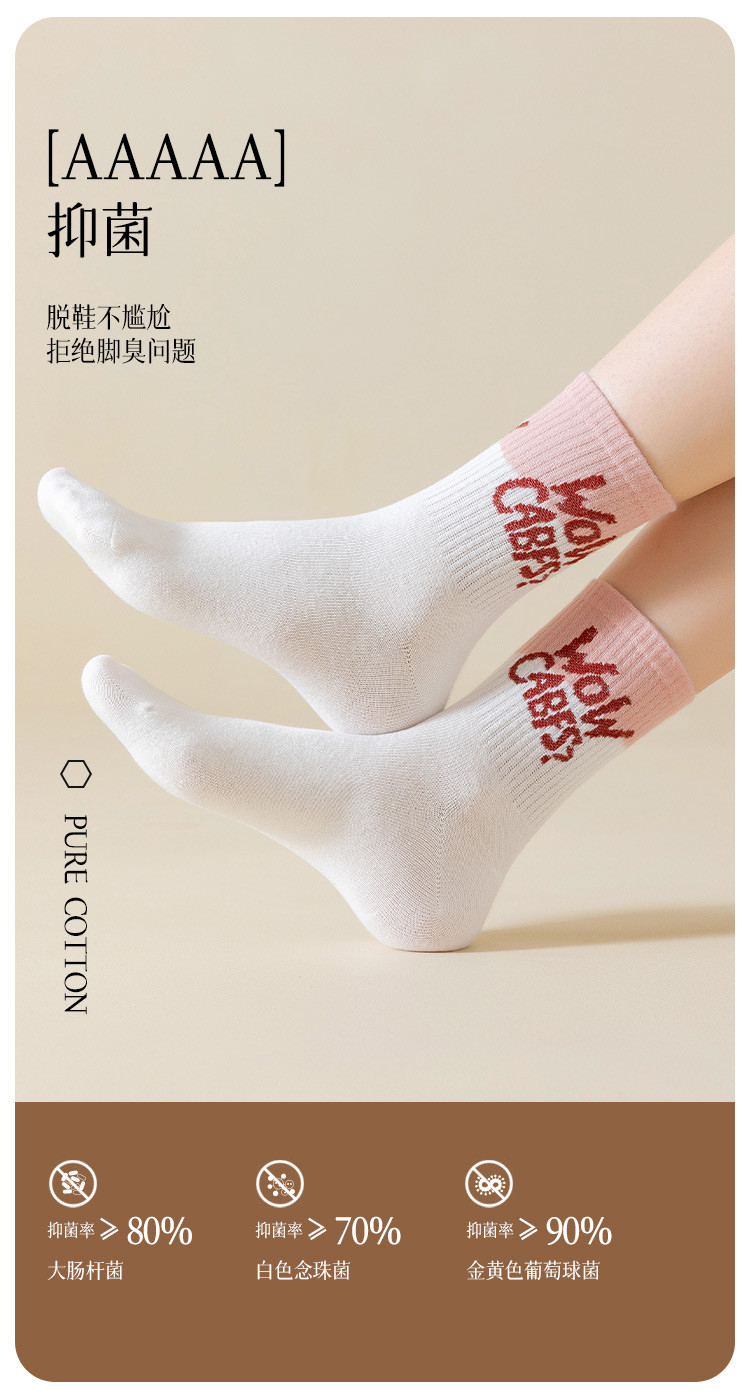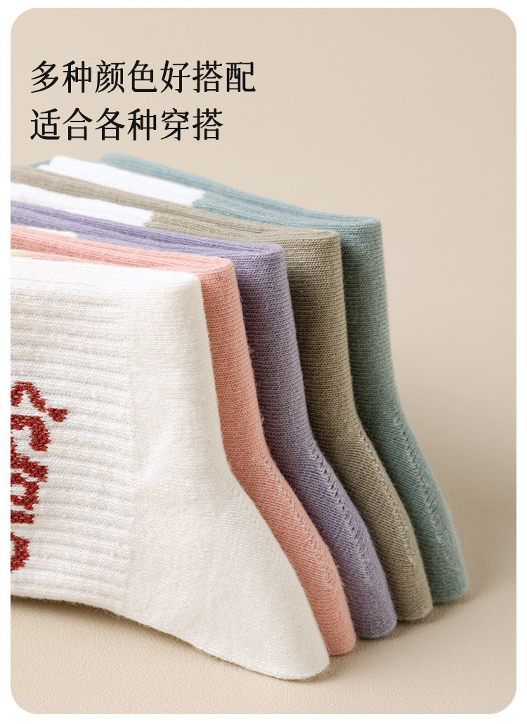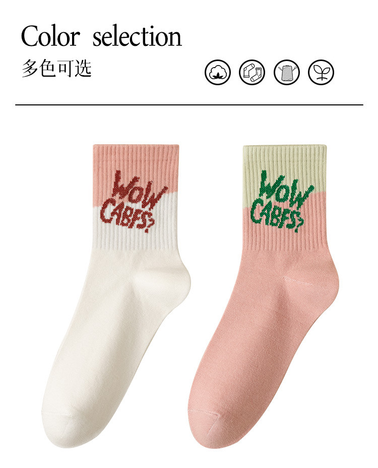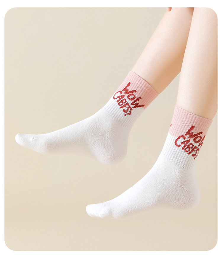 商品名称:【100%棉】5双装女士袜子女秋冬款时尚字母撞色女袜潮流棉袜 793995