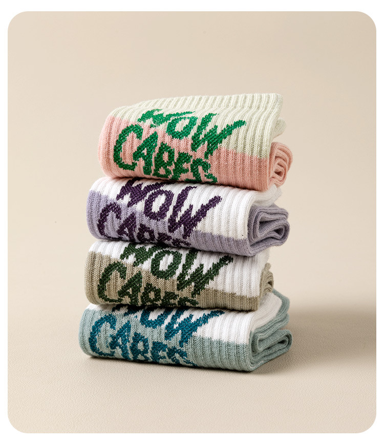 【100%棉】5双装女士袜子女秋冬款时尚字母撞色女袜潮流棉袜 793995