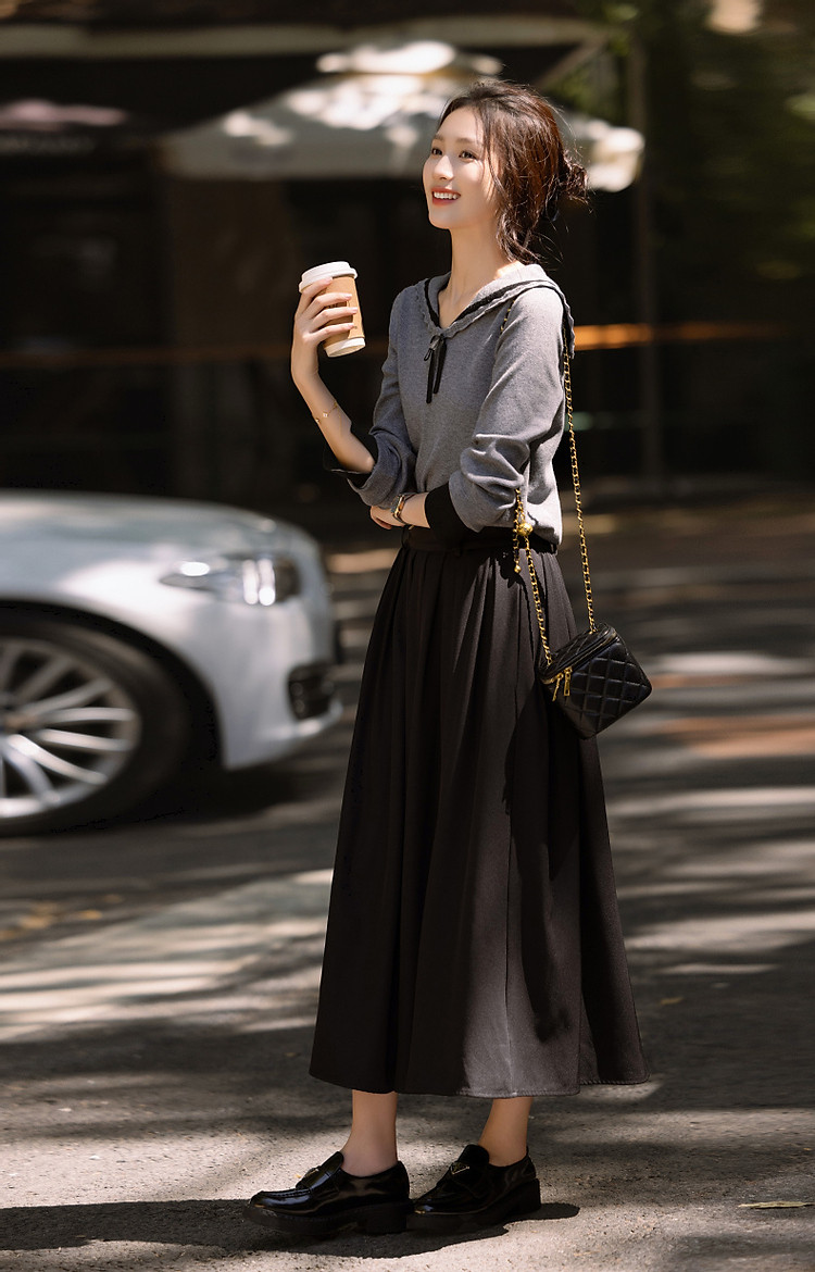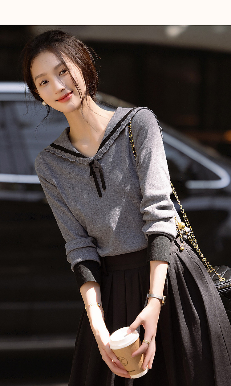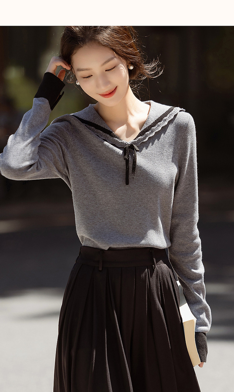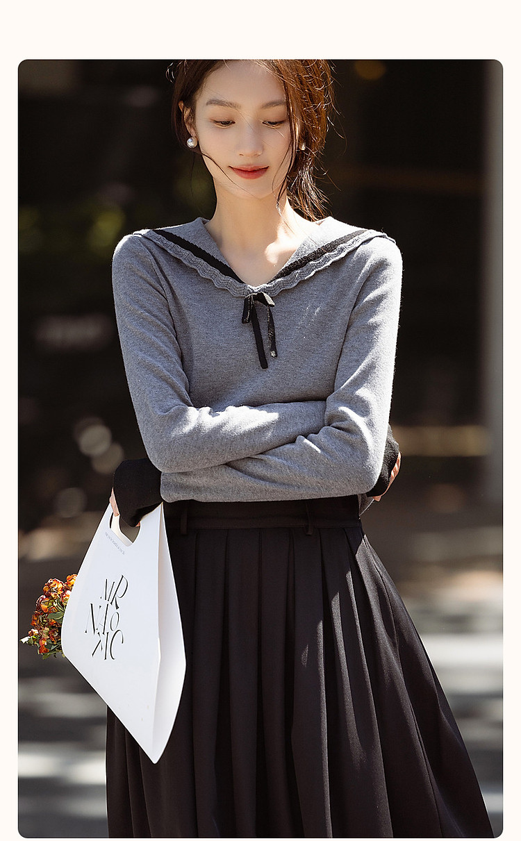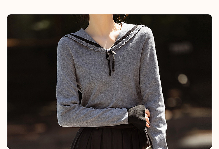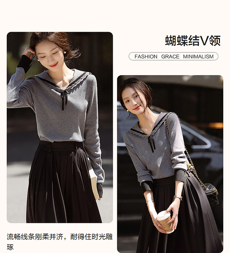 商品名称:【非正式学院风】秋季轻龄知性蝴蝶结V领线衫藏肉针织衫女上衣 769409