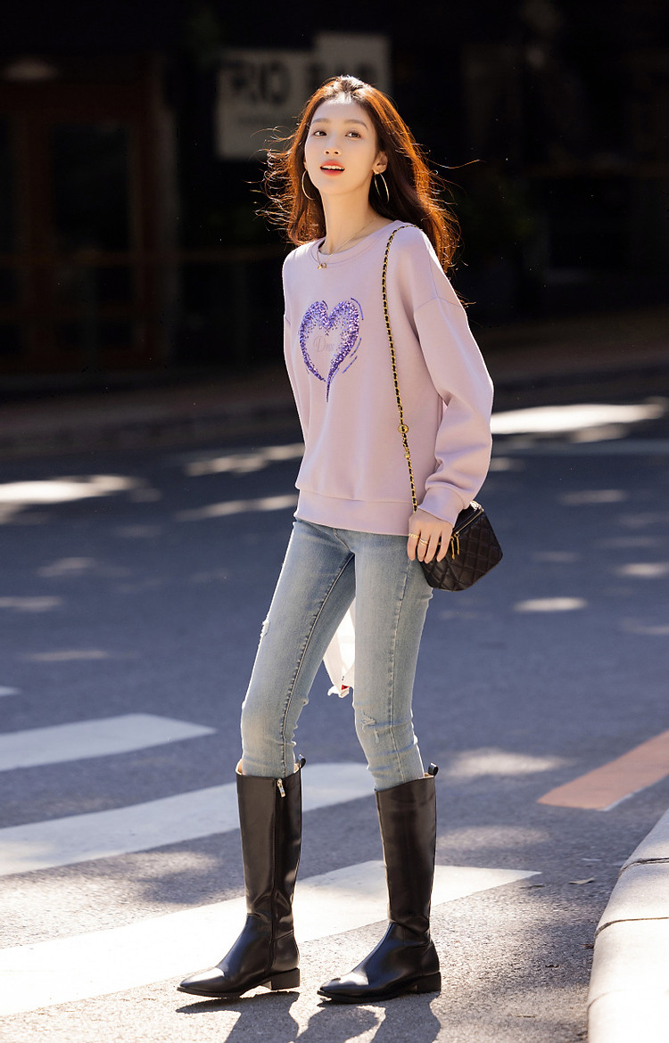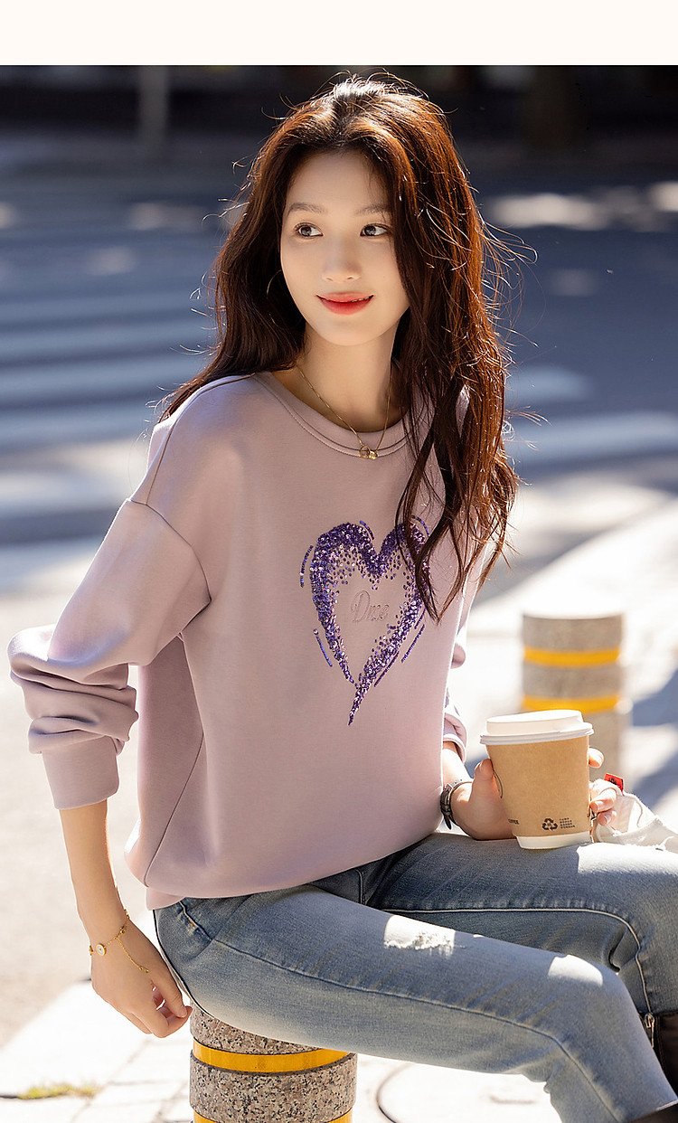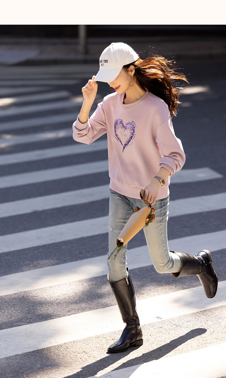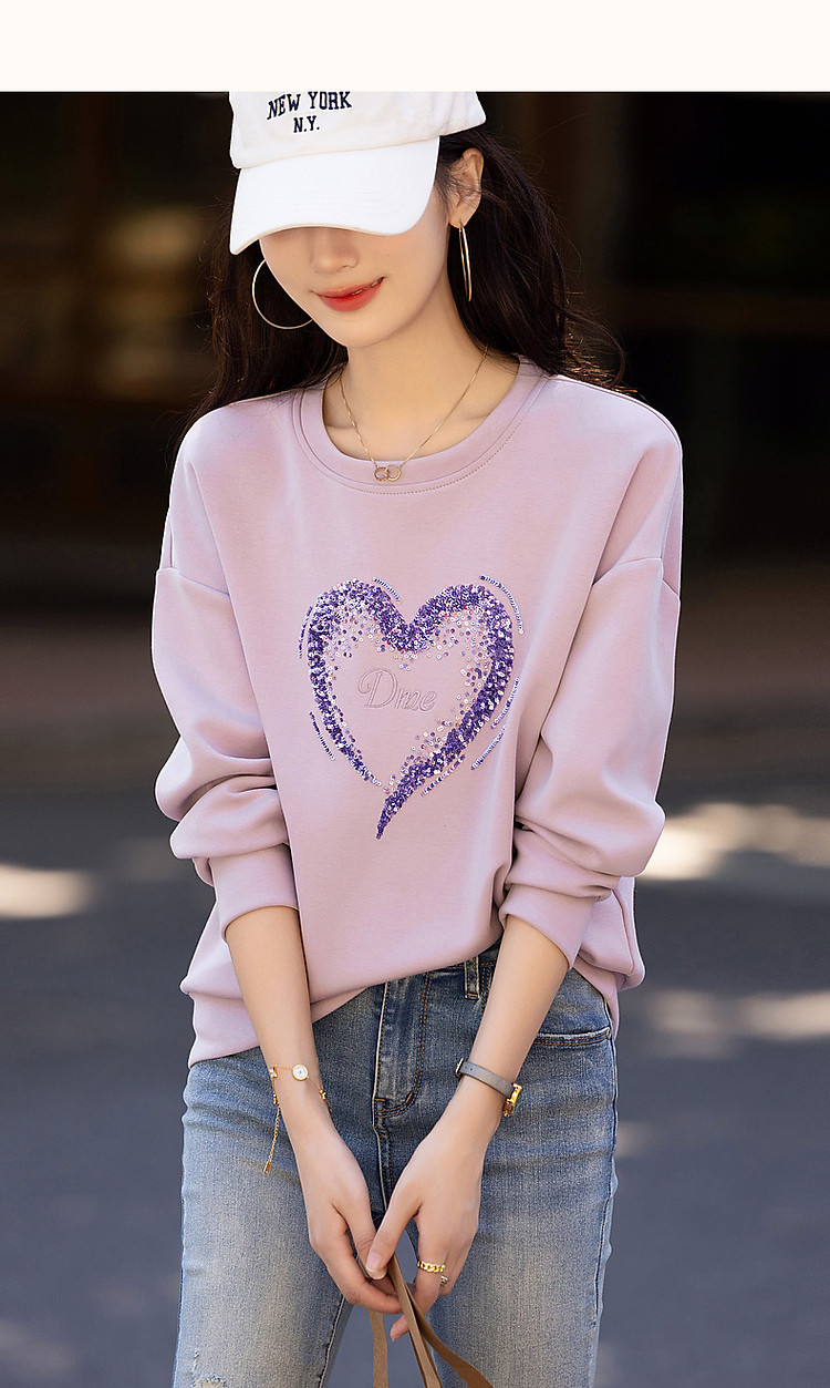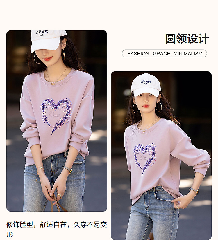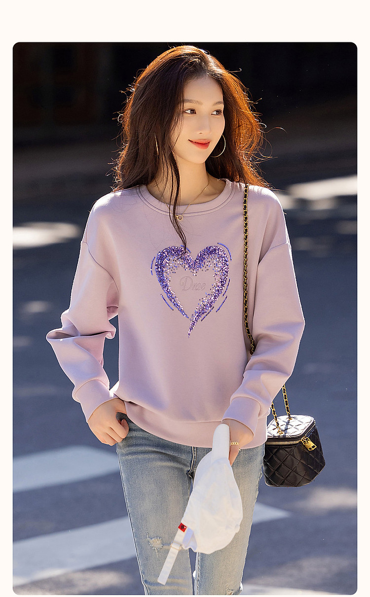 【运动也要时髦】冬轻龄感立体空气层爱心珠片绣花遮肉卫衣女上衣 068417