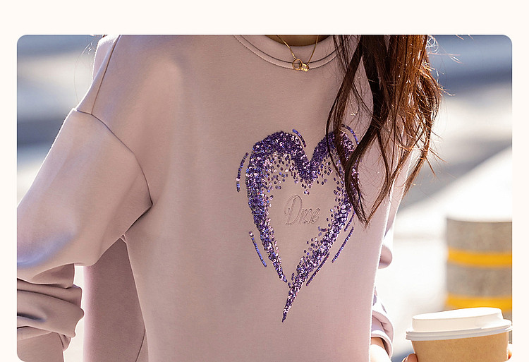 商品名称:【运动也要时髦】冬轻龄感立体空气层爱心珠片绣花遮肉卫衣女上衣 068417