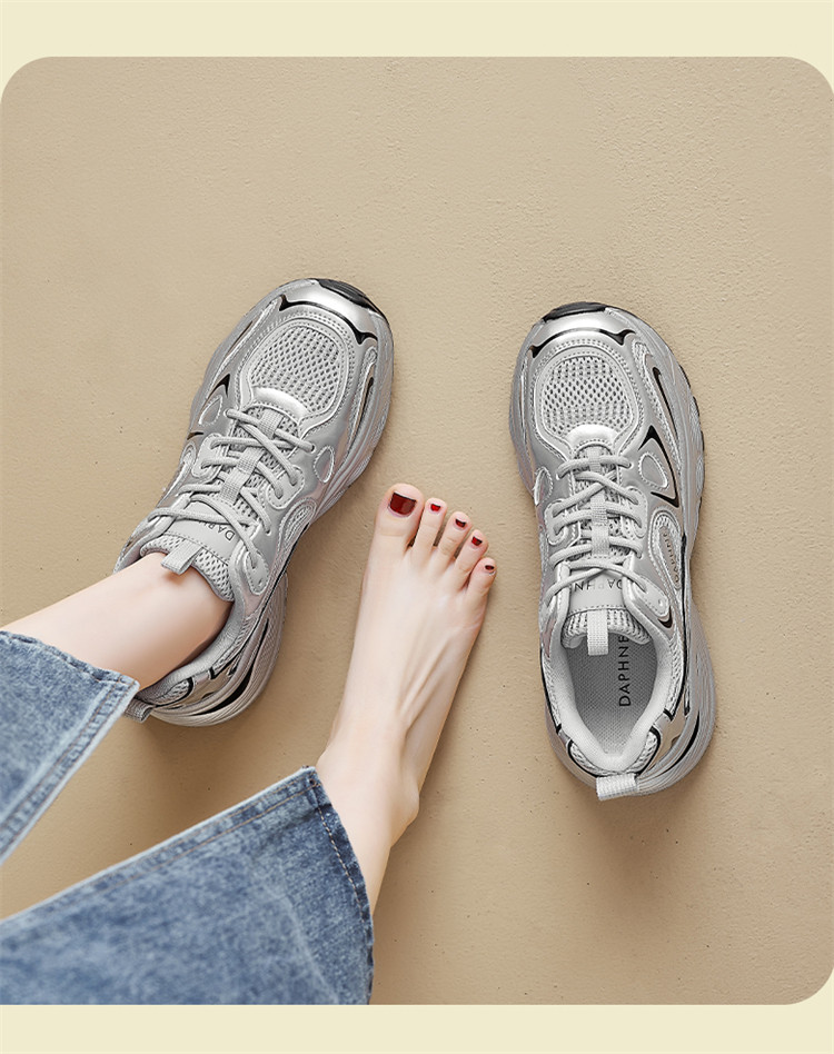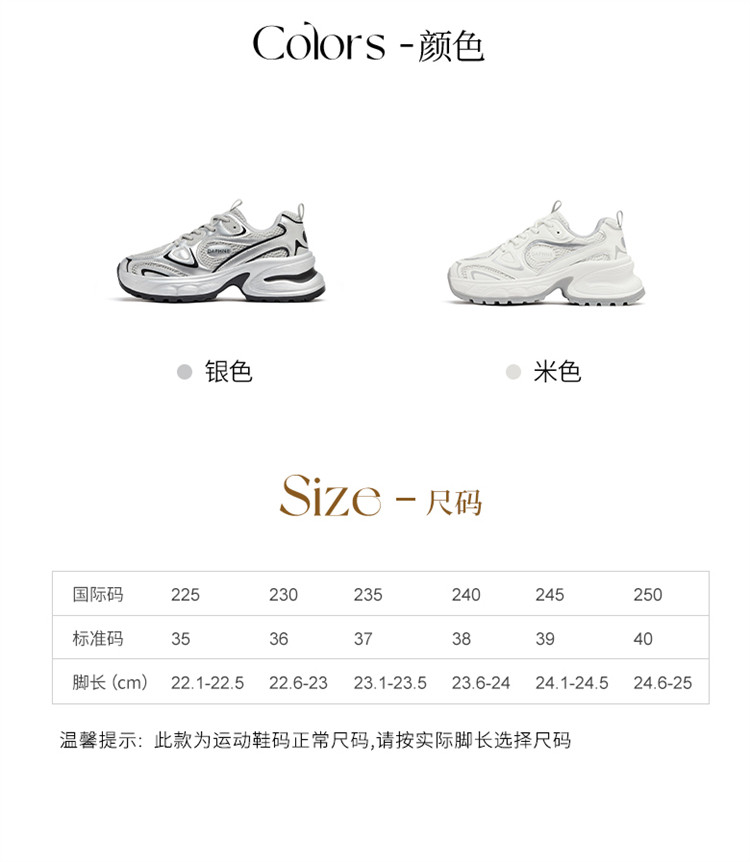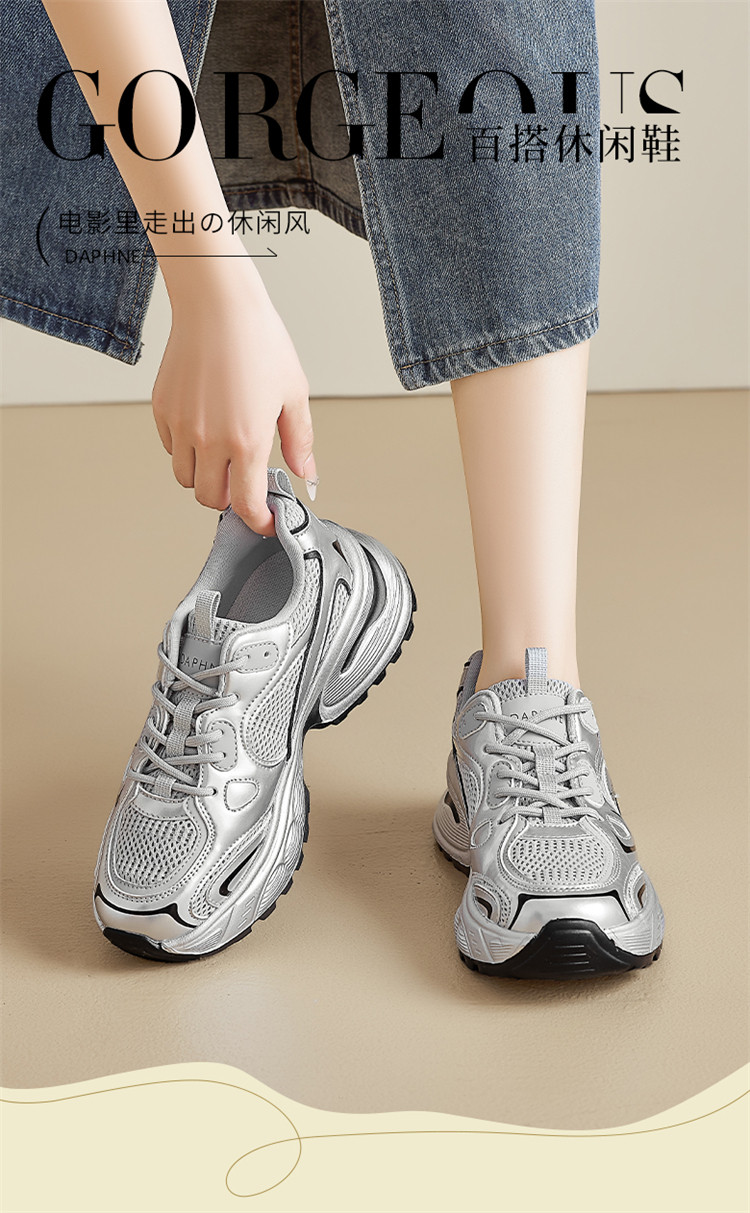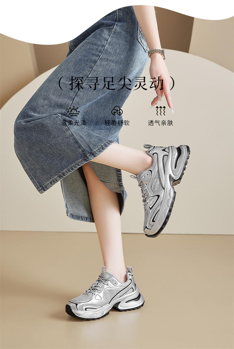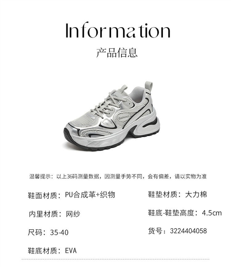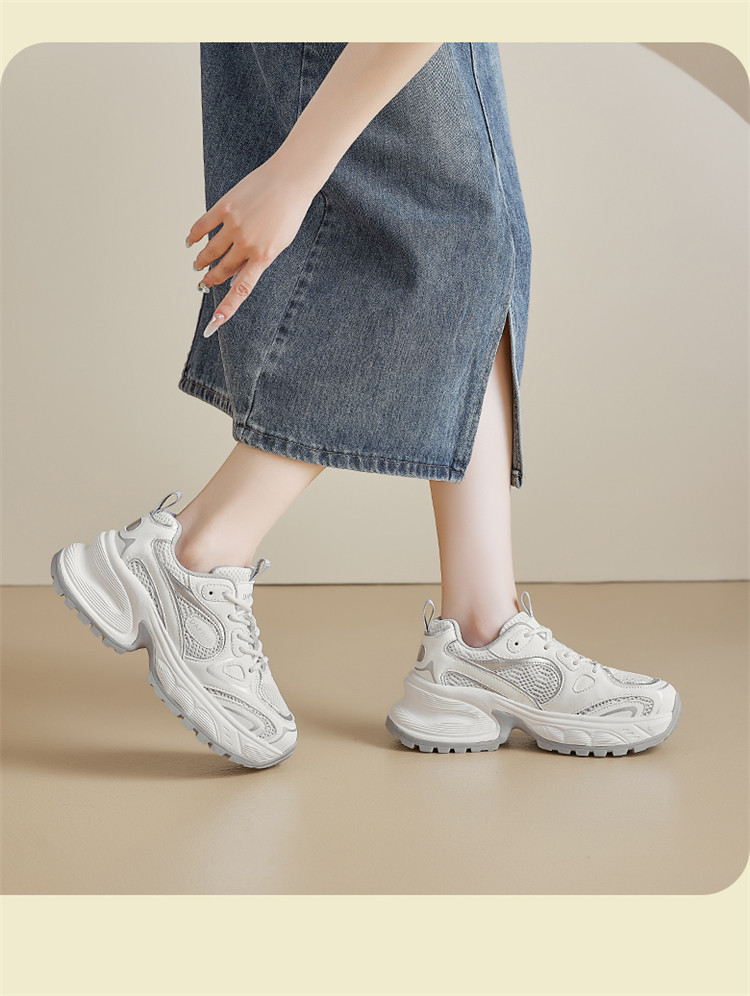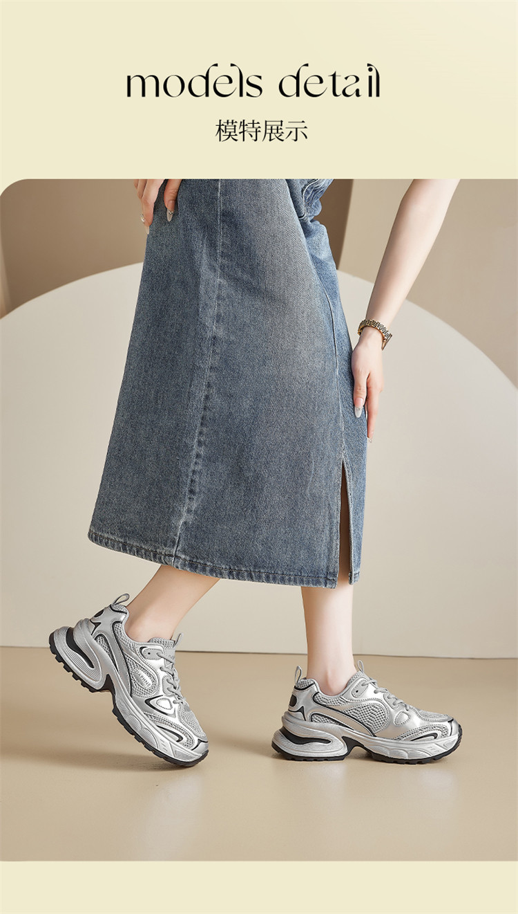 商品名称:春季复古百搭网面透气显脚小运动休闲女鞋小个子厚底显高老爹鞋 757210