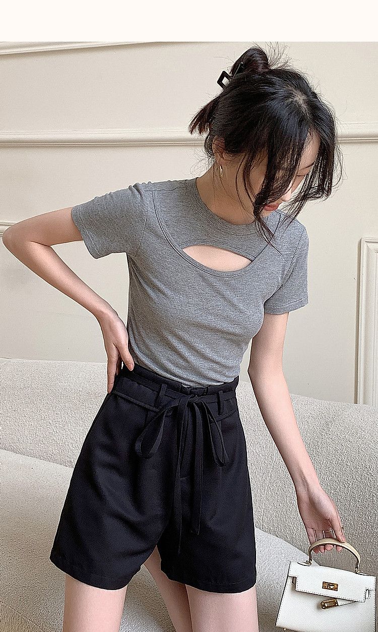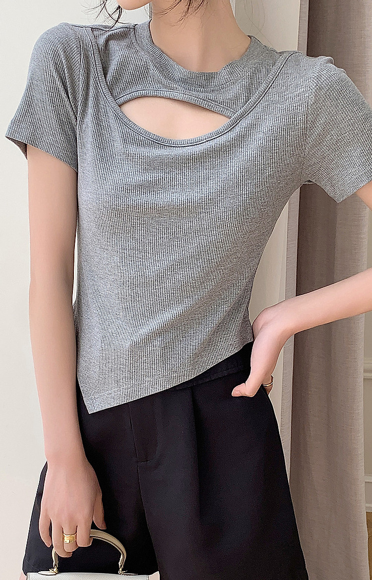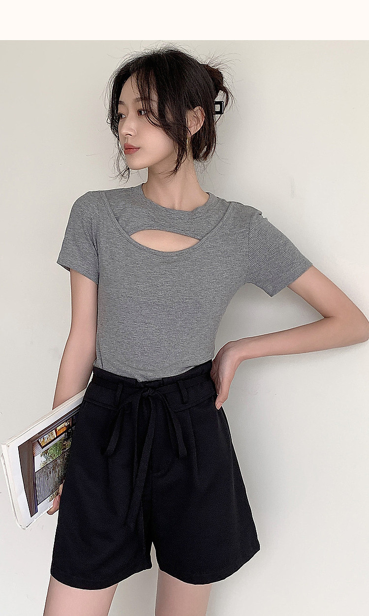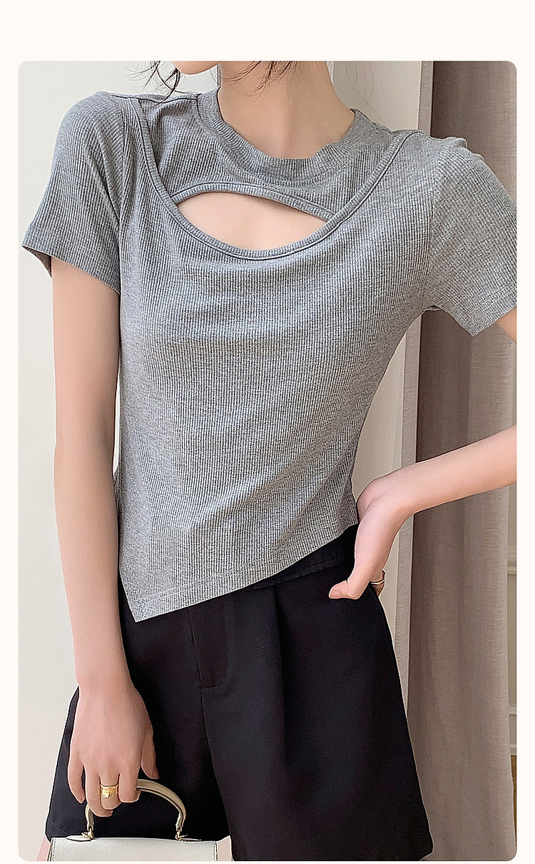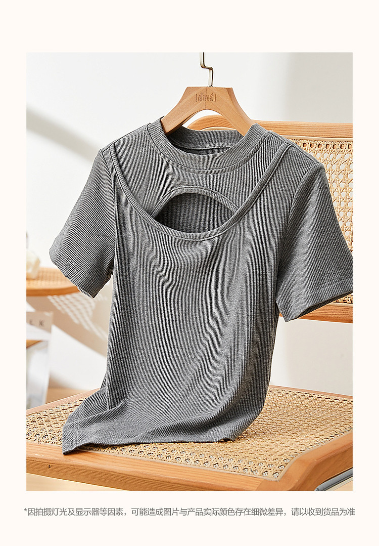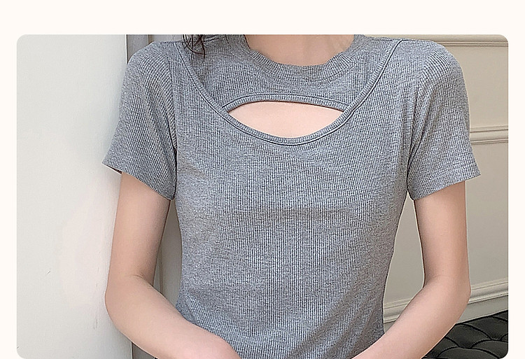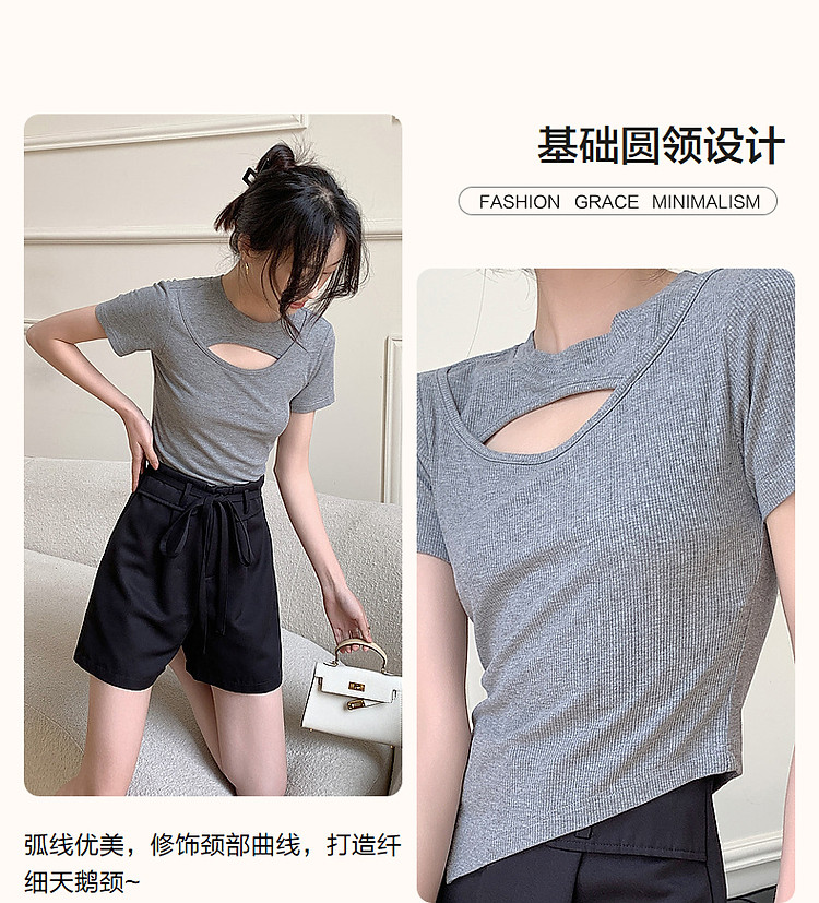 商品名称:【气质不规则镂空女式t恤】夏季圆领弹力短袖t恤女 924097