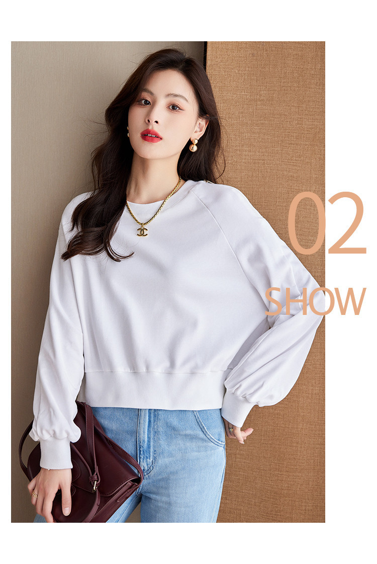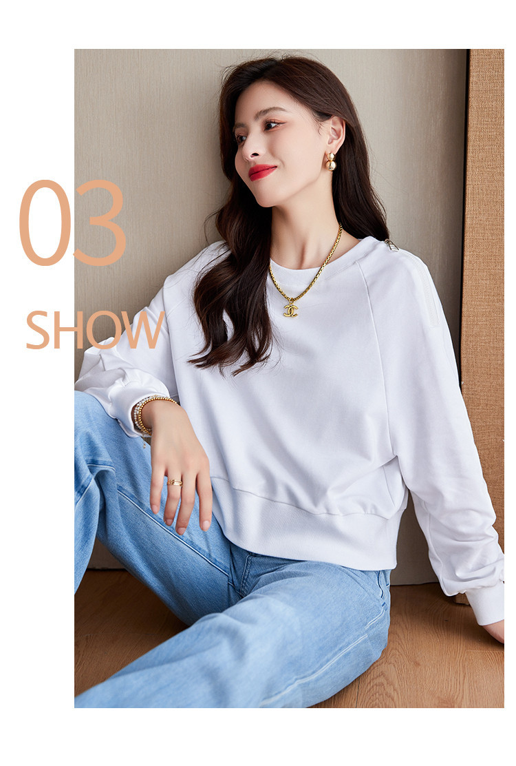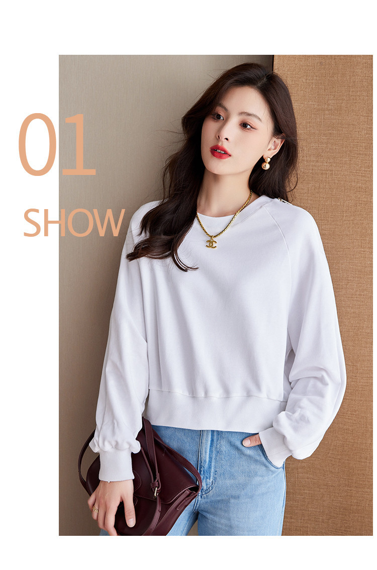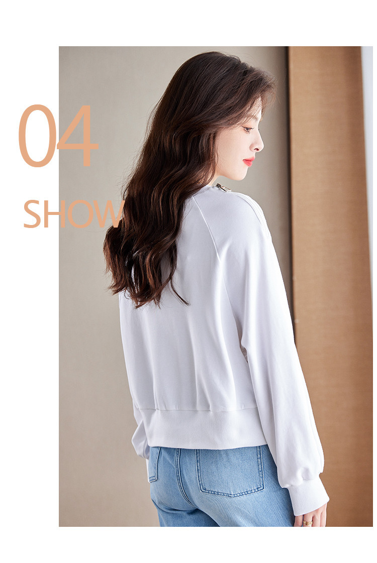 商品名称:小个子圆领短款春季女式卫衣双肩拉链独特设计时尚上衣 395736
