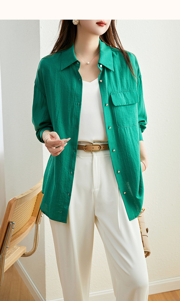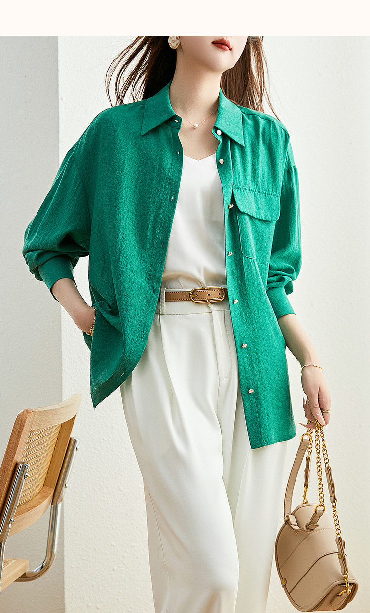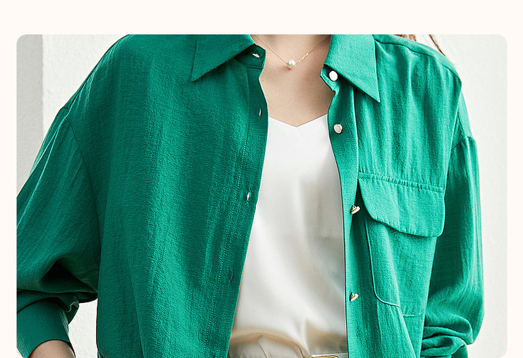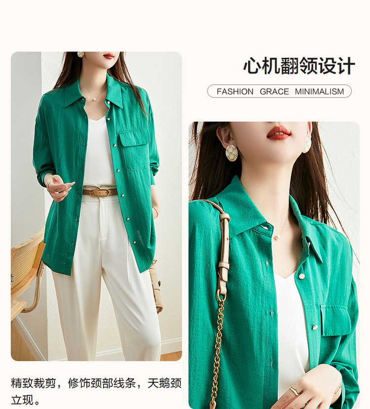 【通勤衬衫】春秋翻领长袖不对称口袋衬衣女装上衣 752577