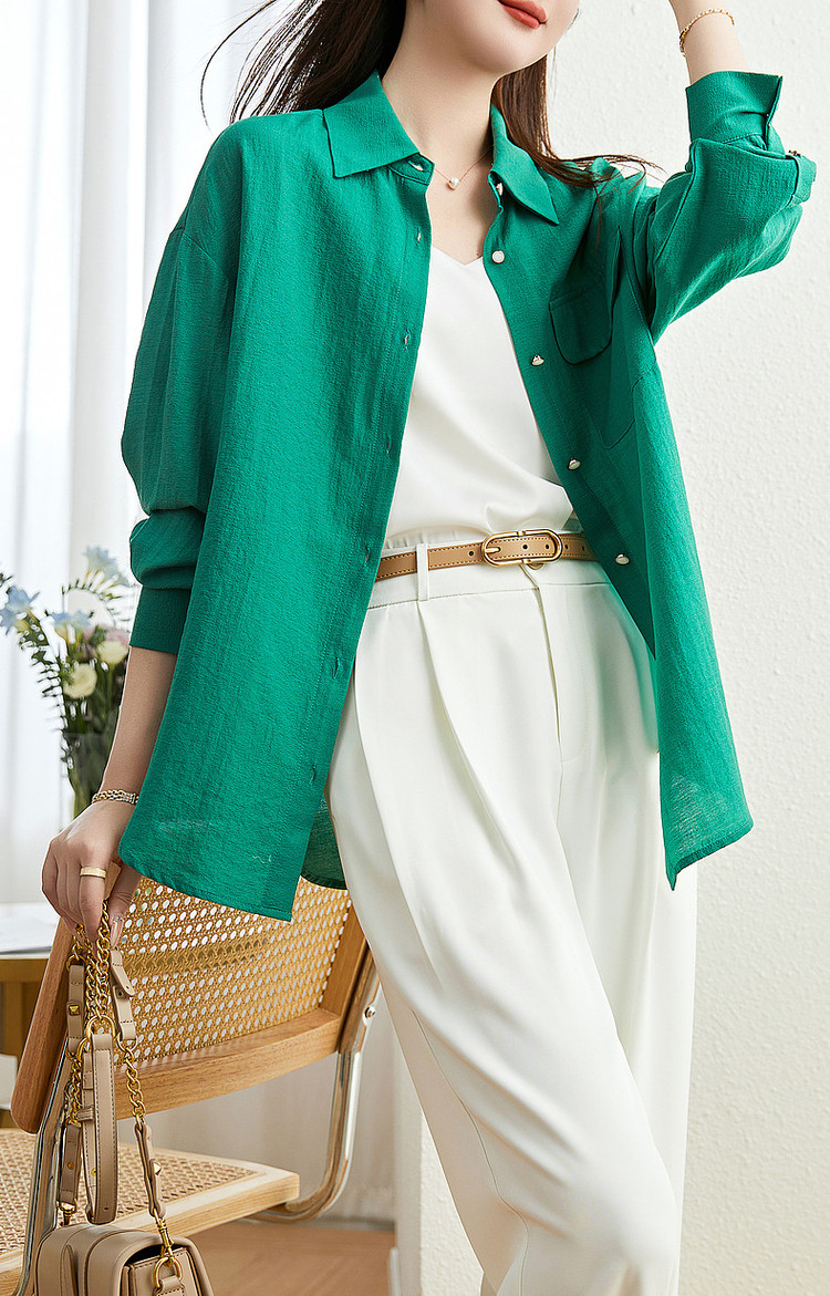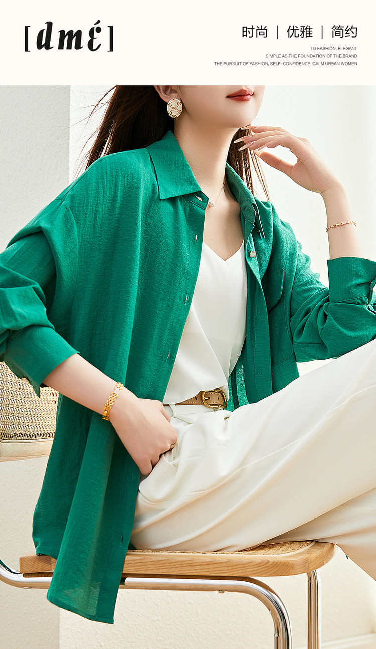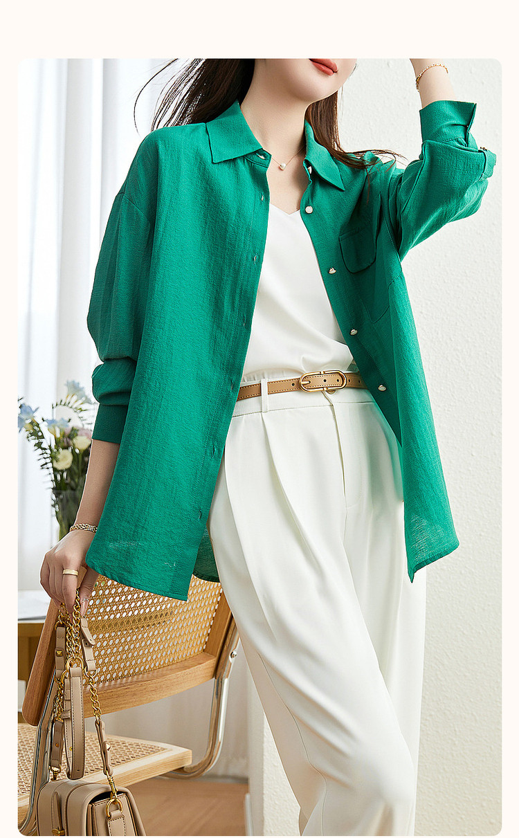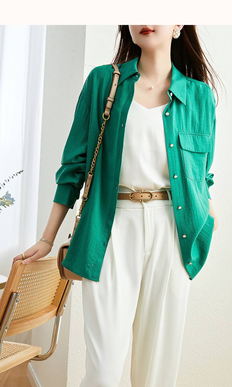 【通勤衬衫】春秋翻领长袖不对称口袋衬衣女装上衣 752577