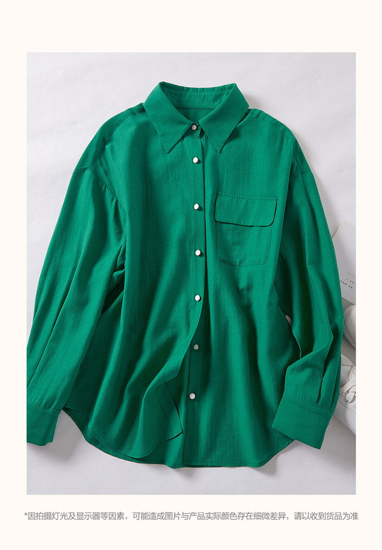 商品名称:【通勤衬衫】春秋翻领长袖不对称口袋衬衣女装上衣 752577