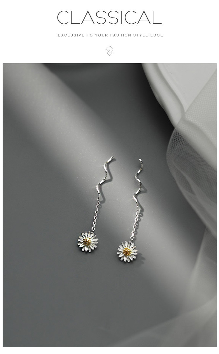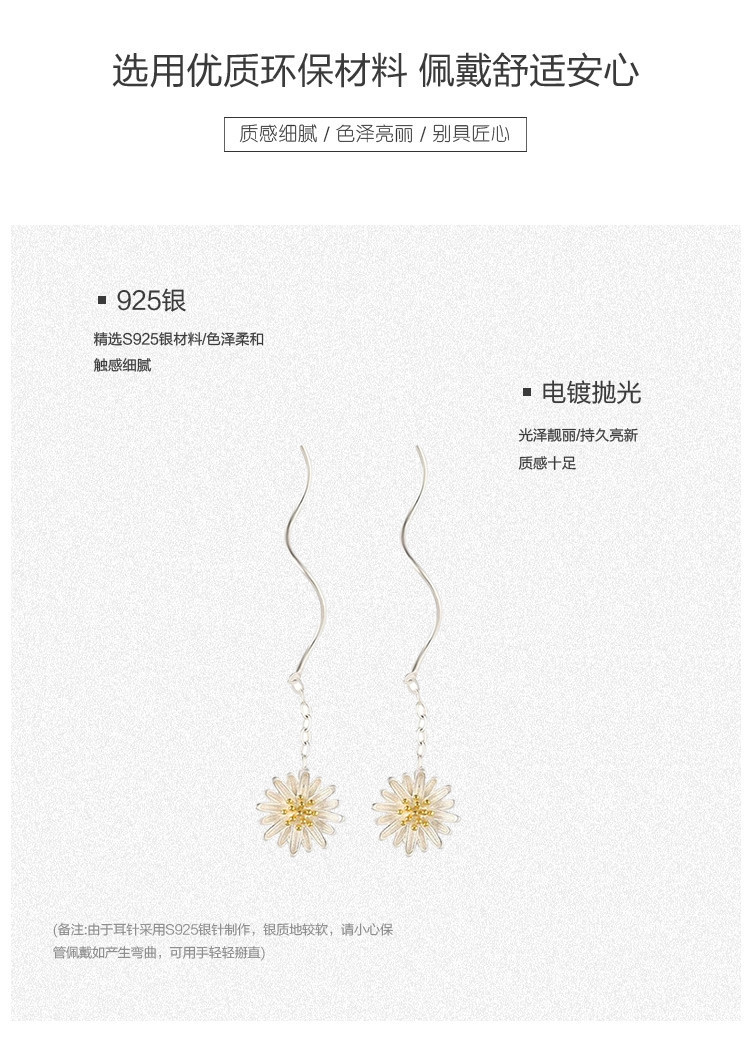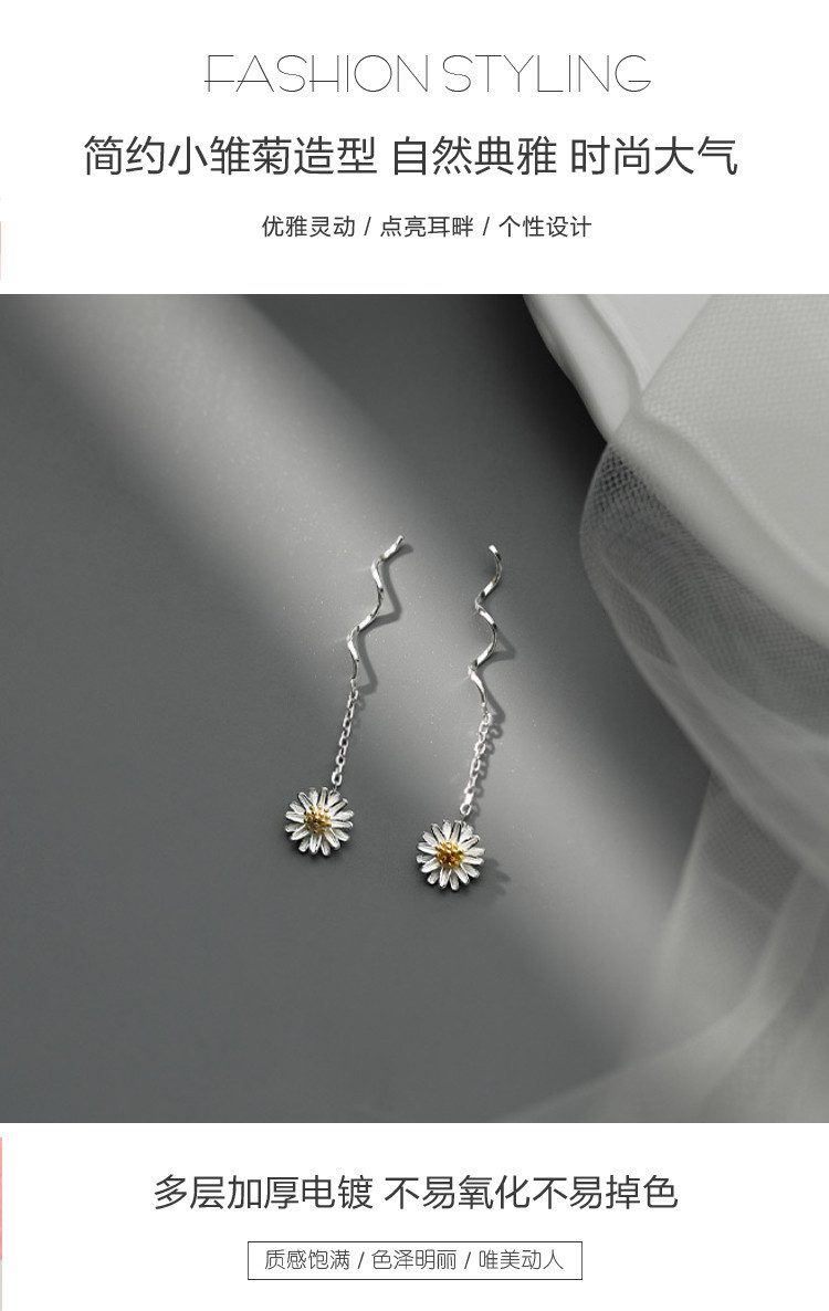 925银小雏菊花朵耳线小清新森系百搭时尚流苏耳环耳饰 353537
