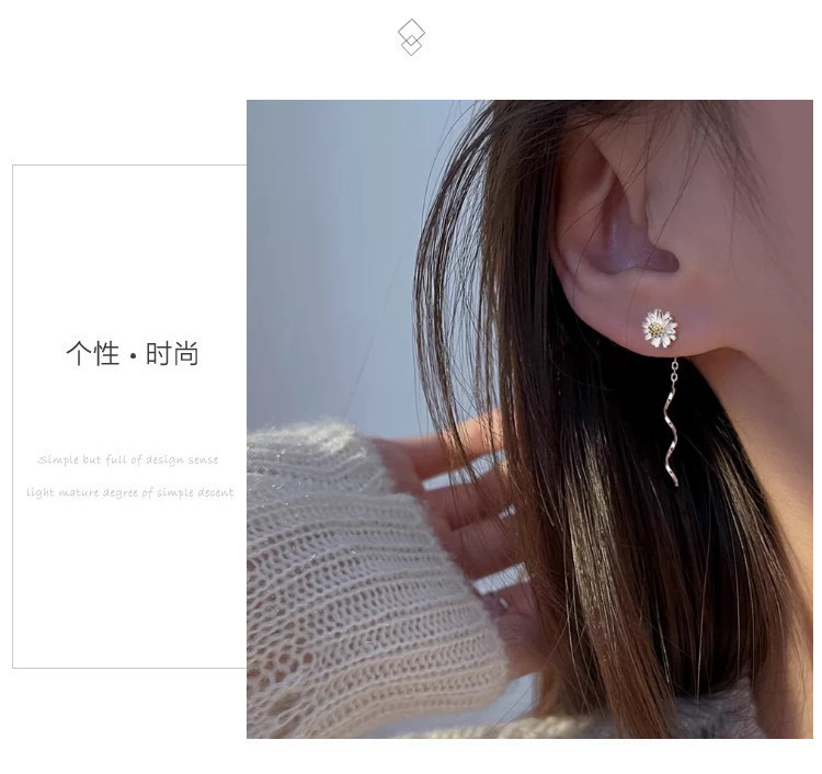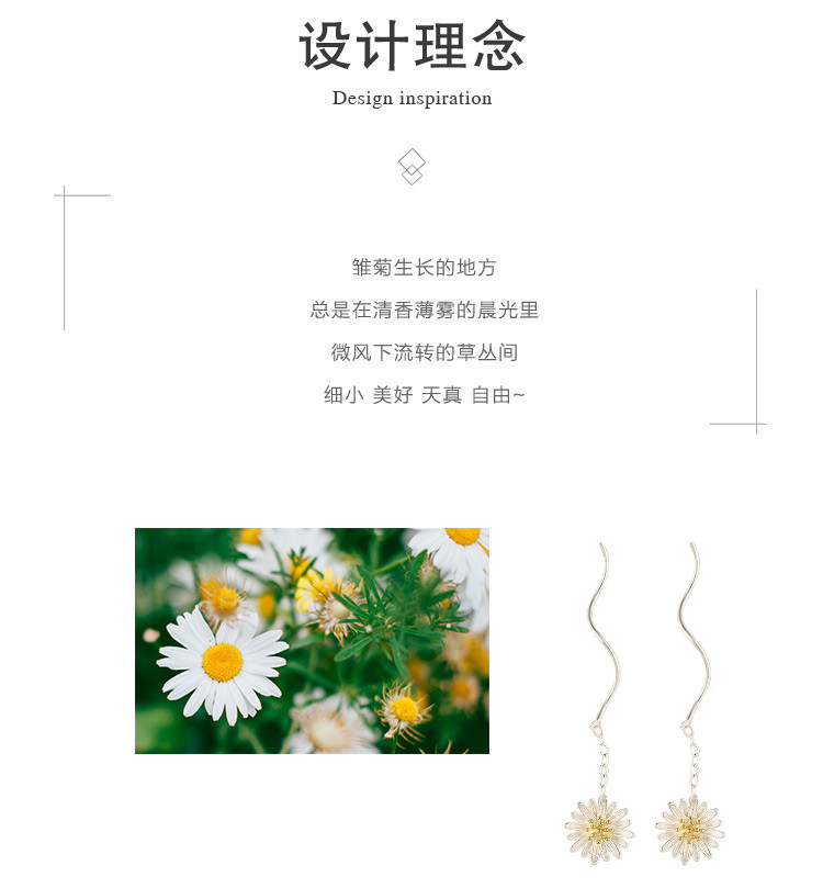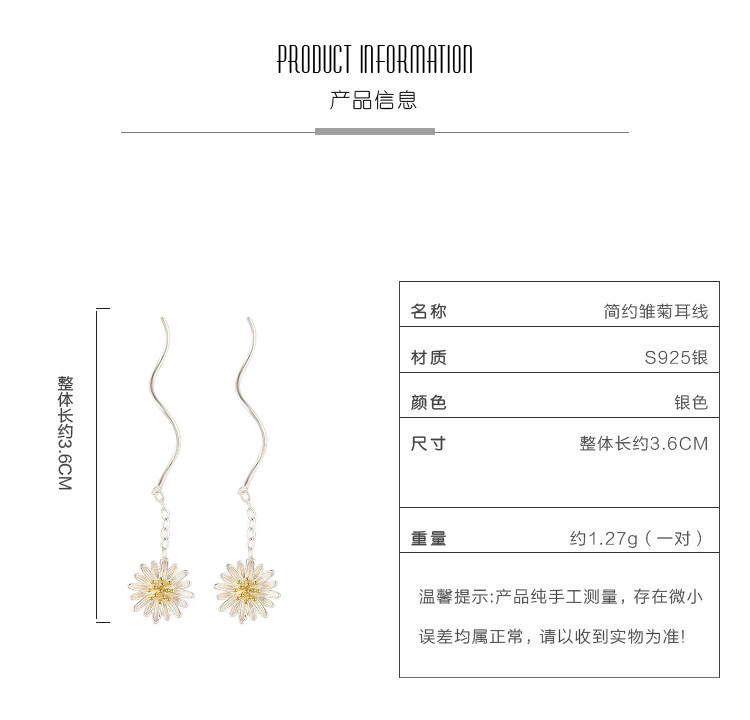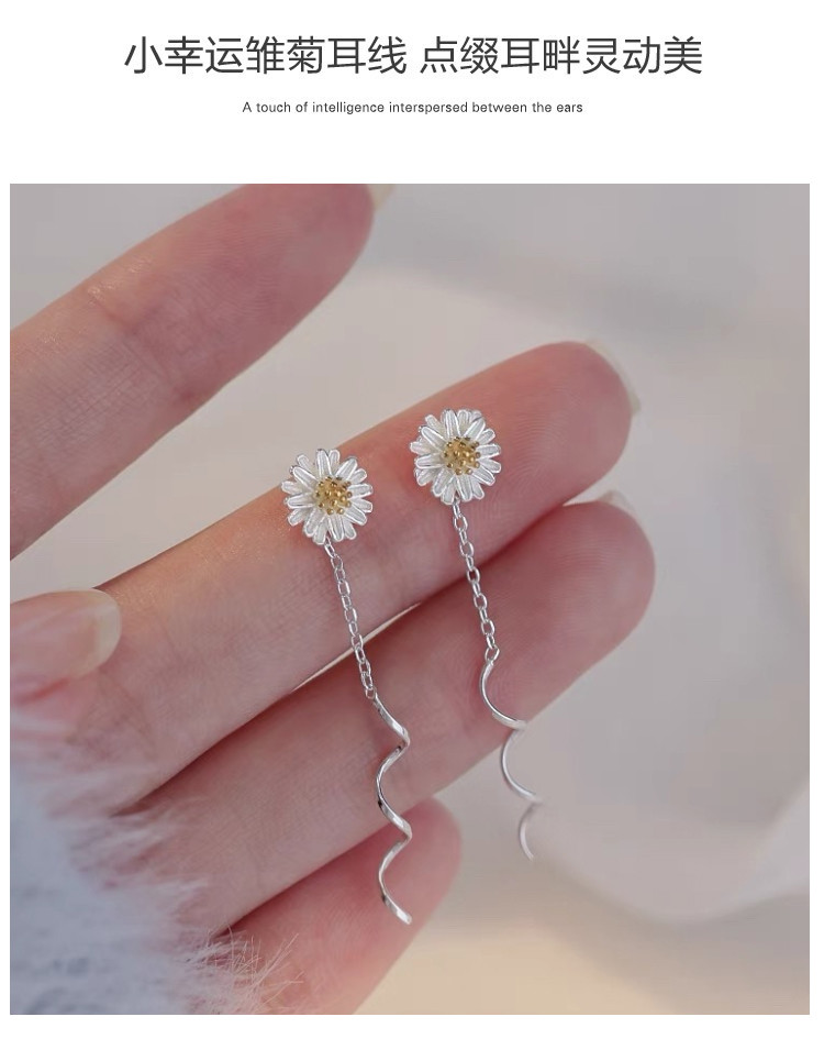 商品名称:925银小雏菊花朵耳线小清新森系百搭时尚流苏耳环耳饰 353537