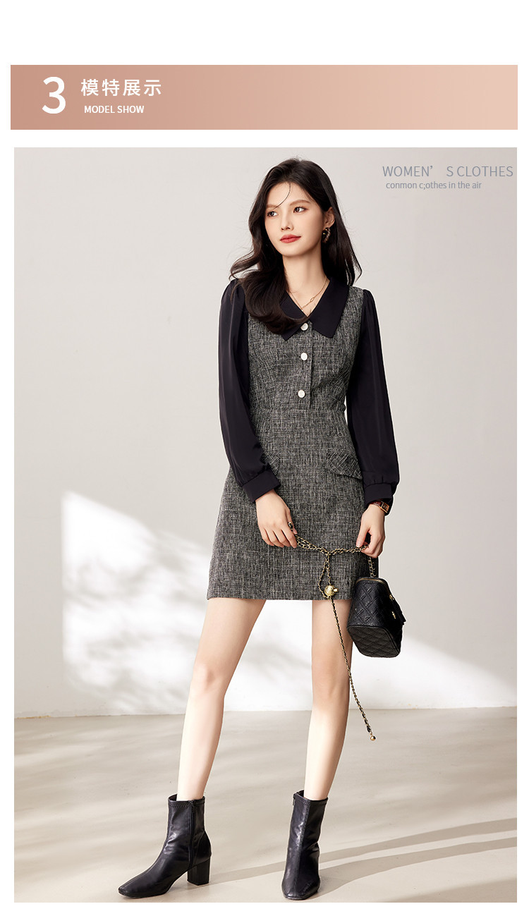 商品名称:【减龄娃娃领小香风连衣裙】秋装气质优雅长袖中裙 371160