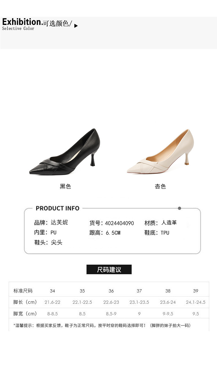 商品名称:高跟鞋女春夏气质时装鞋女浅口尖头时尚单鞋一脚蹬职场百搭通勤鞋 458519