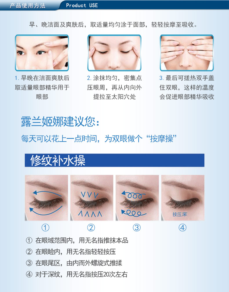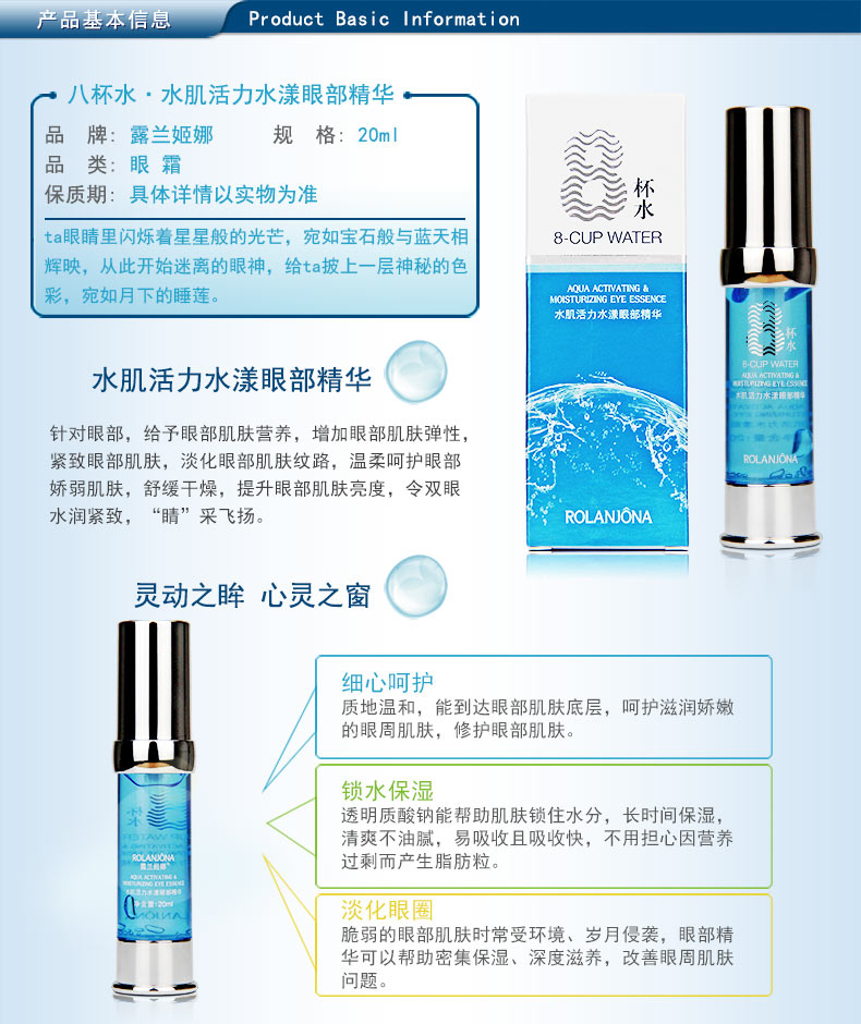 商品名称:露兰姬娜 八杯水水肌活力水漾眼部精华 紧致肌肤 20ml