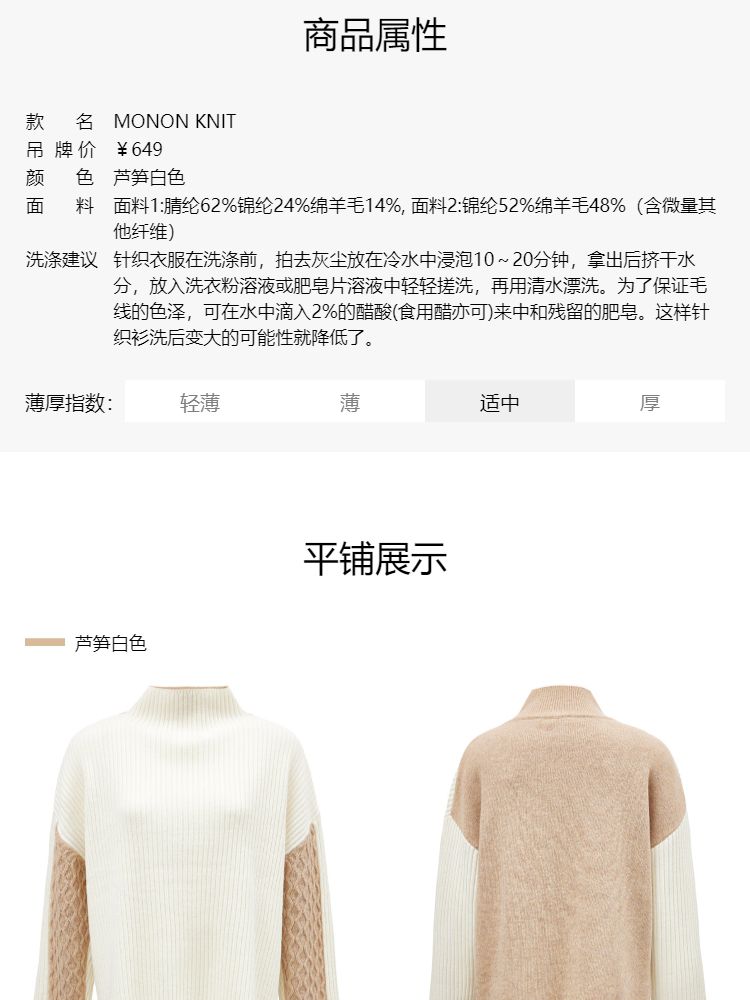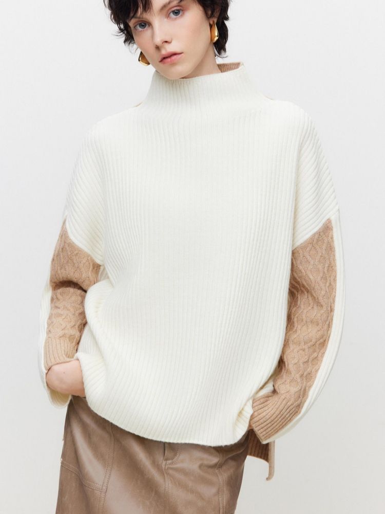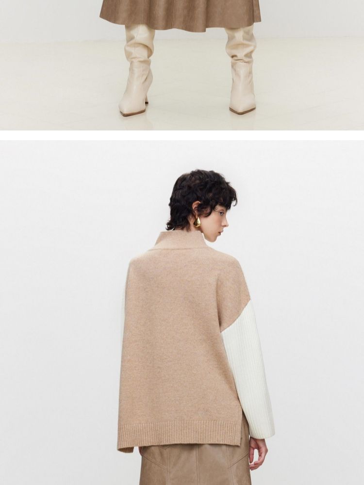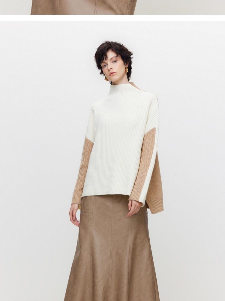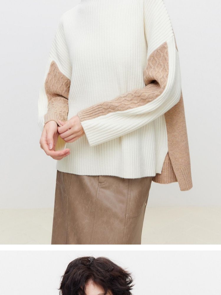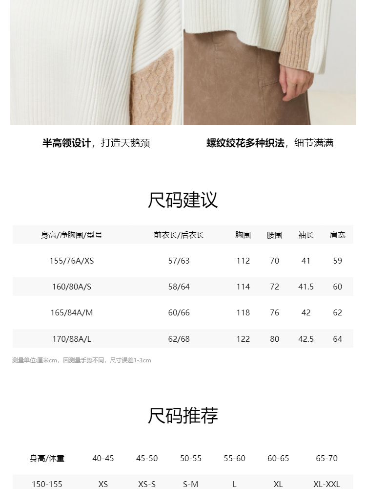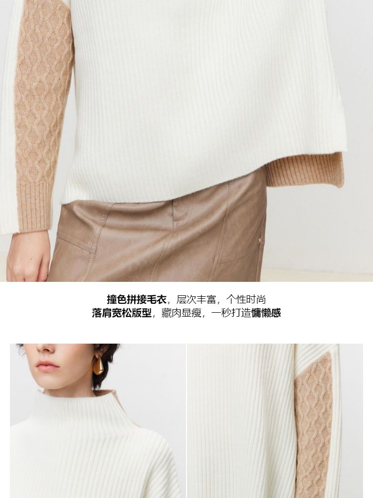 商品名称:【宽松半高领】春季休闲撞色拼接毛衣针织衫女 503514